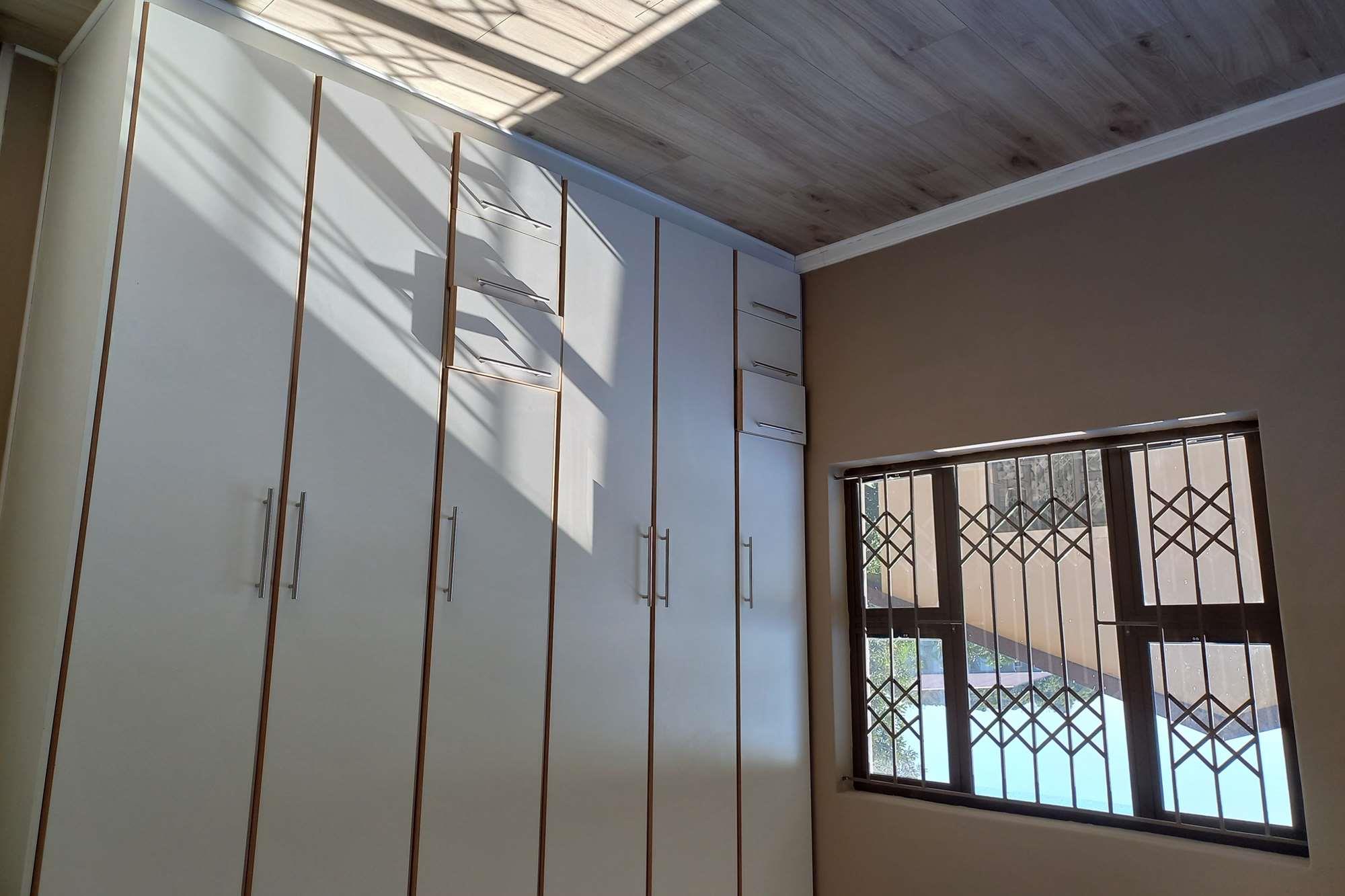 This Duplex is brand new and built with quality and all modern finishes. This home offers 3 spacious bedrooms with laminated floors and windows, an n suite in the main bedroom and a balcony in the second and third bedroom, family bathroom, guest bathroom, open lounge and dining room and a fully fitted Kitchen. The modern kitchen has granite tops, fully fitted built in cupboards, extractor, under counter oven and hob. Included is your garage and ample open bay parking. Very low levies as this entire complex is tared. Each unit has prepaid electricity and water. Close to amenities ,shopping malls ,schools ,takeaways, medicross , banks , library and police station.