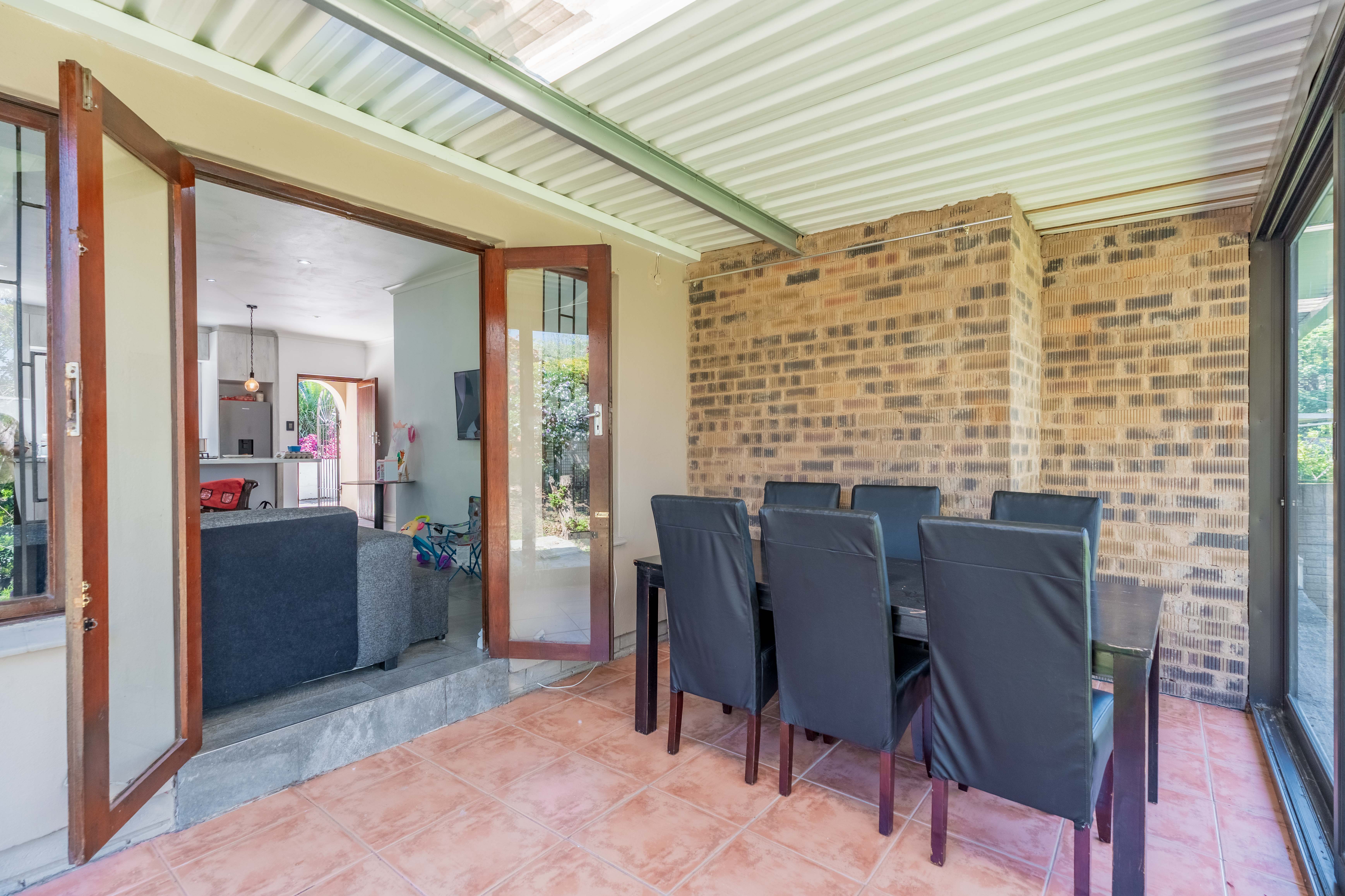 Step inside to discover a fully tiled, open-plan lounge and kitchen, designed for modern living. The lounge area is fitted with an air conditioner to ensure your comfort all year round. The kitchen is a culinary enthusiast's dream, featuring granite and concrete countertops, a center island with a gas stove, and a fully fitted layout with ample cupboard space. The sliding aluminium doors lead to an enclosed sunroom, perfect for soaking in the morning rays over a cup of coffee. The entertainment area sliding doors bring light, brightness, and nature indoors, creating a tranquil, homely feeling with a seamless connection to the outdoors.