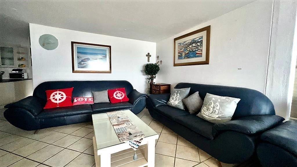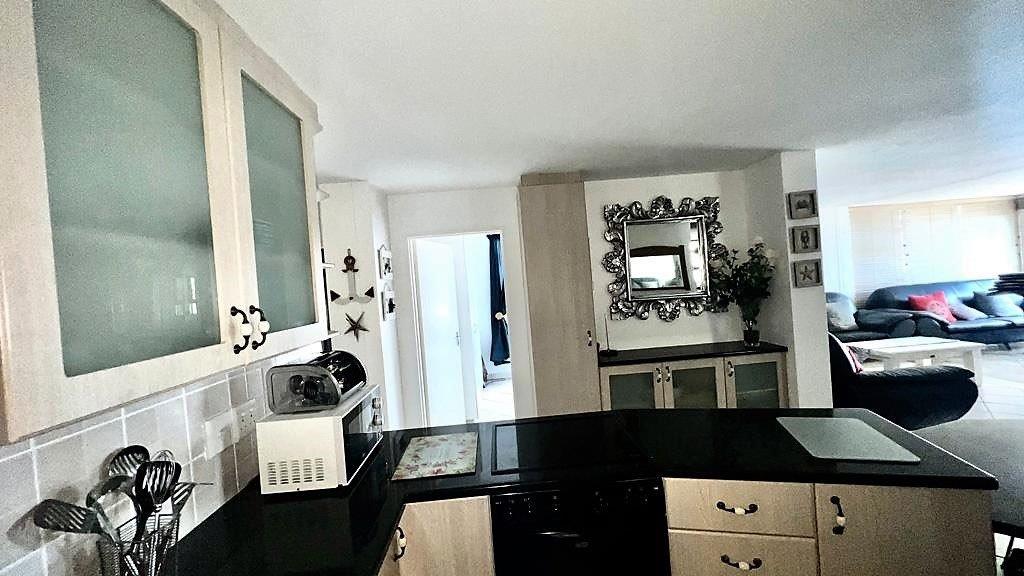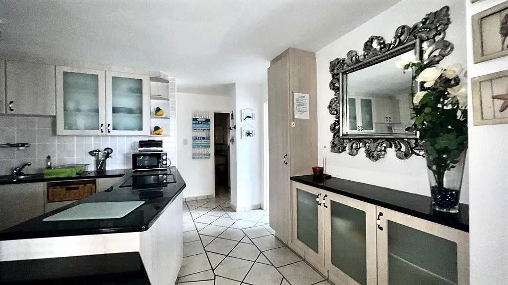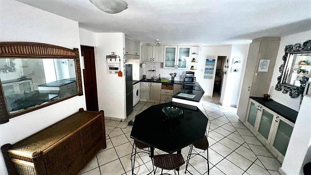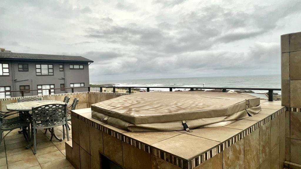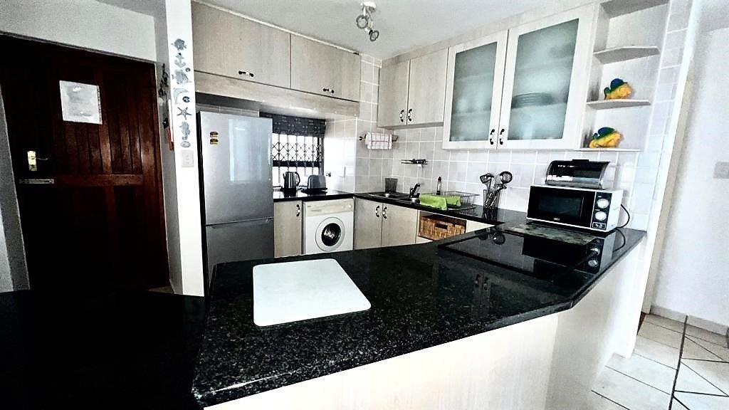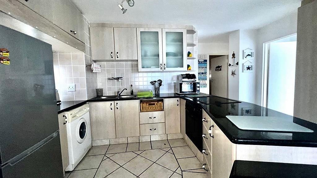 There is a spacious open plan kitchen with granite tops, ample cupboard space leading into the living and lounge area that takes you out onto the balcony with epic sea-views.