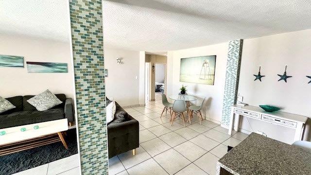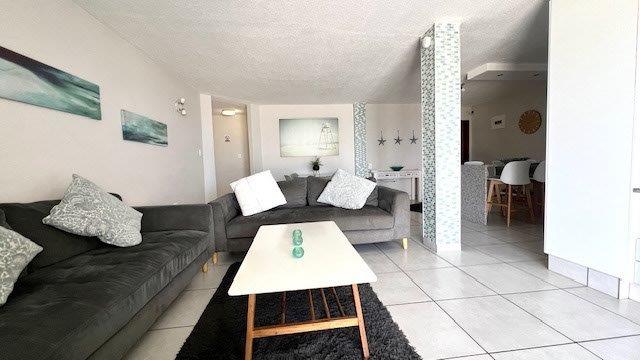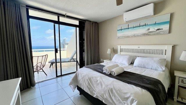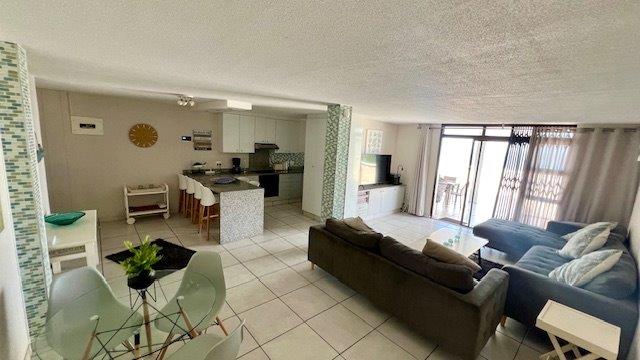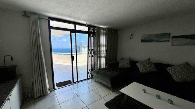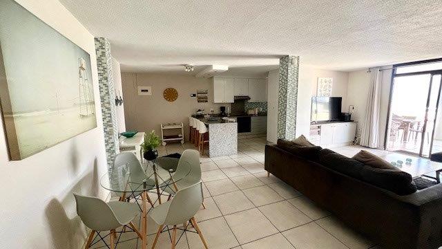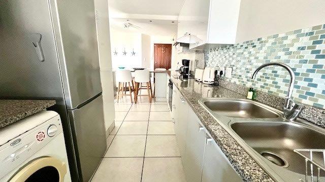 The spacious, open-plan living area serves as the heart of the apartment, where the kitchen, dining, and lounge spaces flow effortlessly together, all bathed in natural light from expansive windows. The sleek, modern kitchen is fully equipped with high-end appliances, ample storage, and a stylish design that invites both everyday convenience and gourmet cooking. Sliding glass doors open to a generous veranda overlooking the ocean, providing an ideal spot for al fresco dining, morning coffee, or simply soaking in the panoramic sea views and fresh coastal breezes.