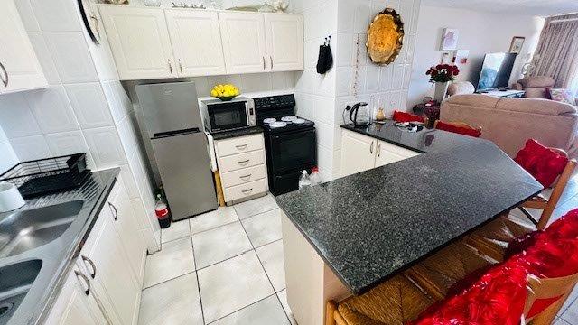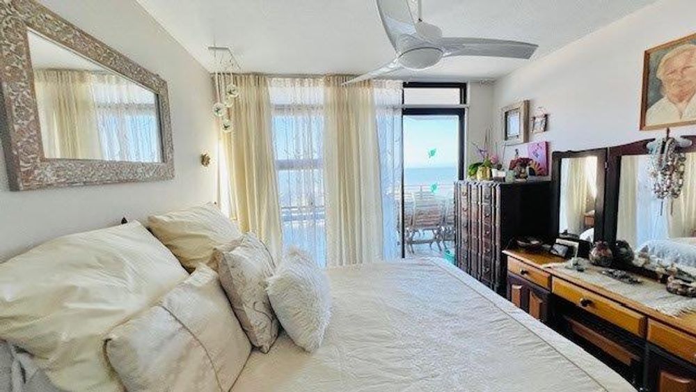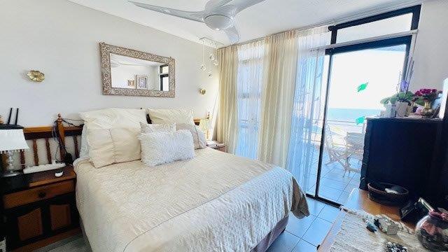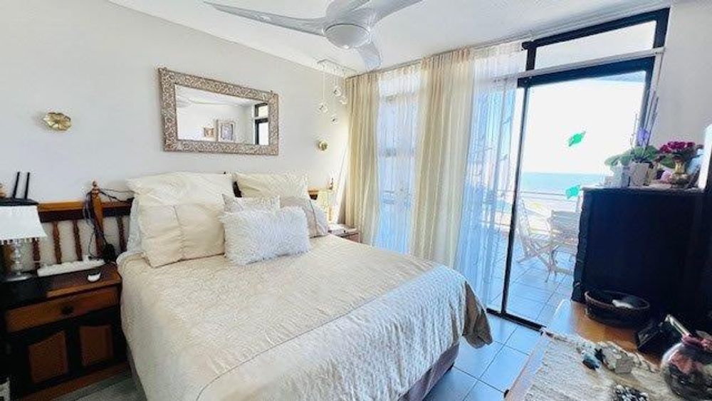 The open-plan kitchen is designed with both functionality and elegance in mind, boasting granite countertops and a built-in breakfast nook that overlooks the spacious lounge area. From here, you’ll enjoy uninterrupted ocean views while entertaining guests or simply relaxing. The lounge opens up to a large, private balcony with a built-in braai, offering ample space for outdoor dining and relaxation. This balcony wraps around to the main bedroom, providing easy access and a serene spot to enjoy the fresh coastal air.
