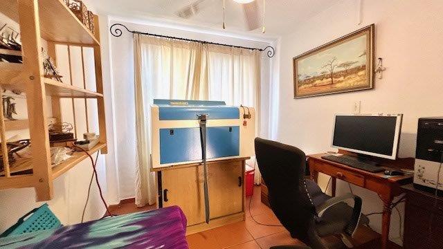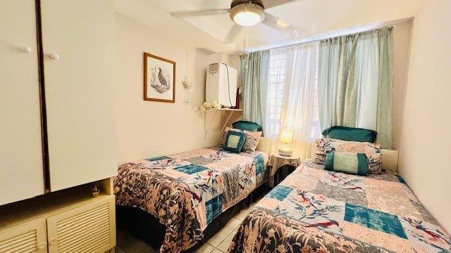 The 4th bedroom, which is located separately from the main apartment, comes with built-in cupboards and its own lock-up gate for added privacy. It’s a perfect space for guests or can be used as a home office or study. The apartment is fully tiled throughout, with large sliding doors that allow plenty of natural light and a strong focus on security.