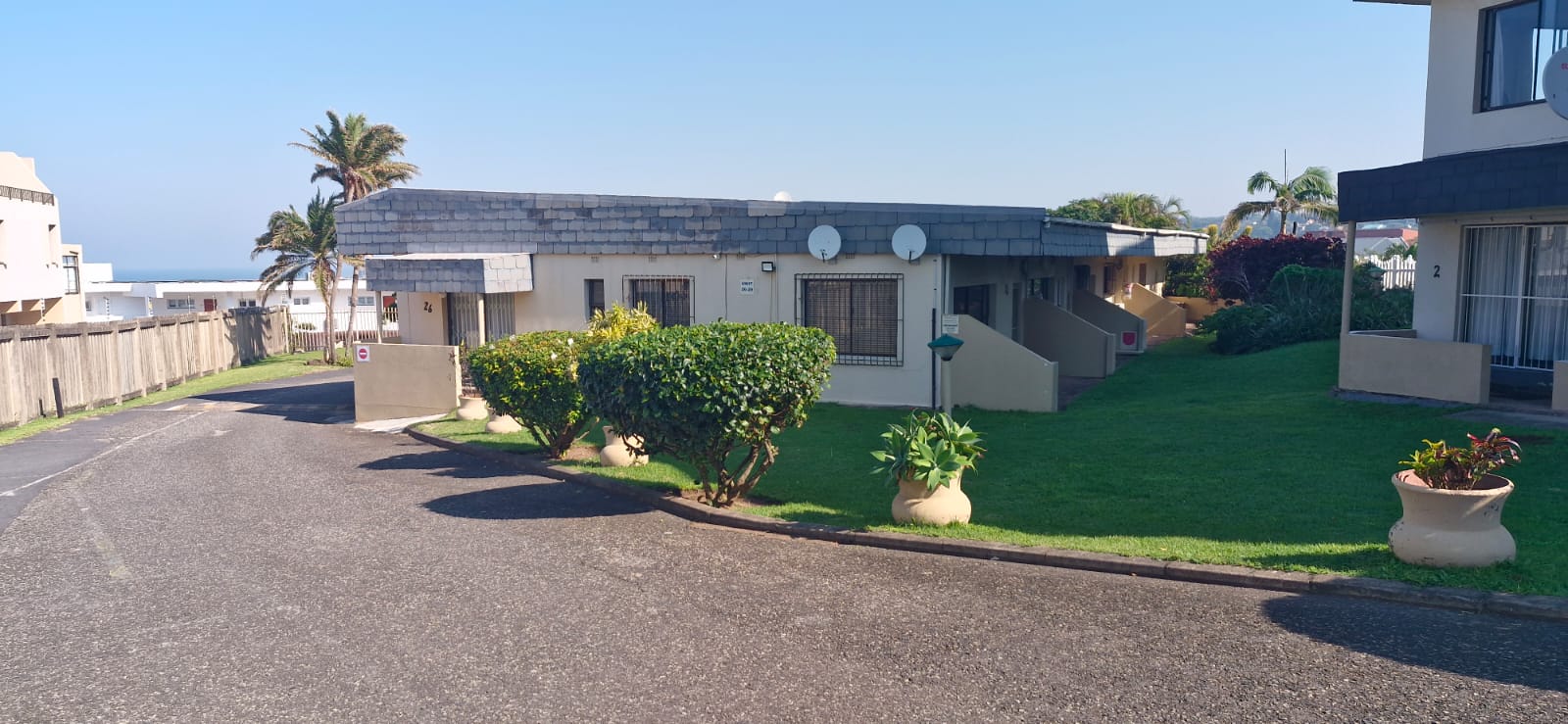 This unit is situated in a tranquil complex in Manaba, walking distance to the beach and close to all other amenities. Complex offering sweeping sea views from Manaba Beach to the main Margate Beach. Unit consisting of 2 Bedrooms, 2 Bathrooms, open plan lounge that leads to your patio. The dining room is closed up to be a study or another bedroom Beautiful kitchen with ample cupboard space Bonus: Furniture included. Relax in the complex’s swimming pool with views of the Indian Ocean. This complex is very secure with controlled access, includes undercover parking, braai area, offices, communal lounge area next to office and laundry room. Excellent investment for holiday rentals or just your own place to break away from city life!! What more can you ask for?