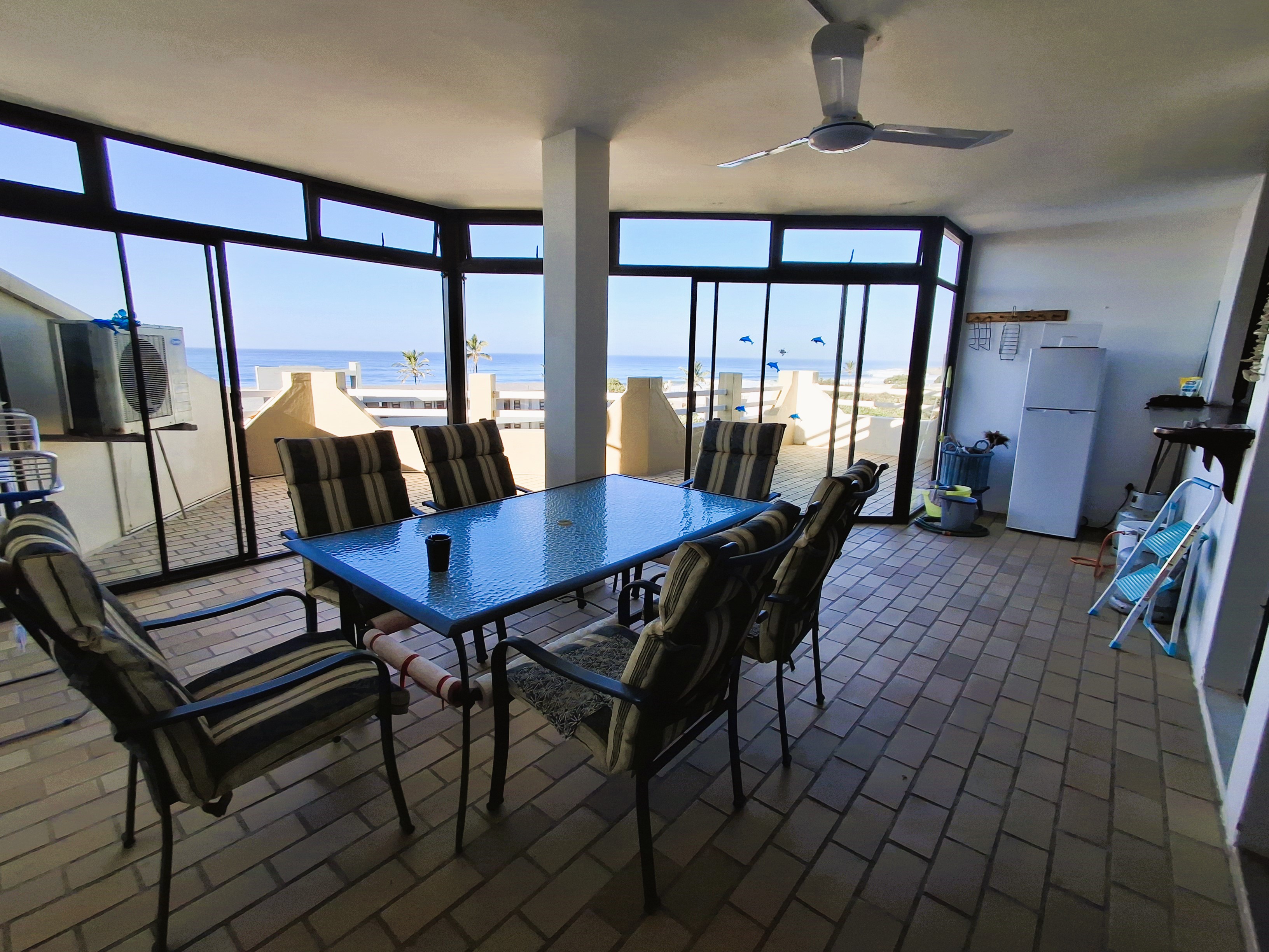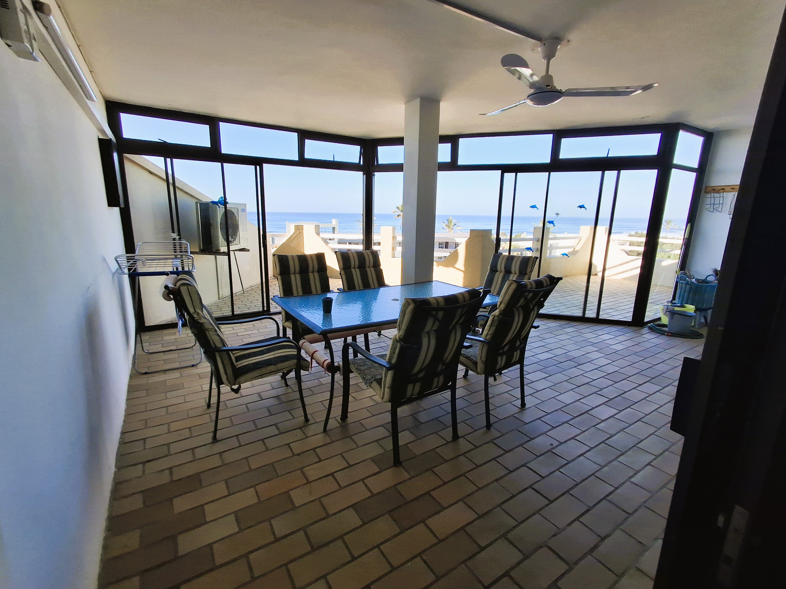Fully Furnished 3-Bedroom Apartment – Just Steps from Lucien Beach Step into seaside sophistication with this top-floor gem in the sought-after suburb of Manaba Beach. Perfectly positioned in a small, secure complex, this fully furnished and equipped 3-bedroom, 2-bathroom apartment offers the ultimate in comfort, style, and coastal living. Property Highlights: Spacious open-plan lounge, dining, and kitchen area, ideal for effortless entertaining Large covered balcony – perfect for year-round enjoyment, come rain or shine Extended open balcony with breathtaking sea views Main en-suite bedroom with direct balcony access and spectacular ocean vistas All bedrooms feature built-in cupboards and ceiling fans Single lock-up garage included Secure living with electric gates, perimeter electric fencing, and a plumbed-in JoJo tank to ensure water availability even during municipal interruptions. All this, just a short stroll from the Blue Flag Lucien Beach, one of the South Coast’s most beloved seaside destinations. Whether you're looking for a luxurious holiday home, a smart investment, or your new coastal residence – this is an opportunity not to miss. Contact me today to schedule your private viewing.