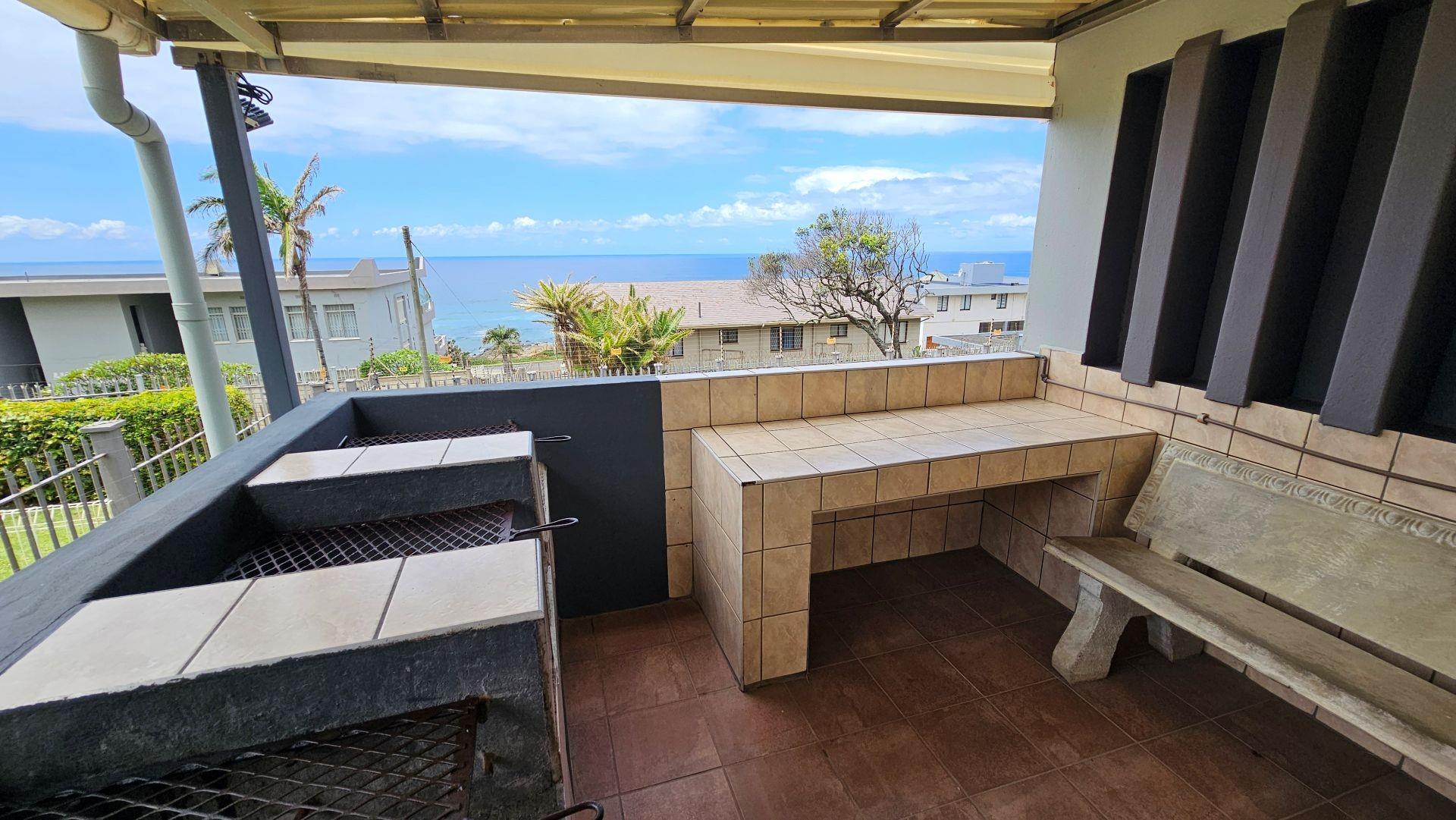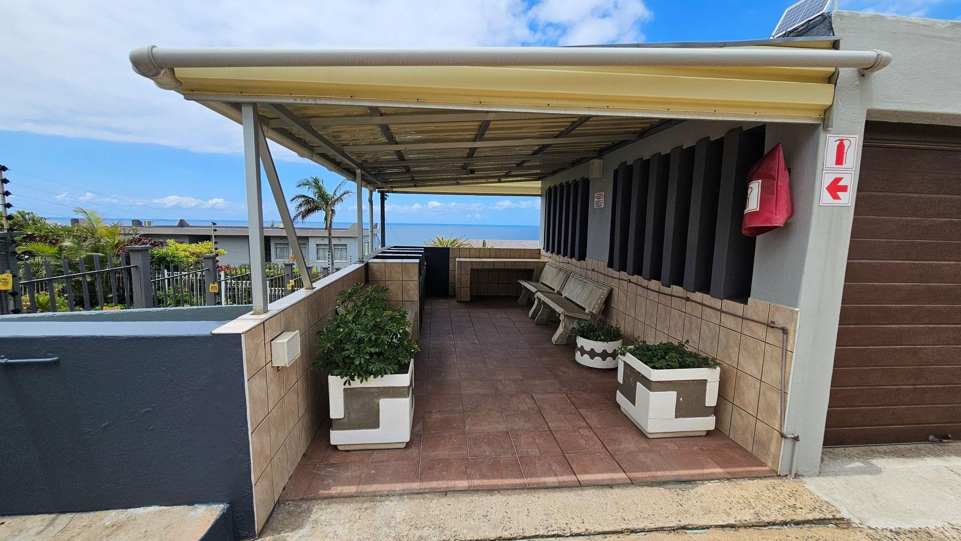 Upon entering the complex, you are welcomed by immaculate gardens and sweeping 180-degree ocean views. This charming apartment offers a seamless open-plan design, highlighted by a picturesque patio complete with an inviting outdoor entertainment area and breakfast nook overlooking the sea. The layout flows effortlessly from the exterior entertainment and kitchenette space into a cozy indoor lounge, perfect for cooler days. The kitchen is beautifully appointed with a gas hob, granite countertops, and generous cupboard space. From the lounge, you’ll find the main bedroom to your left, featuring ample built-in cupboards and air conditioning for those warm summer evenings. Adjacent to the bedroom lies a modern bathroom fitted with a spacious shower.