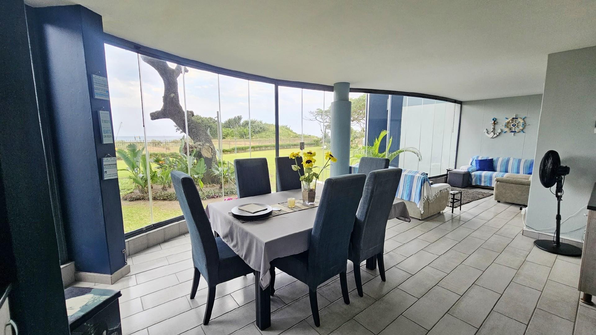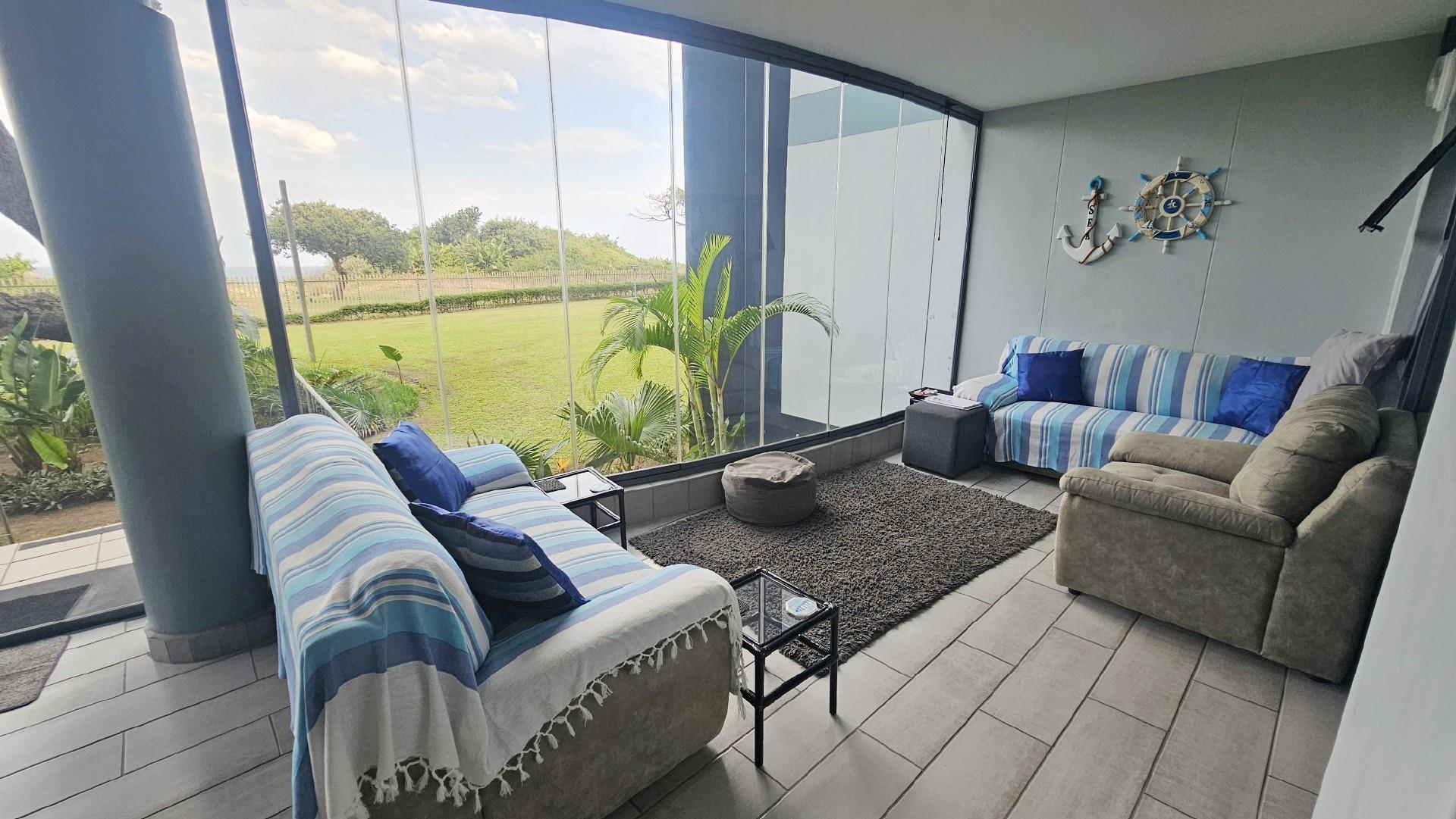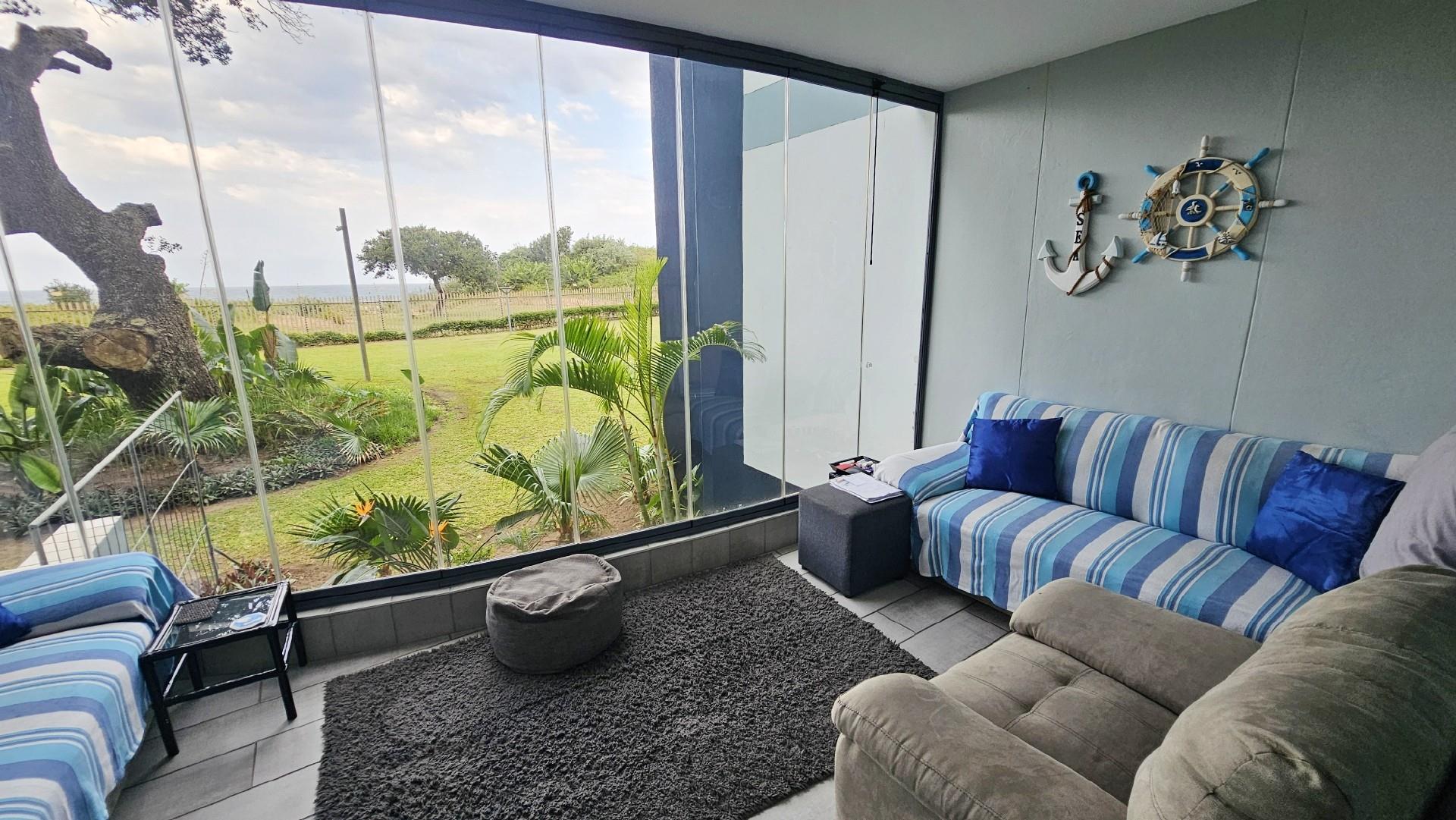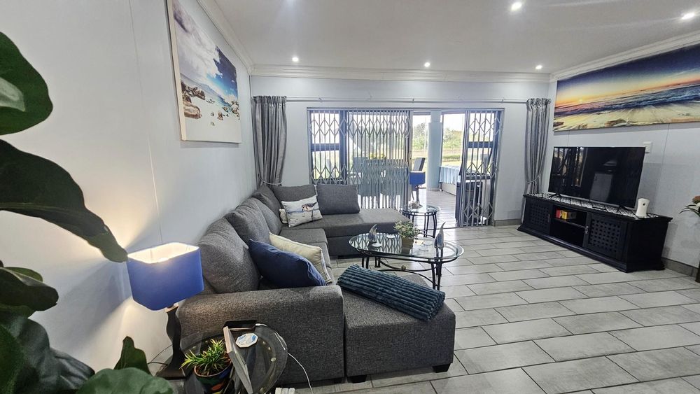 Just steps from your door, you can dip your toes into the crystal blue ocean. Once back inside, a passage leads you to the third bedroom which is fitted with ample built in cupboards. The first of two bathrooms is alongside this bedroom. The spacious main ensuite is a peaceful retreat, offering private patio access, a second private lounge area, abundant wardrobe space, and a full ensuite bathroom. Imagine sipping your morning coffee while watching the sun rise over the Indian Ocean. This exceptional home is equipped with an inverter system to keep loadshedding at bay and is located in a secure complex with 24 hour security. The complex also offers ample parking with a parkade-style garage setup, as well as an abundance of visitor parking in front of the complex. There are also 8-10 reserve water tanks in place so water issues do not affect the complex.