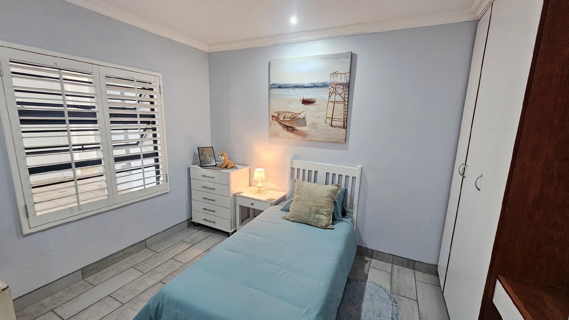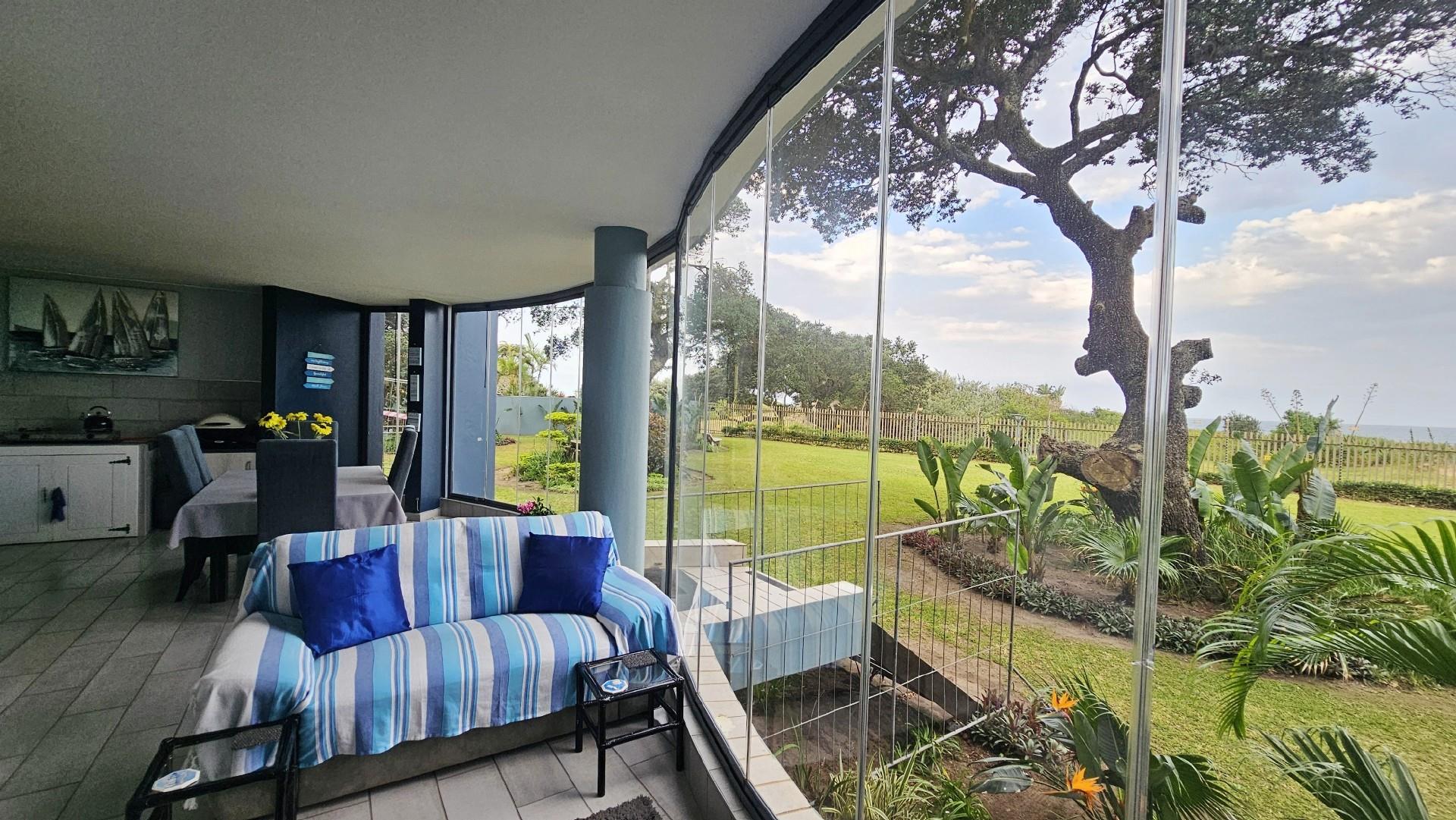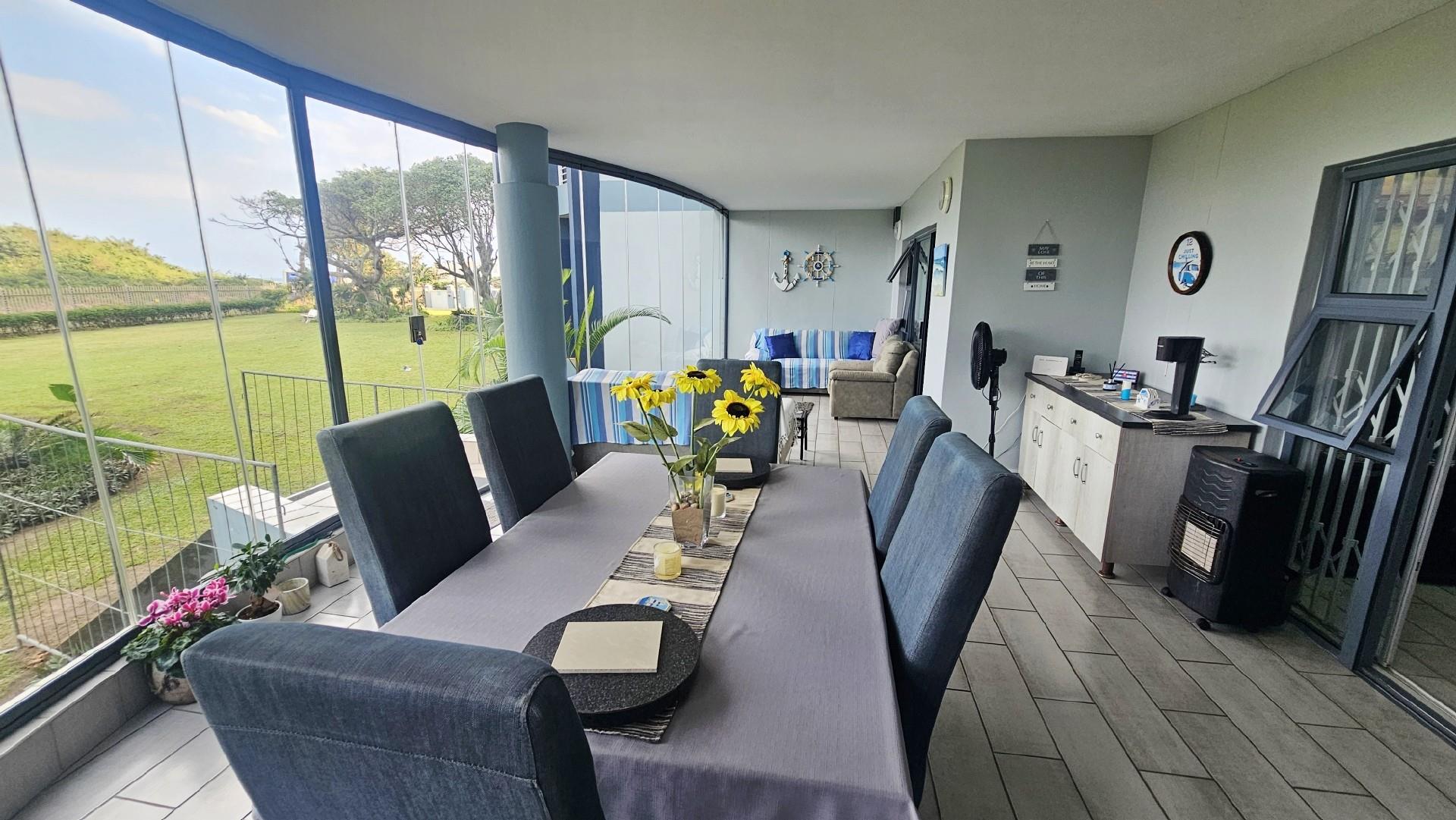 Just steps from your door, you can dip your toes into the crystal blue ocean. Once back inside, a passage leads you to the third bedroom which is fitted with ample built in cupboards. The first of two bathrooms is alongside this bedroom. The spacious main ensuite is a peaceful retreat, offering private patio access, a second private lounge area, abundant wardrobe space, and a full ensuite bathroom. Imagine sipping your morning coffee while watching the sun rise over the Indian Ocean. This exceptional home is equipped with an inverter system to keep loadshedding at bay and is located in a secure complex with 24 hour security. The complex also offers ample parking with a parkade-style garage setup, as well as an abundance of visitor parking in front of the complex. There are also 8-10 reserve water tanks in place so water issues do not affect the complex.
