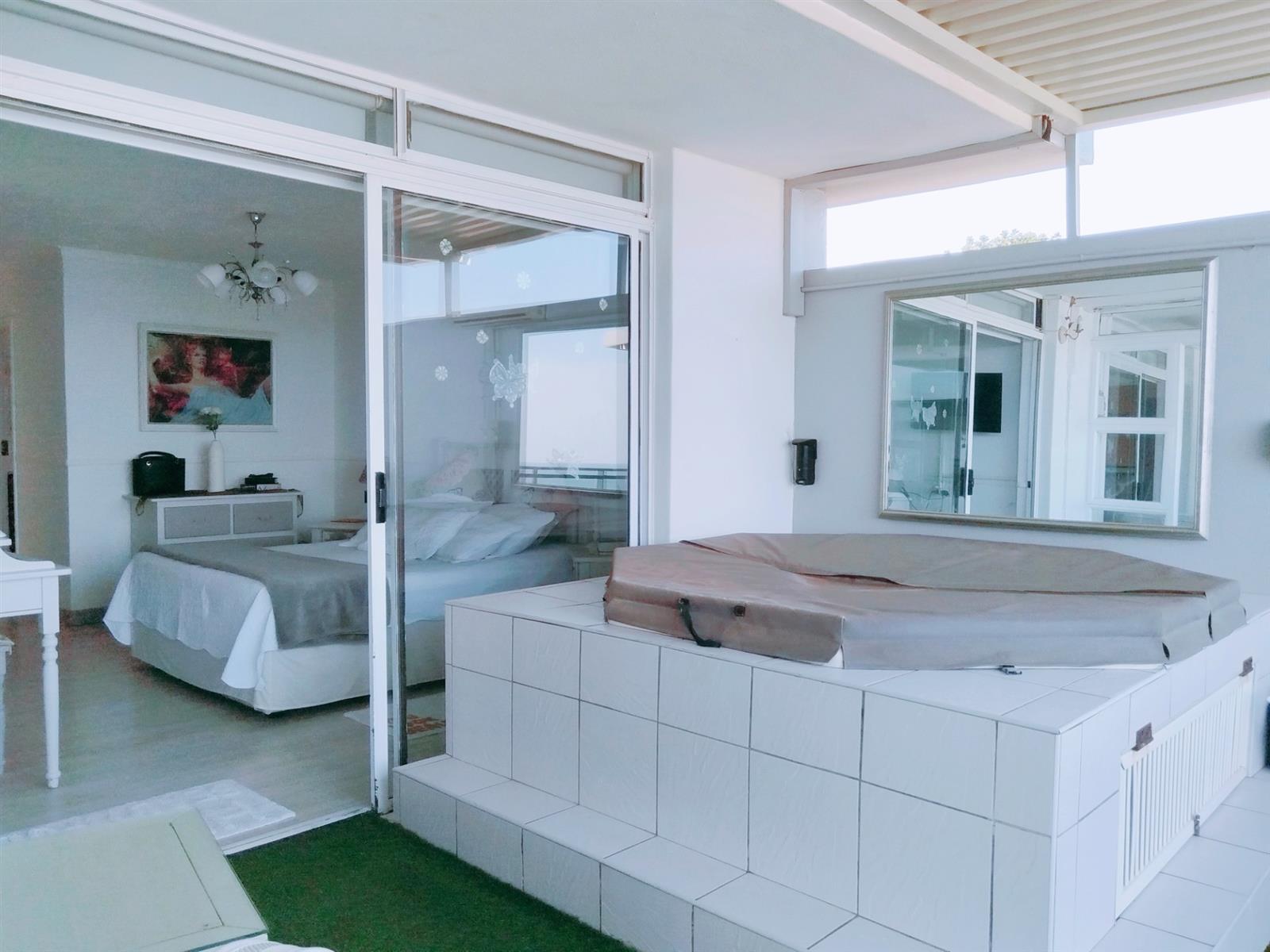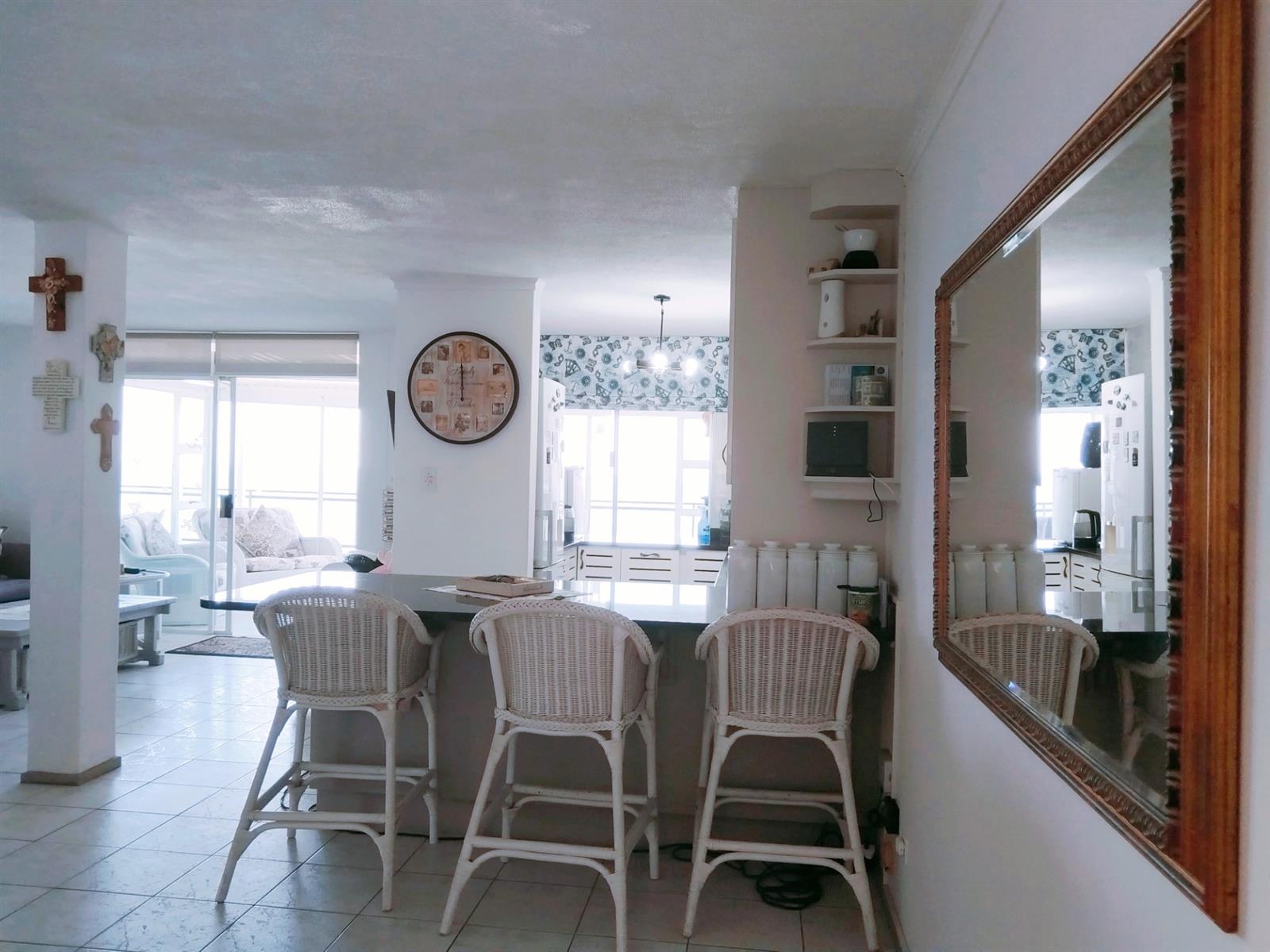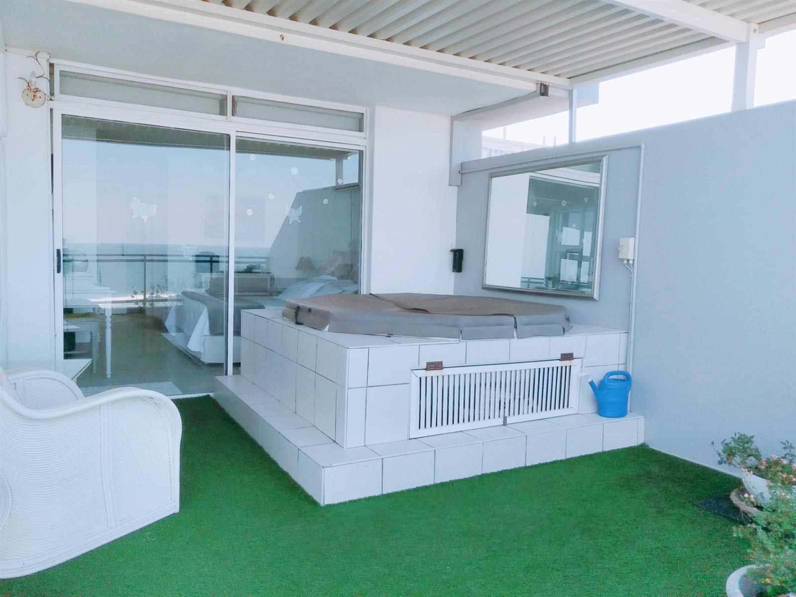 This top floor 3-bedroom Penthouse offer the best 180 ‘breaker views from your bedroom, lounge or even your private jacuzzi. The modern stylish penthouse is sold unfurnished and offer spacious rooms with a big open and enclosed balcony. The apartment is an entertainers dream with open plan lounge, kitchen, dining room and indoor braai area as well as an open balcony with a jacuzzi outside the main bedroom. Modern bathrooms with laminated floors in bedrooms make it an upmarket venue. The kitchen is open plan with granite tops, electric and gas stove facilities, even a serving window to the bar room area. The enclosed balcony or braai room is spacious and can be closed when the weather is not great to continue enjoying and entertaining your guests. Apart from two single garages the complex offers excellent security and a communal pool.