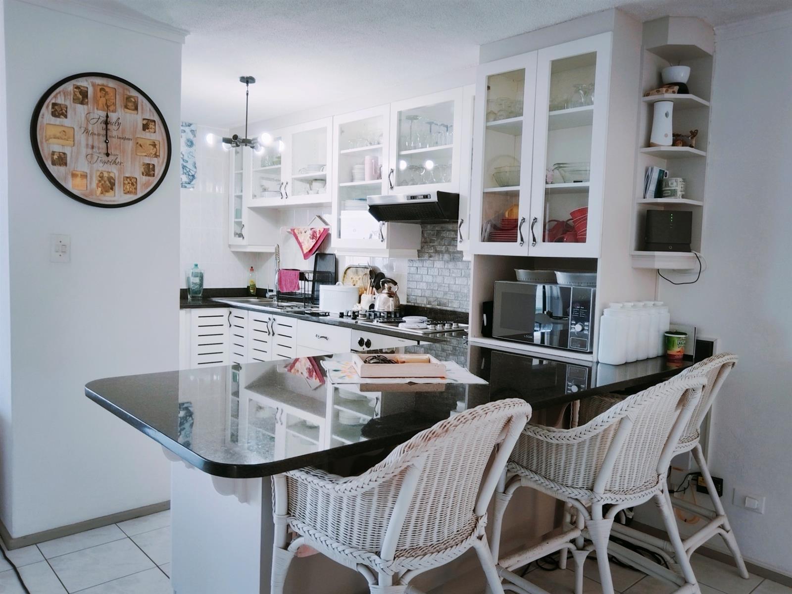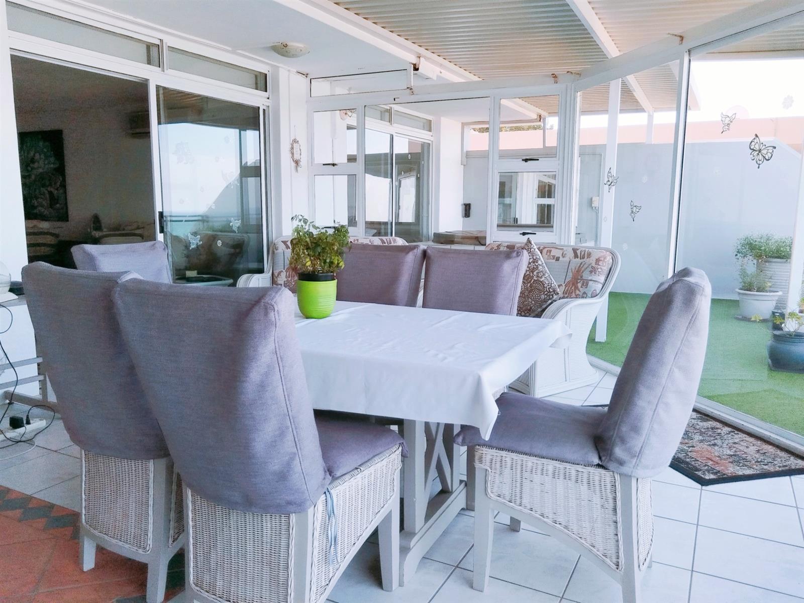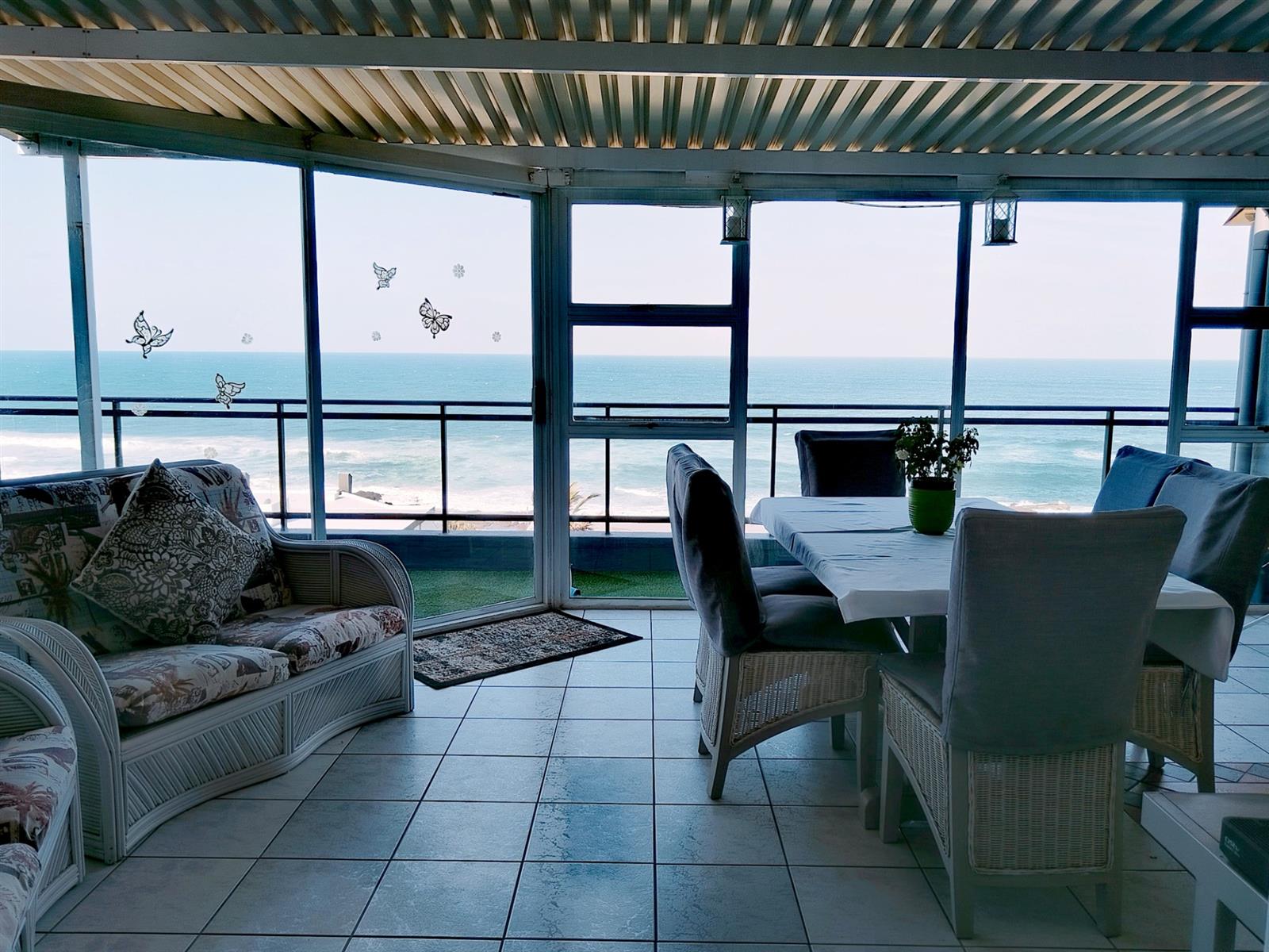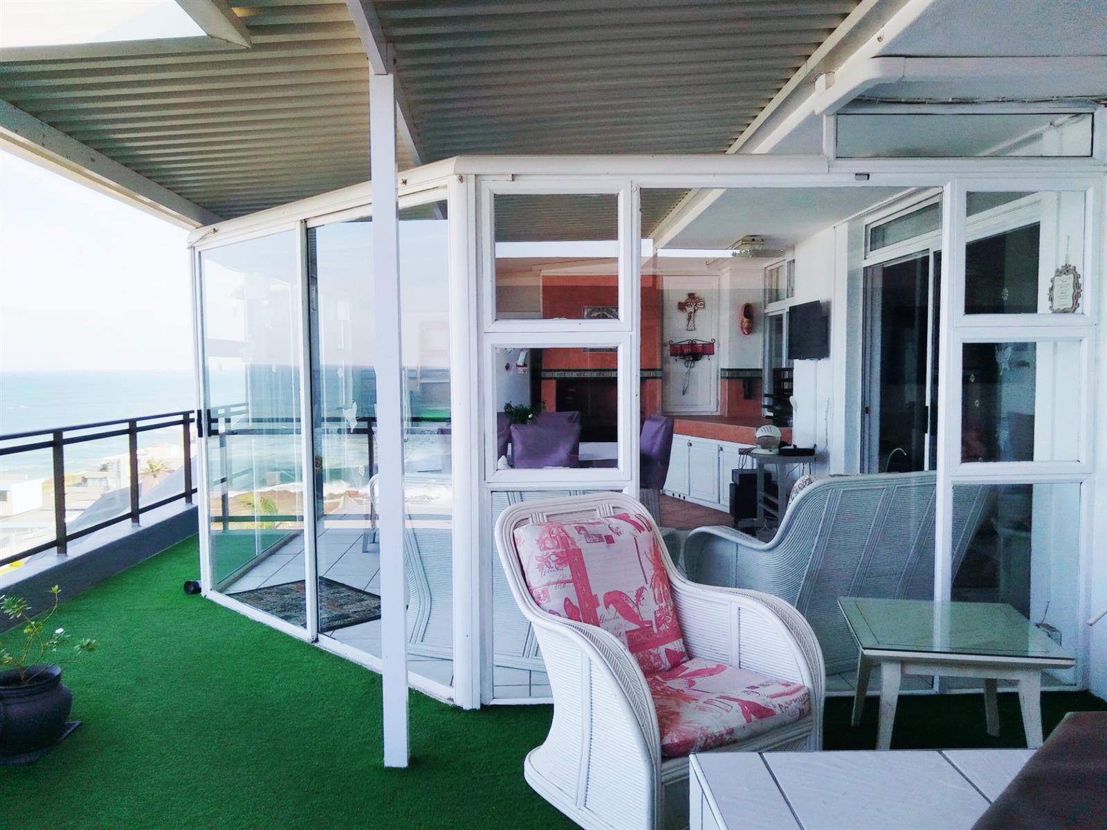 This top floor 3-bedroom Penthouse offer the best 180 ‘breaker views from your bedroom, lounge or even your private jacuzzi. The modern stylish penthouse is sold unfurnished and offer spacious rooms with a big open and enclosed balcony. The apartment is an entertainers dream with open plan lounge, kitchen, dining room and indoor braai area as well as an open balcony with a jacuzzi outside the main bedroom. Modern bathrooms with laminated floors in bedrooms make it an upmarket venue. The kitchen is open plan with granite tops, electric and gas stove facilities, even a serving window to the bar room area. The enclosed balcony or braai room is spacious and can be closed when the weather is not great to continue enjoying and entertaining your guests. Apart from two single garages the complex offers excellent security and a communal pool.