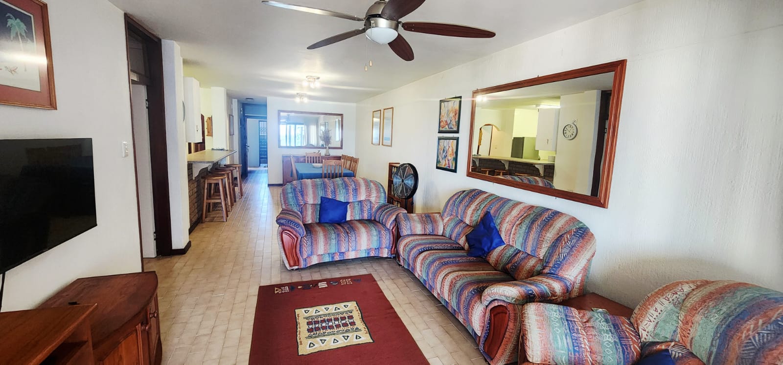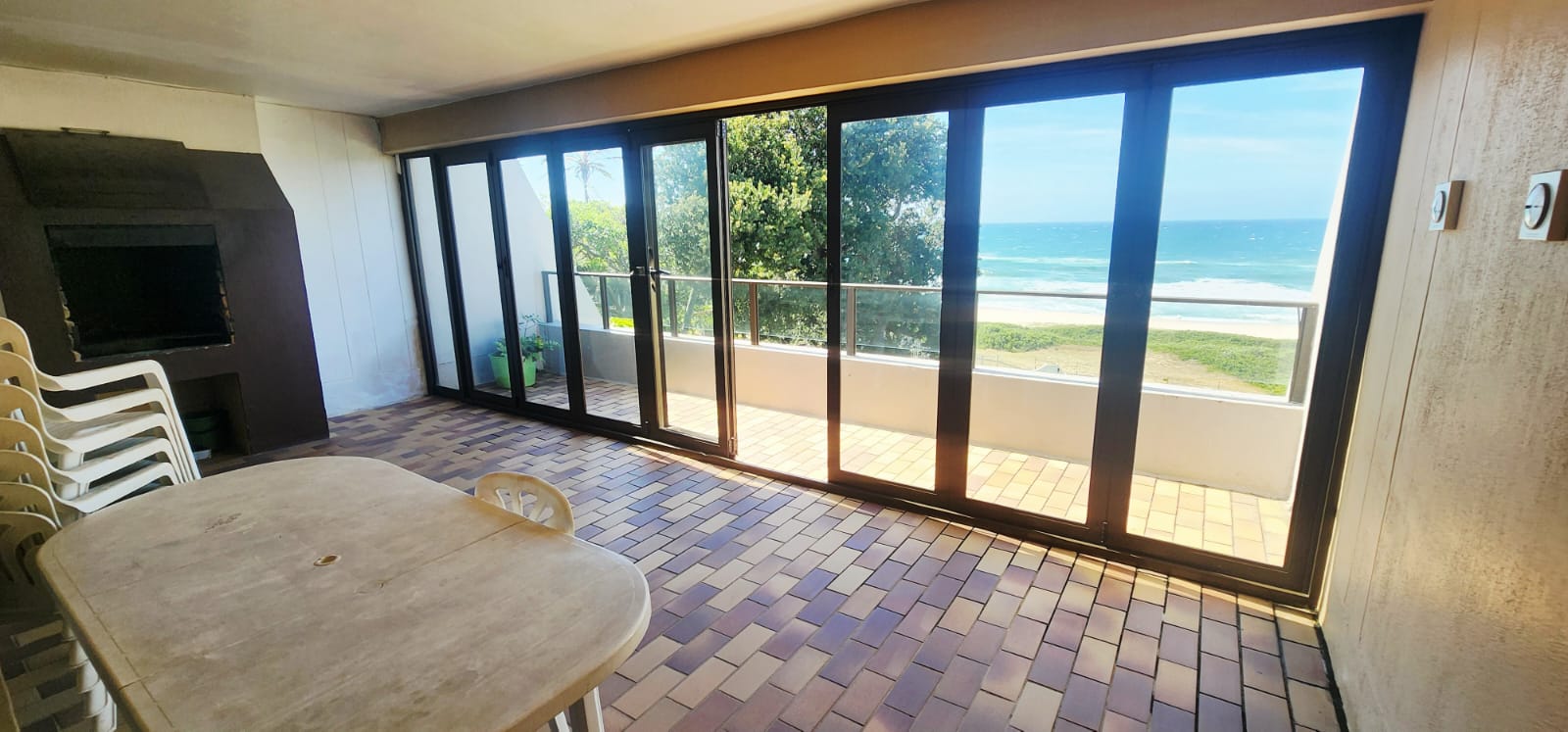 Situated on the 2nd floor, this apartment is in a well run complex, with direct beach access, and within walking distance to the local supermarkets, restaurants and Margate is a short drive away. Consisting of 3 well sized bedrooms, main ensuite with sliding door to the balcony with view of the pool deck and the beach with 180 degree ocean view. There is a family bathroom servicing the remaining bedrooms and guests. The open plan living area consists of a large kitchen with breakfast counter, dining area and lounge which opens to the enclosed front balcony, with stacker doors which can be opened to allow unspoiled ocean views and the gentle ocean breeze to flow through the apartment. There is a built in braai on the balcony as well. The unit has a shade port and the complex gardens are immaculate, with seating areas scattered around between the foliage. The communal pool is fenced and is absolutely stunning, also allowing panoramic views of the beach and ocean. This is a lovely apartment and well worth a viewing for interested buyers. Please contact us ANYTIME to chat further!