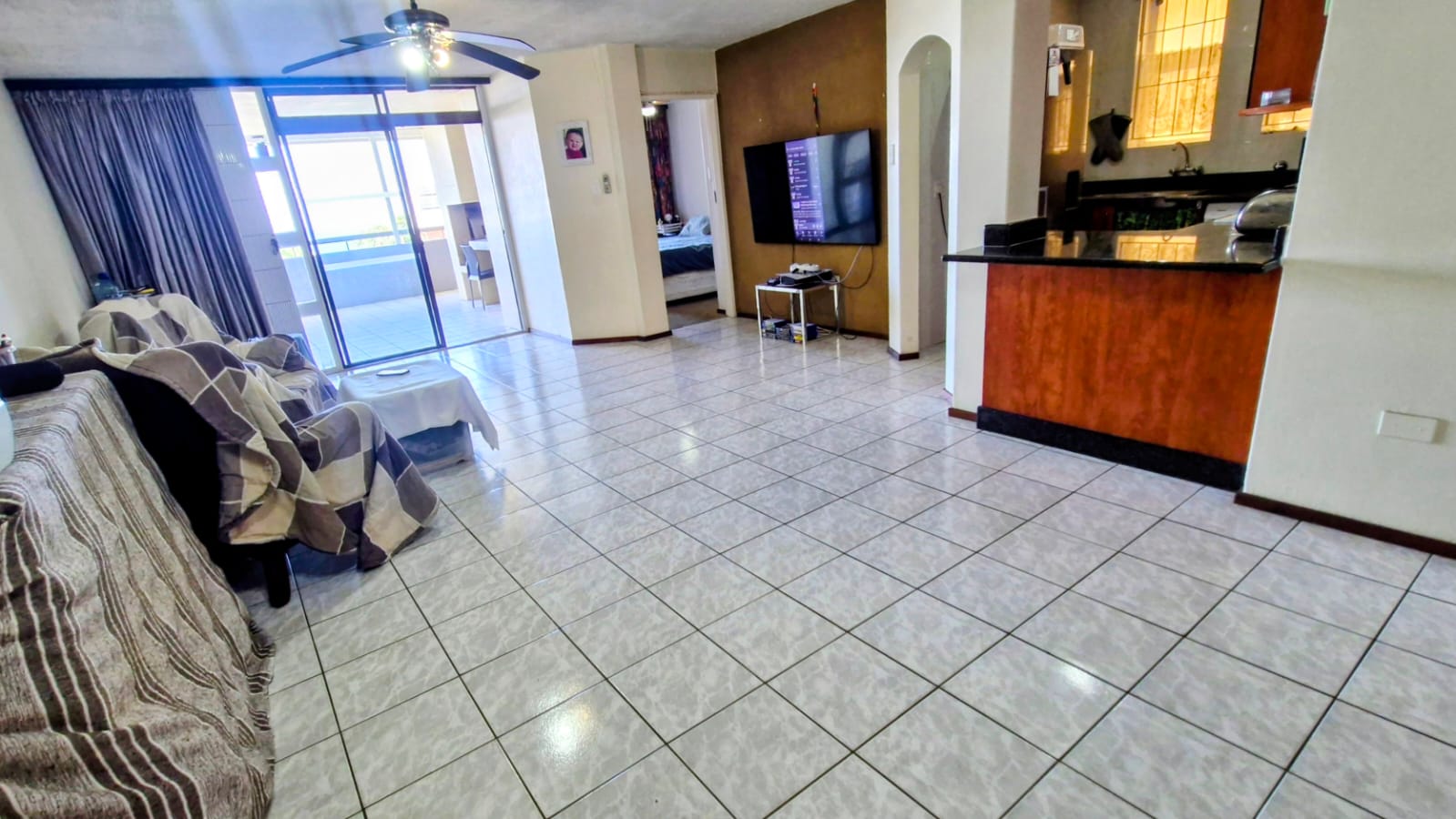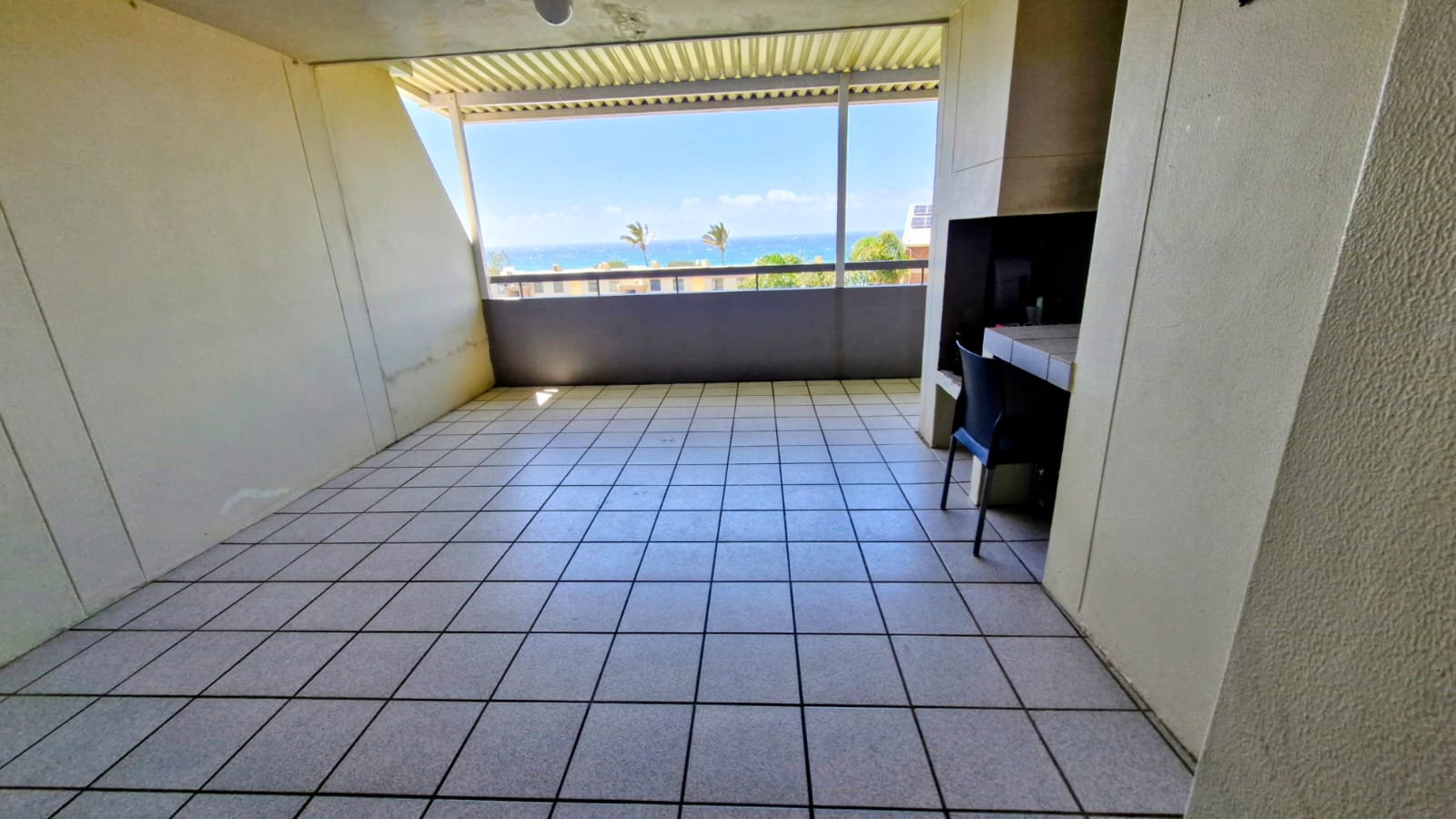 Open-plan lounge and living area – light, airy, and opens onto a stunning balcony with a built-in braai and spectacular ocean views, perfect for entertaining or unwinding.