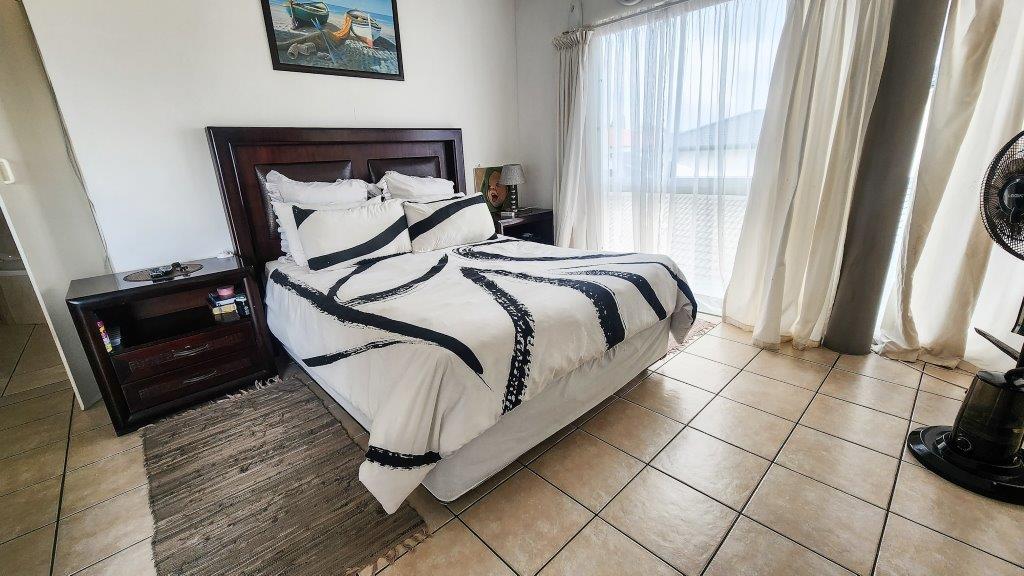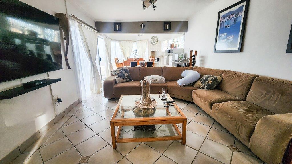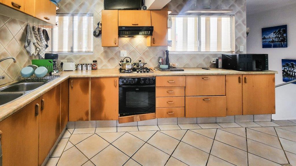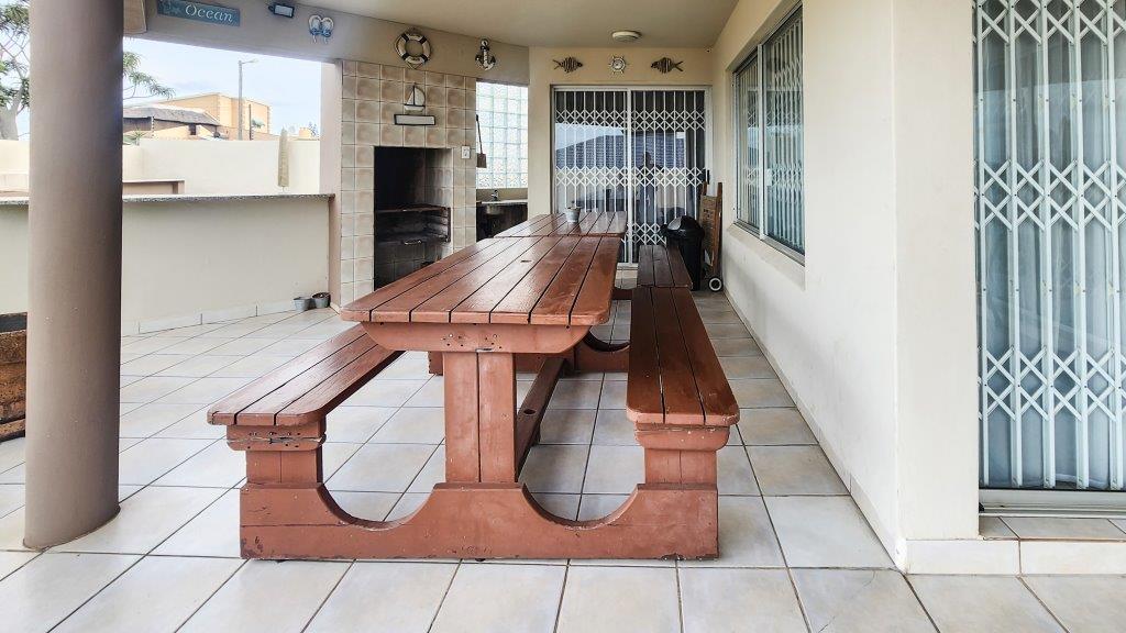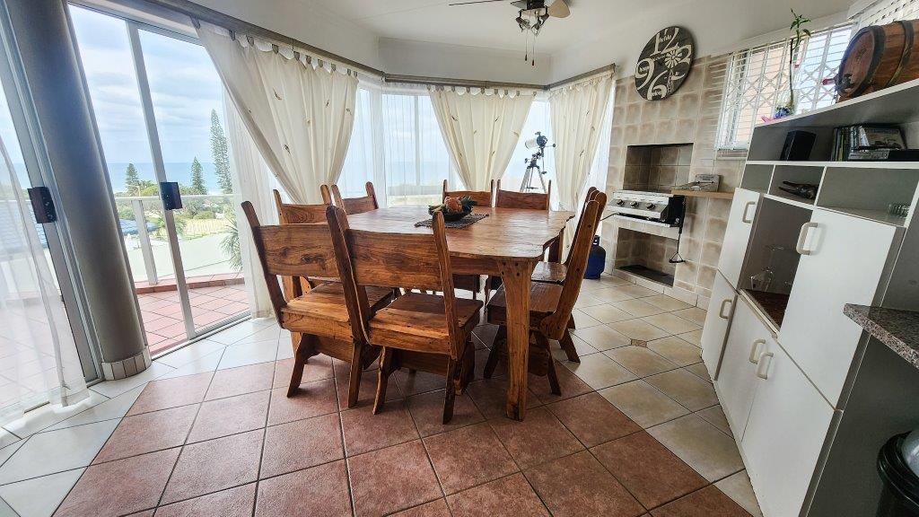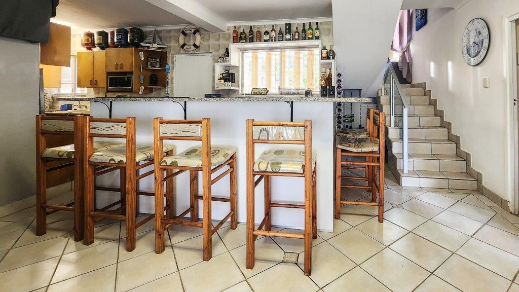 Upstairs is a second kitchen, lounge, dining room, with an indoor braai that leads to a balcony with amazing sea views. There are another two rooms upstairs, main bedroom has a walk-in cupboard, a full en-suite and is large enough to fit a lounge suite in the bedroom. This also leads out to the balcony with superb sea views.