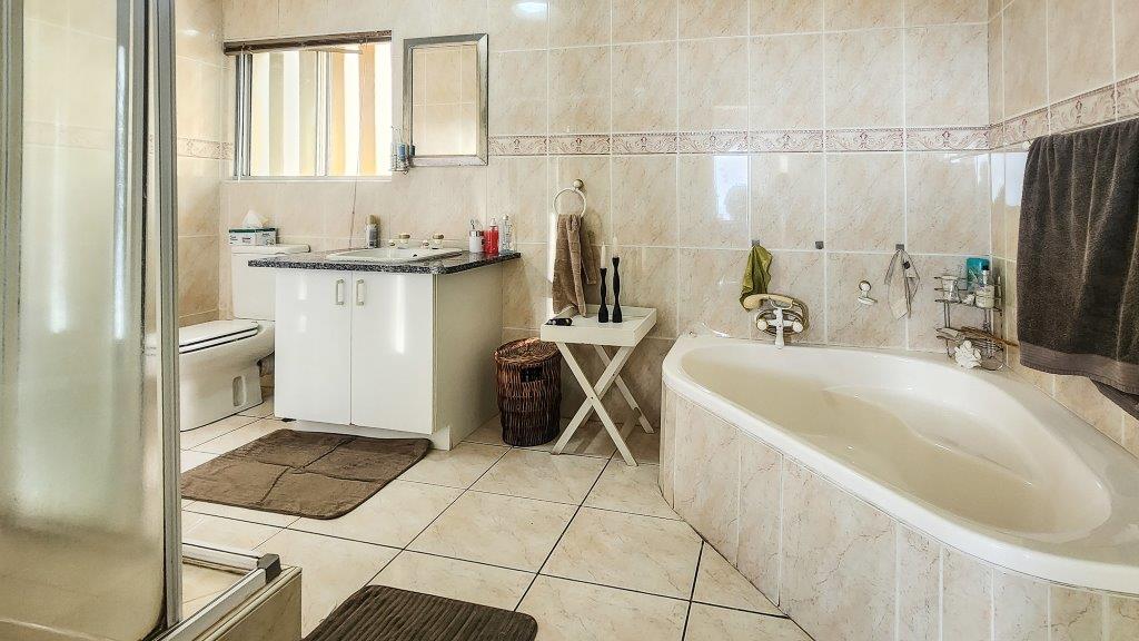 The home is self-contained upstairs and downstairs. Downstairs has a lounge, kitchen and a bar area with two rooms located on this level as well as a full bathroom. This level leads out to a patio with a built-in braai to relax and enjoy. There is also a boma and an entertainment area that has been built on the property.