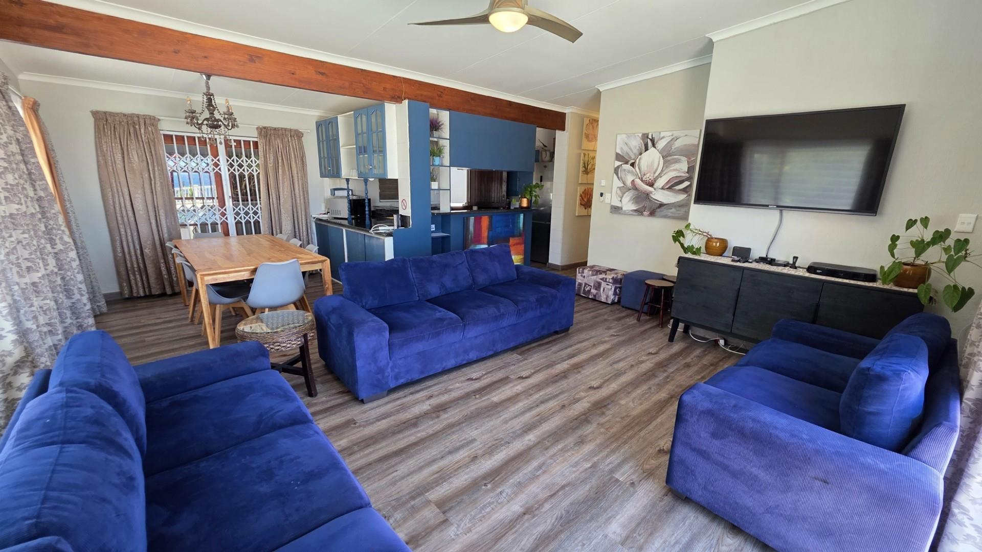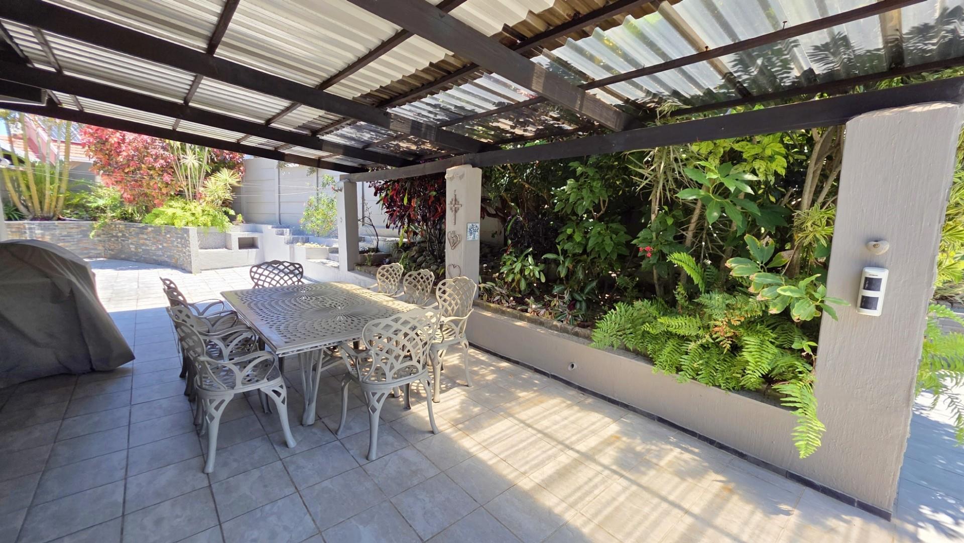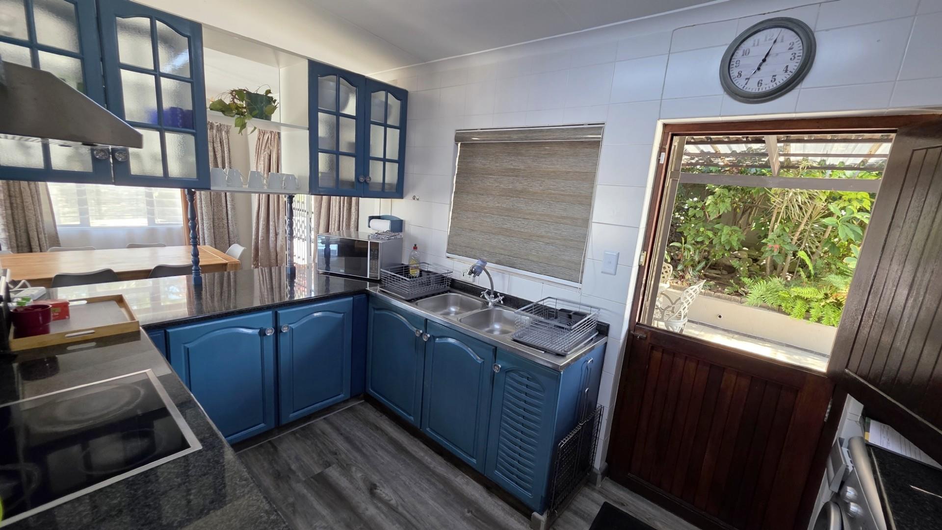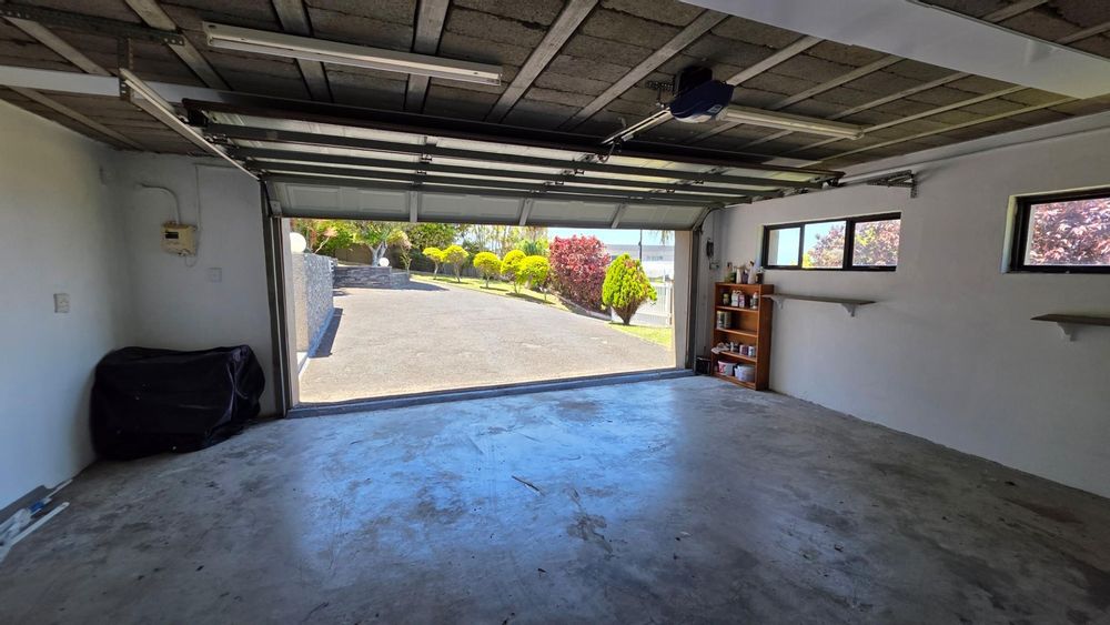 Designed with entertaining in mind, the property features multiple outdoor living spaces, both open-air and covered, all beautifully tiled. The front of the home offers an expansive patio extension which is a wonderful use of space, for entertaining, hosting of guests and showcasing 180 degree panoramic ocean views, while the back of the home offers and undercover patio and outdoor dining setup for the less sunny days. A custom-built Wendy House provides convenient garden storage, while two 5,000-litre plumbed water tanks ensure uninterrupted supply regardless of municipal outages. Security has been thoughtfully addressed with a comprehensive system that includes CCTV cameras, wireless beams, an alarm, and an electric gate. Parking is ample, with a double automated garage and additional open-air spaces available. The garden is a picture of careful maintenance, immaculately laid out, enhancing the property’s appeal and creating a tranquil setting. Currently, the home operates successfully as a short-term holiday rental, generating consistent income with confirmed bookings well into the peak season. For those seeking convenience, the option exists to purchase the property fully furnished at an additional cost.