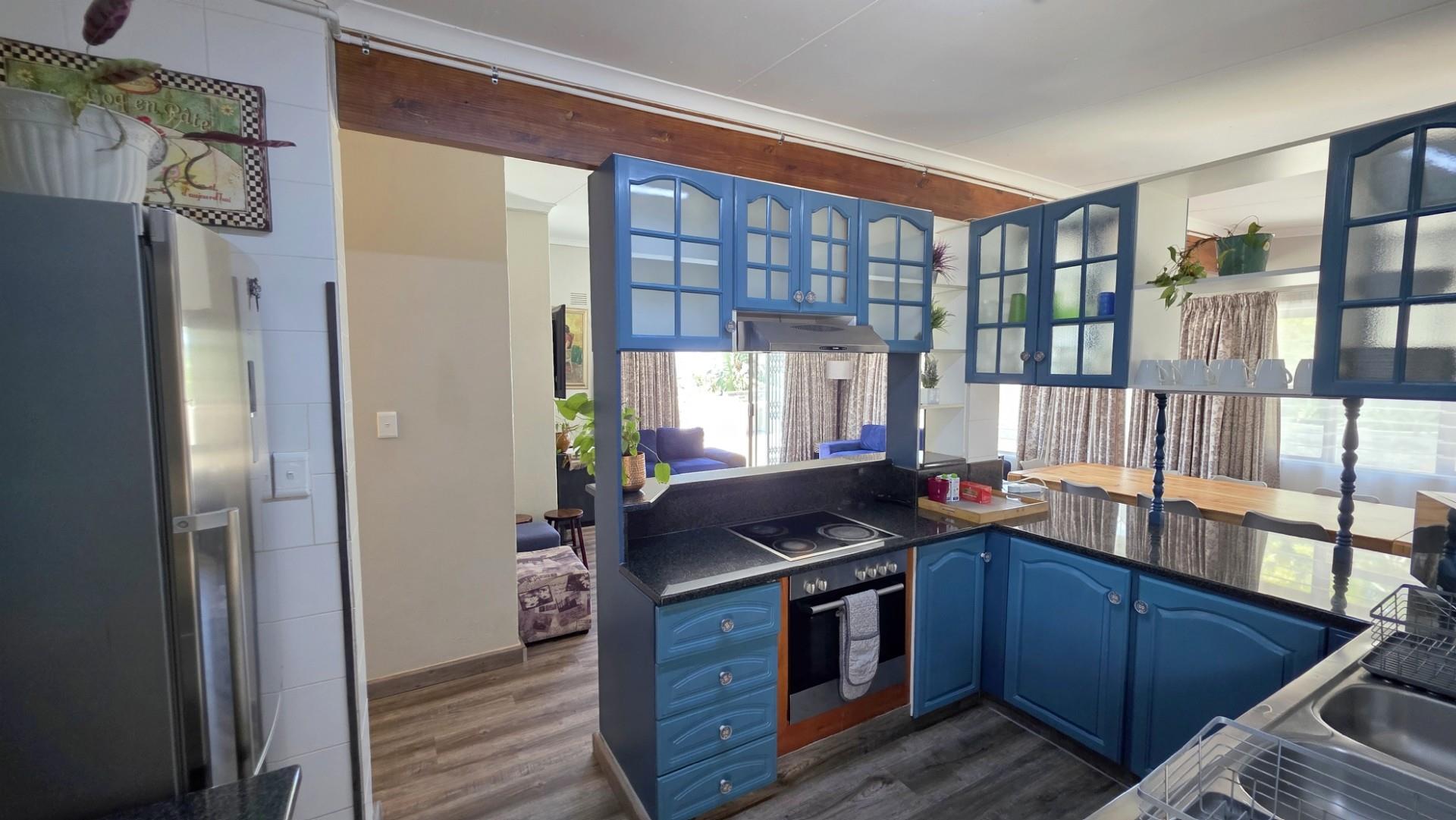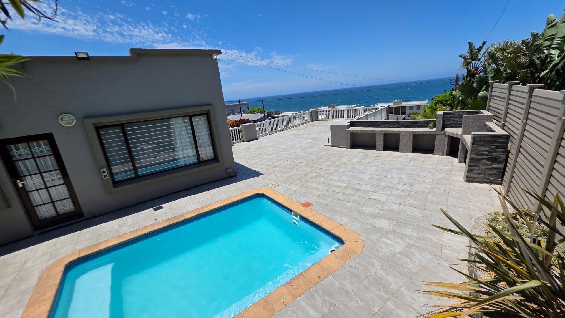 From almost every corner of this incredible home, you are able to indulge in breathtaking 180-degree ocean views and blue blue skies. Whether you are entertaining on the very spacious tiled deck, relaxing beside the sparkling swimming pool, or enjoying al fresco meals in the open-plan lounge or dining room. The kitchen offers charming appeal, with granite countertops, ample cupboard space, quality appliances, undercounter oven, hob and extractor fan, and direct access onto the back patio. The sea is a constant presence throughout this home. Four of the five bedrooms share in these magnificent vistas, ensuring that the rhythm of the waves become part of everyday life.