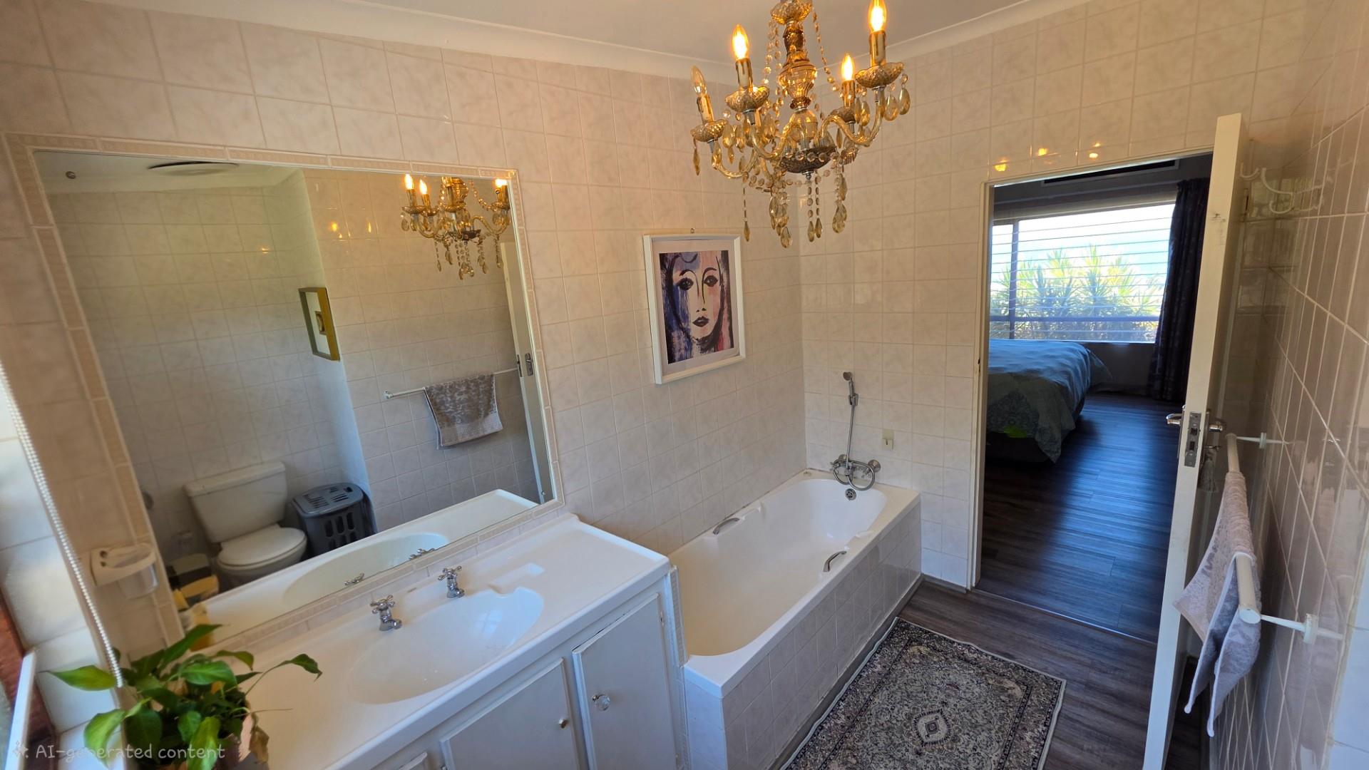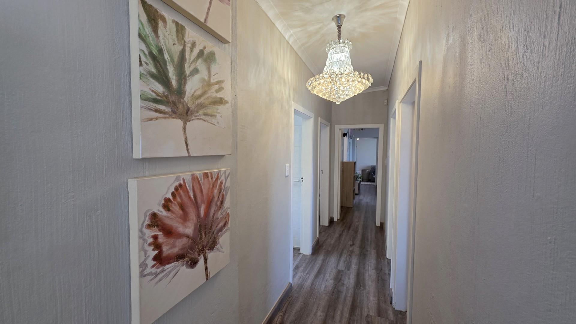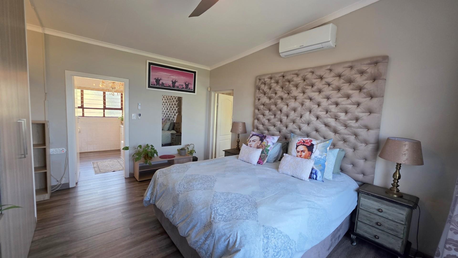 The home is presented in immaculate condition, having undergone significant upgrades that make it truly move-in ready. Its finishes strike a balance between classic charm and modern functionality, with laminate flooring throughout, wood-framed windows, and elegant crystal chandeliers adding warmth and refinement. Each of the five bedrooms is fitted with built-in cupboards and ceiling fans which allow for optimum air circulating throughout the home, while the main bedroom offers generous proportion, air conditioning, and a luxurious ensuite bathroom. The fifth bedroom can be used as a home office or a granny flat or possibly a room for older children as it is equally versatile, complete with built-in cupboards, air conditioning, and its own ensuite, and has a separate entrance. The remaining bedrooms in the home share a third bathroom.