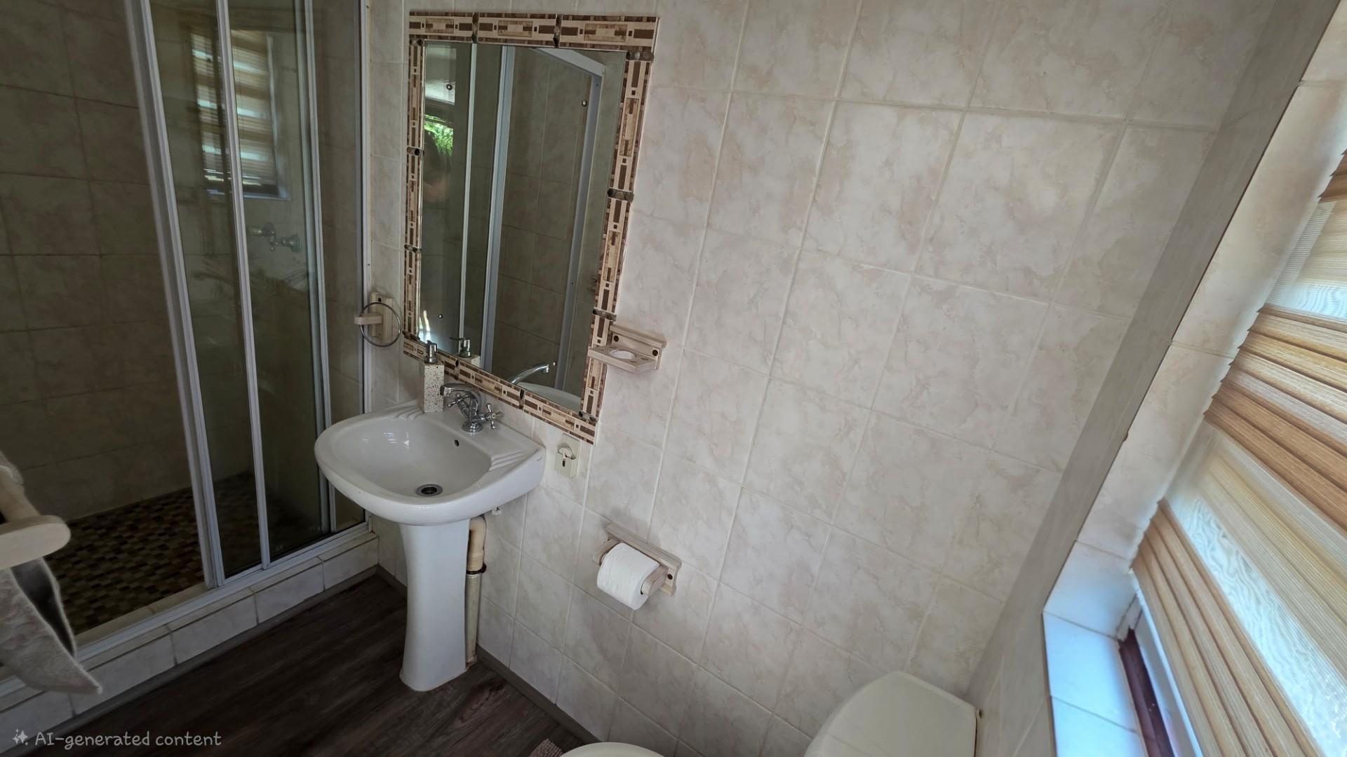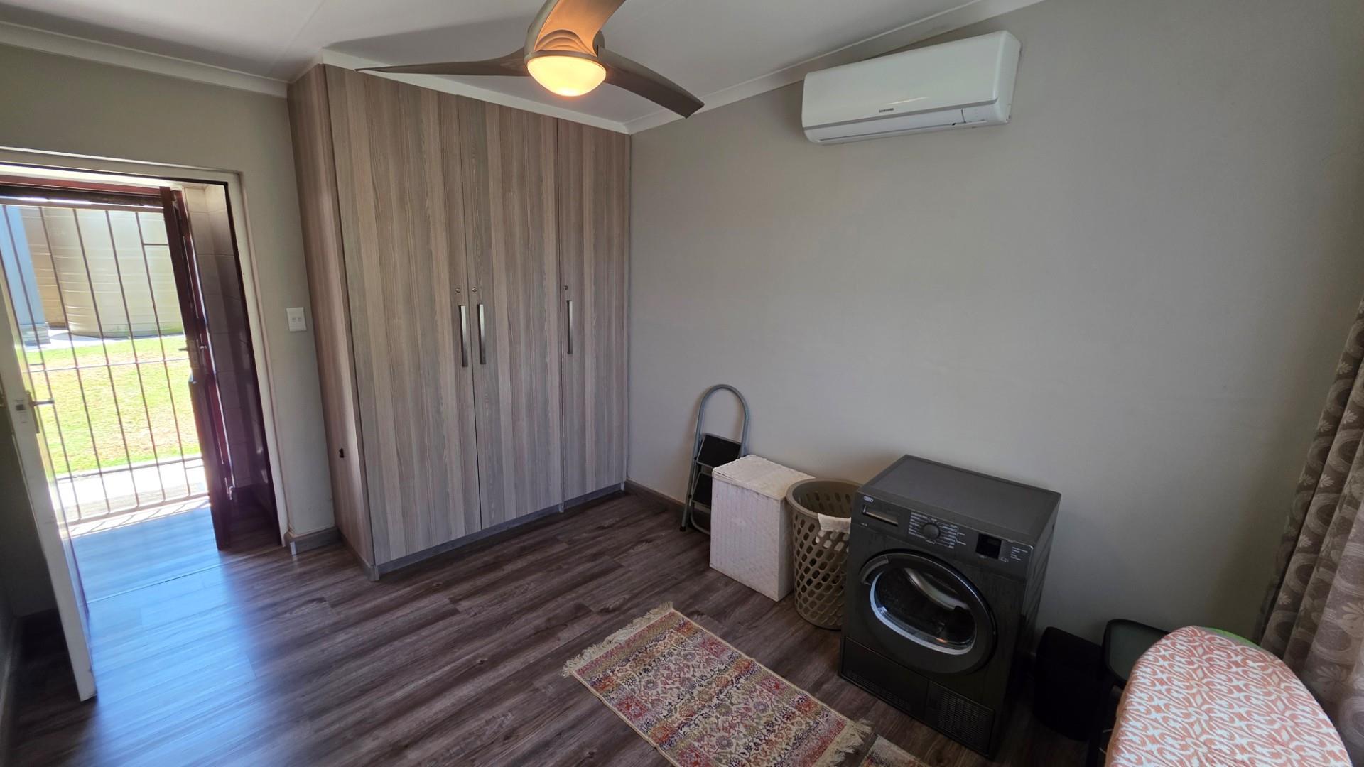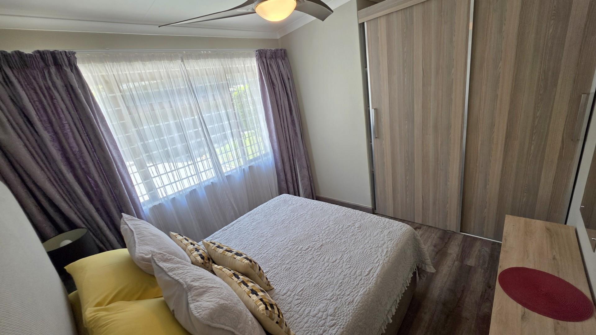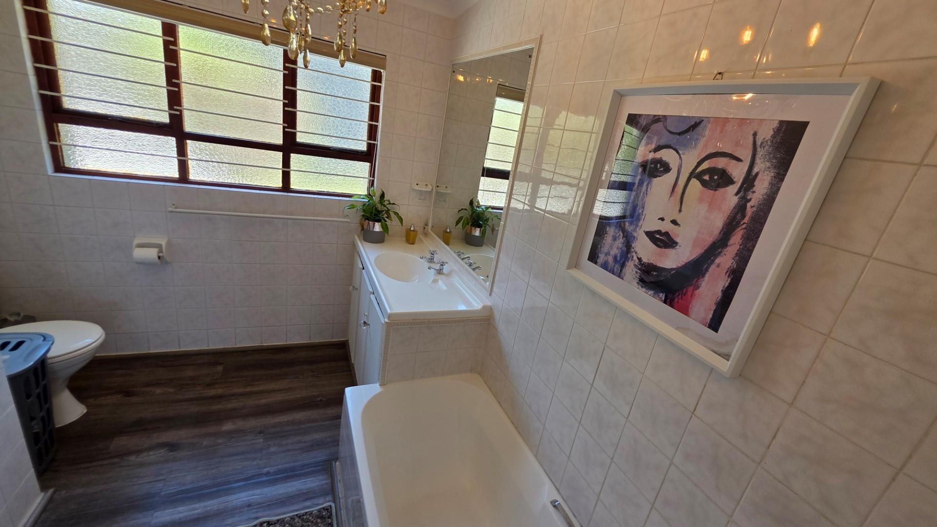 The home is presented in immaculate condition, having undergone significant upgrades that make it truly move-in ready. Its finishes strike a balance between classic charm and modern functionality, with laminate flooring throughout, wood-framed windows, and elegant crystal chandeliers adding warmth and refinement. Each of the five bedrooms is fitted with built-in cupboards and ceiling fans which allow for optimum air circulating throughout the home, while the main bedroom offers generous proportion, air conditioning, and a luxurious ensuite bathroom. The fifth bedroom can be used as a home office or a granny flat or possibly a room for older children as it is equally versatile, complete with built-in cupboards, air conditioning, and its own ensuite, and has a separate entrance. The remaining bedrooms in the home share a third bathroom.