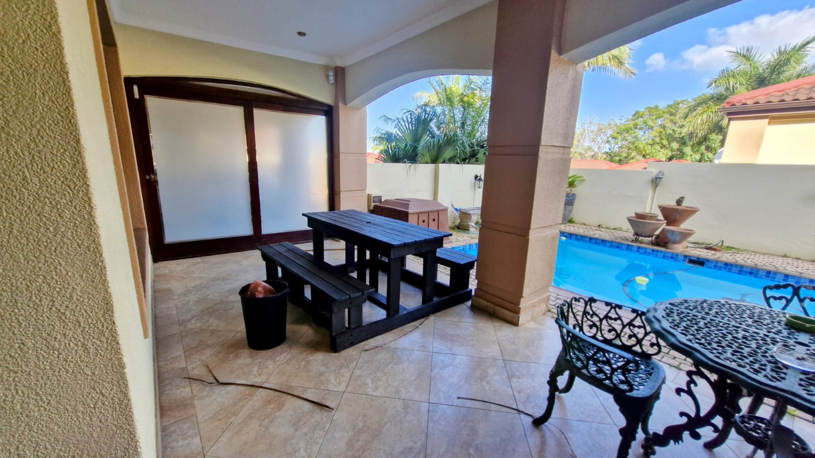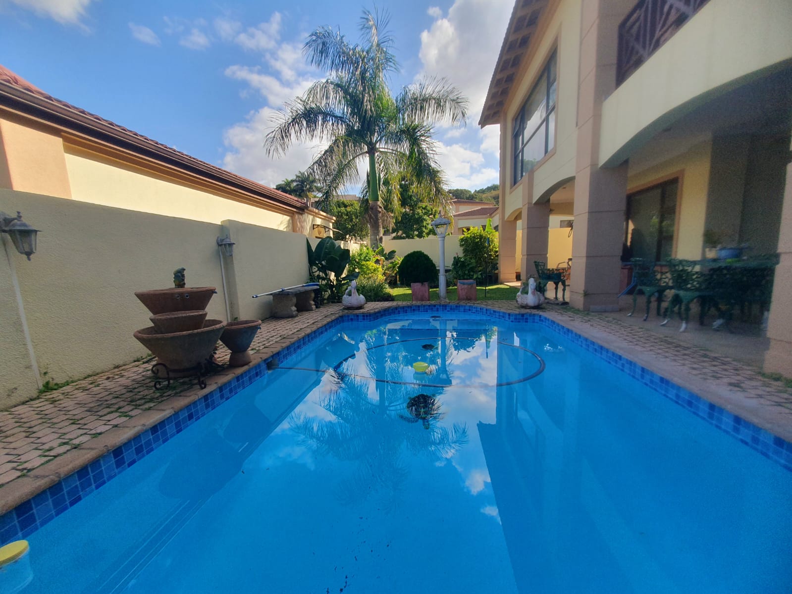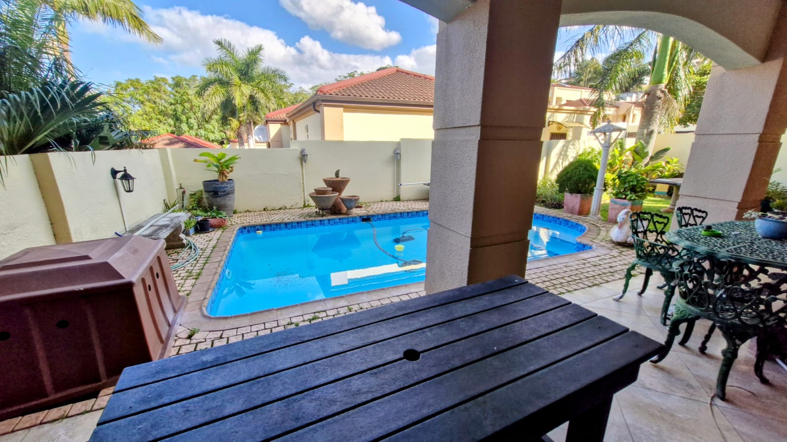 Nestled in a serene cul-de-sac, this spacious and beautifully designed home offers the epitome of coastal living, perfect for a permanent residence or a luxurious holiday retreat. Upstairs: Bright and spacious south-facing open-plan living area, including a dining room and spacious modern kitchen that features ample cupboard space and a separate scullery. Spacious lounge area. Dining and Lounge opens up to the spacious balcony. Large master bedroom with a full en-suite bathroom plus walk-in closet. With direct access to the balcony, offering that peaceful atmosphere. Two additional bedrooms and one bathroom. Ground Floor Features: Offers you open plan kitchen, lounge and one bedroom and bathroom. Spacious entertainment/study/office area or can be used for extra bedroom space. Can easily be rented out for extra income or be used for the extended family. Additional Features: Double automated garage with direct access to the house. Expansive lounge and dining area providing ample space for relaxation and entertaining. Off-grid solar system Strong Room Laundry in the garage Pool area walled for privacy and security. Beautifully landscaped manicured garden. Complex features a security gate, CCTV cameras and electric fencing for your convenience. Don't miss out on this once-in-a-lifetime opportunity! Give me a call for an exclusive viewing.