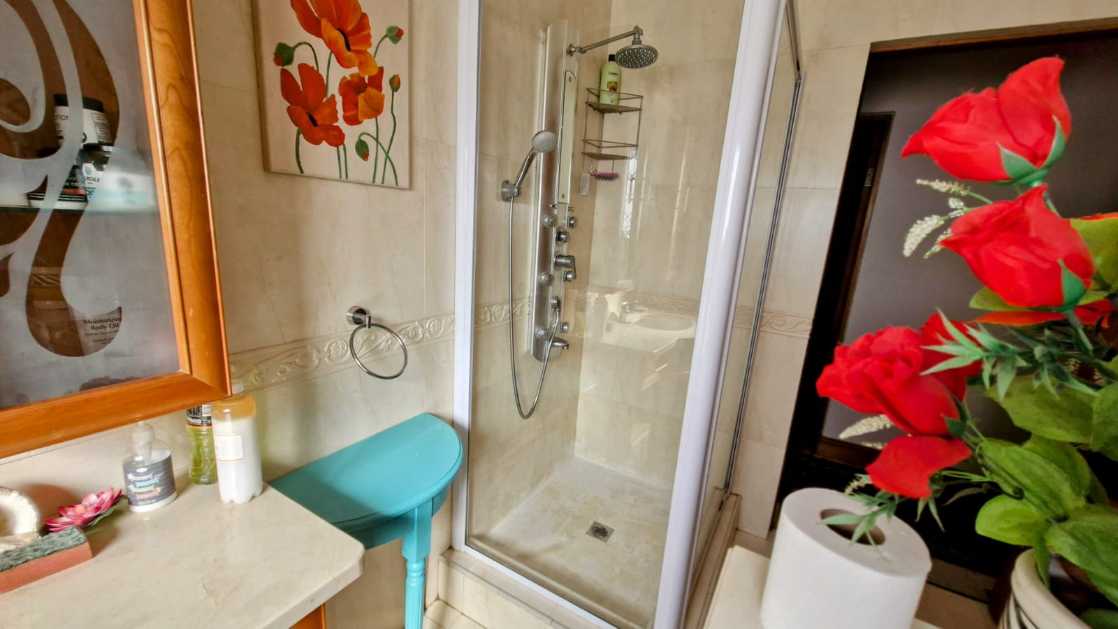 Bright and spacious south-facing open-plan living area, including a dining room and spacious modern kitchen that features ample cupboard space and a separate scullery. Spacious lounge area. Dining and Lounge opens up to the spacious balcony.