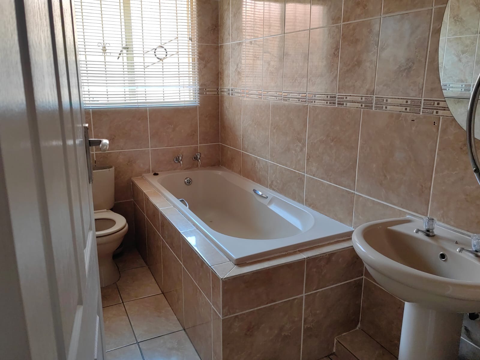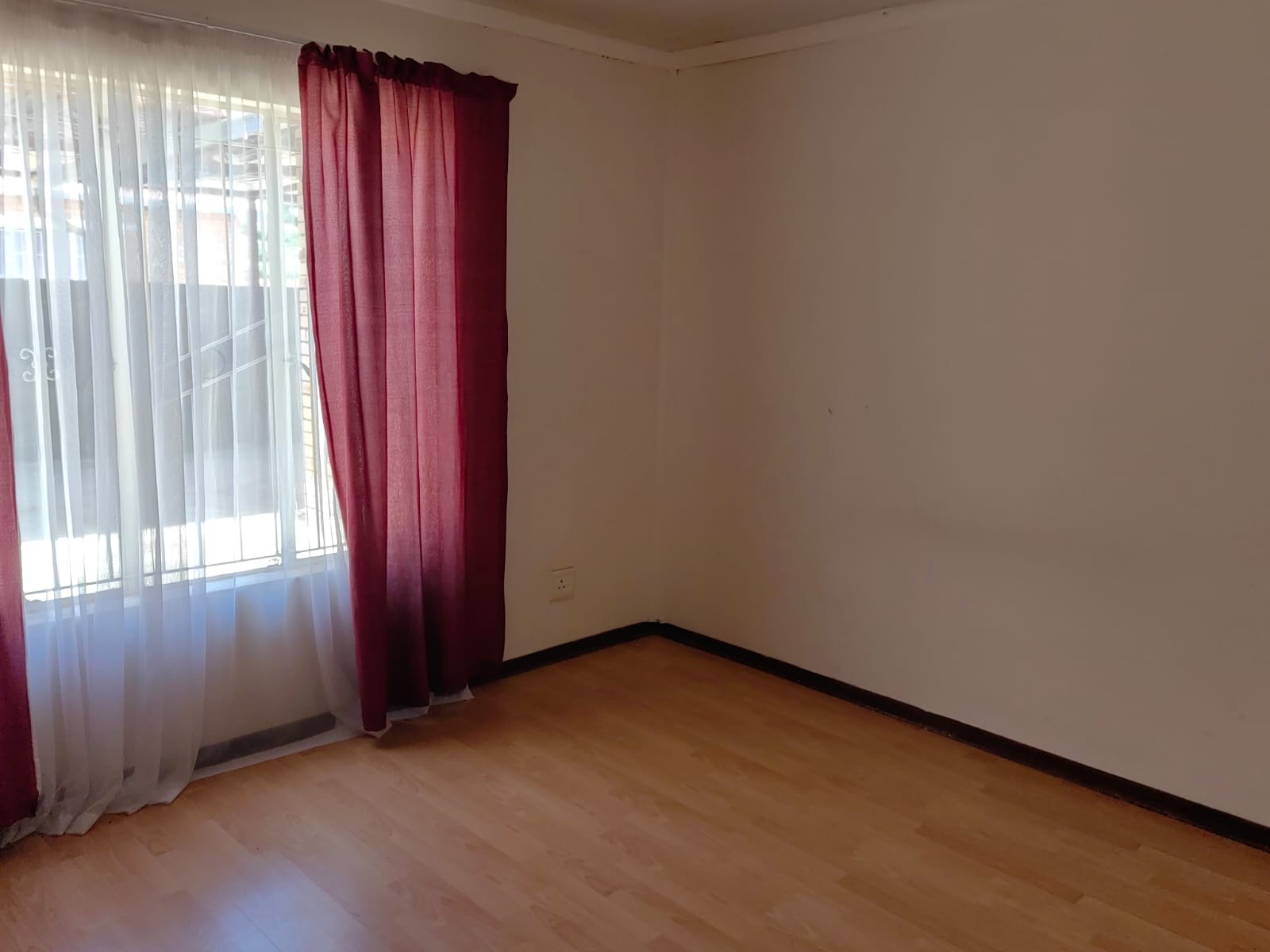 The main house is a beautiful face-brick with 4 spacious bedrooms; with the main bedroom consisting of a bathroom with a shower, the other 3 bedrooms share a full bathroom with a bathtub. There’s an open-plan spacious lounge and dining area connected to the beautiful kitchen with built-in units and an electric stove. The house has a single garage connected to the outside laundry which is connected to an extra room that can be used as a home office or rental room for extra income. There’s also a covered Braai area for entertaining guests. The electricity is prepaid. The house is fully fenced with a beautiful face-brick wall in front. The house also has an alarm system for your peace of mind. Overall this modern gem offers true value for your money.