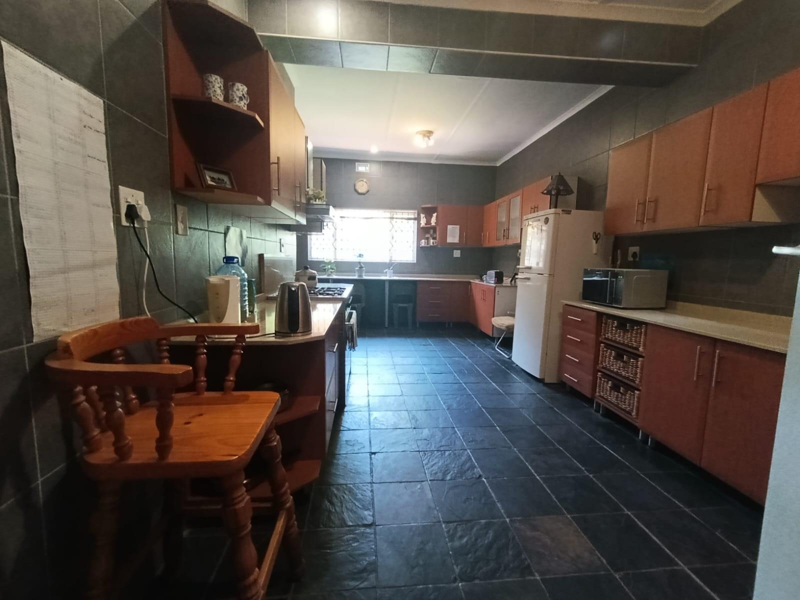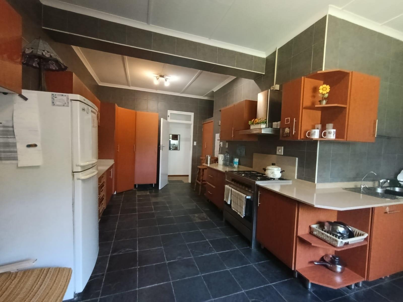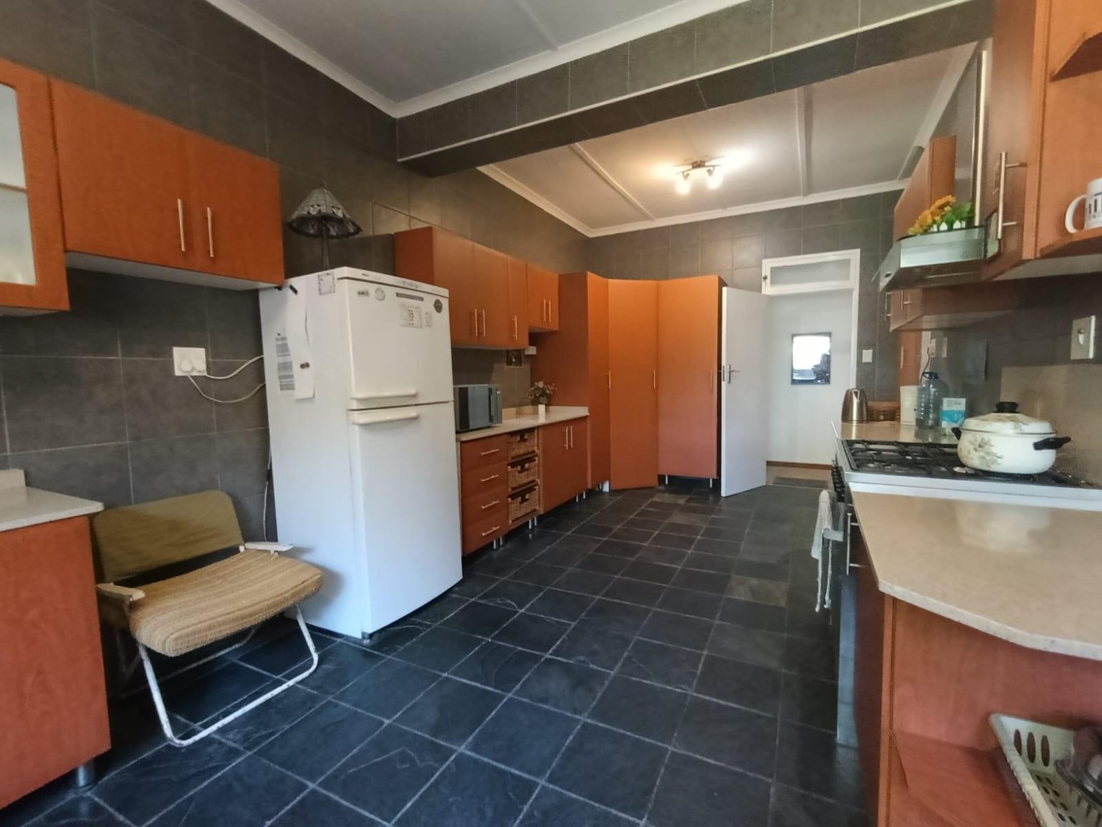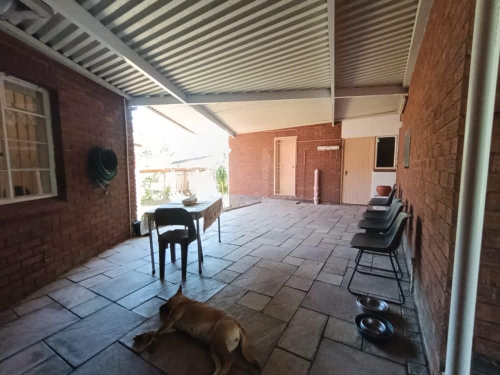 The main bedroom is a true retreat, boasting a walk-in closet and a private en-suite bathroom. Outside, a covered patio provides the perfect spot to relax or host weekend braais. Additional features include domestic quarters and three garages, offering ample space and convenience.