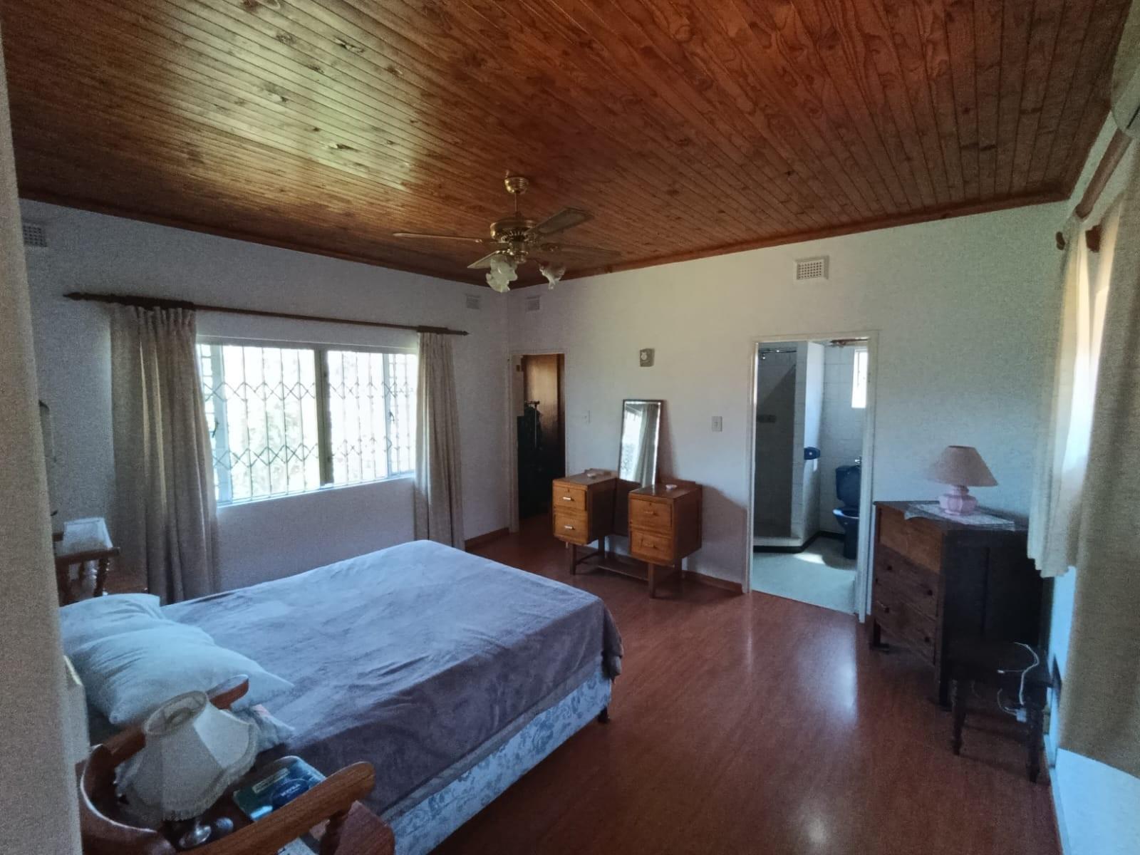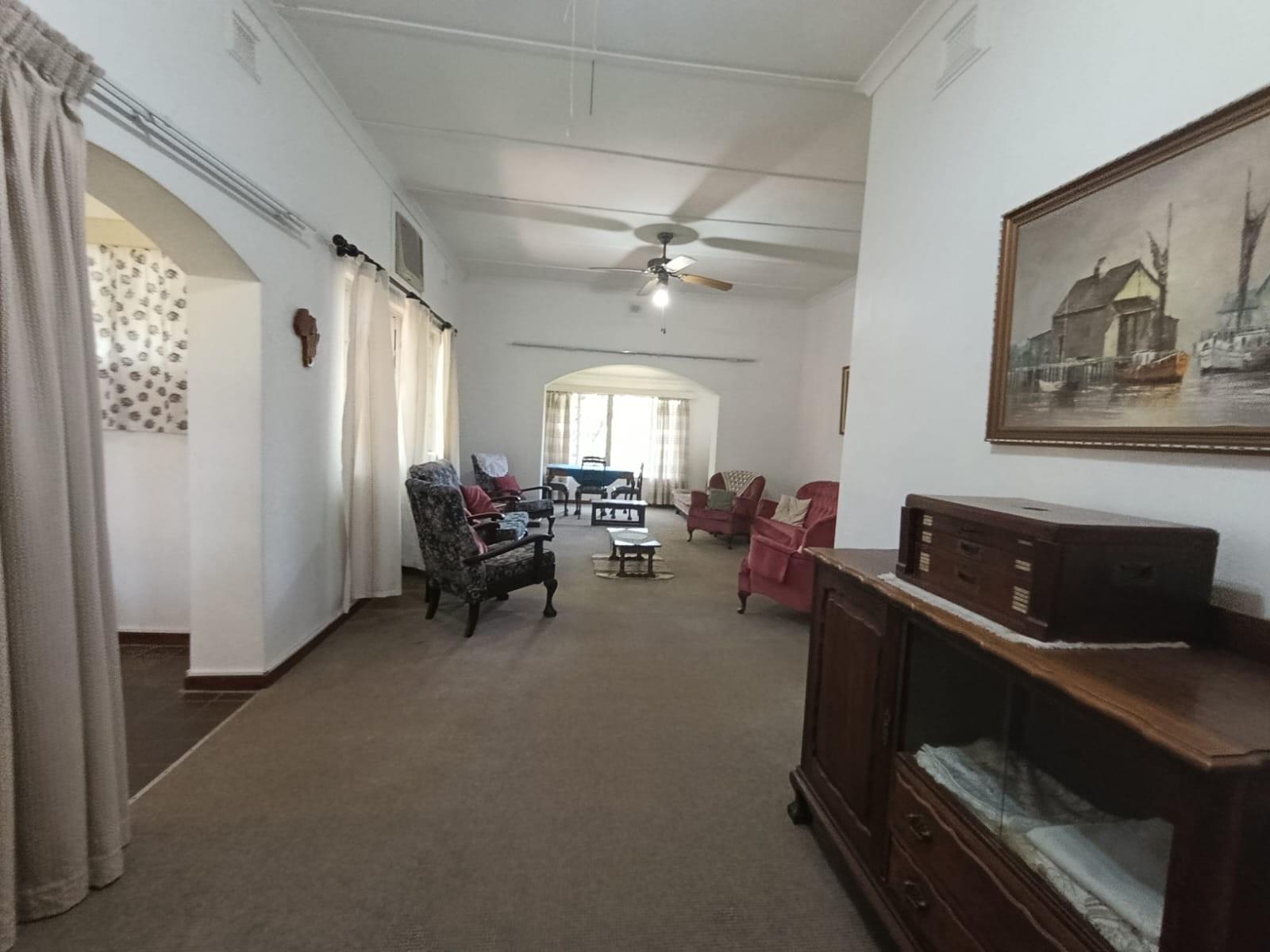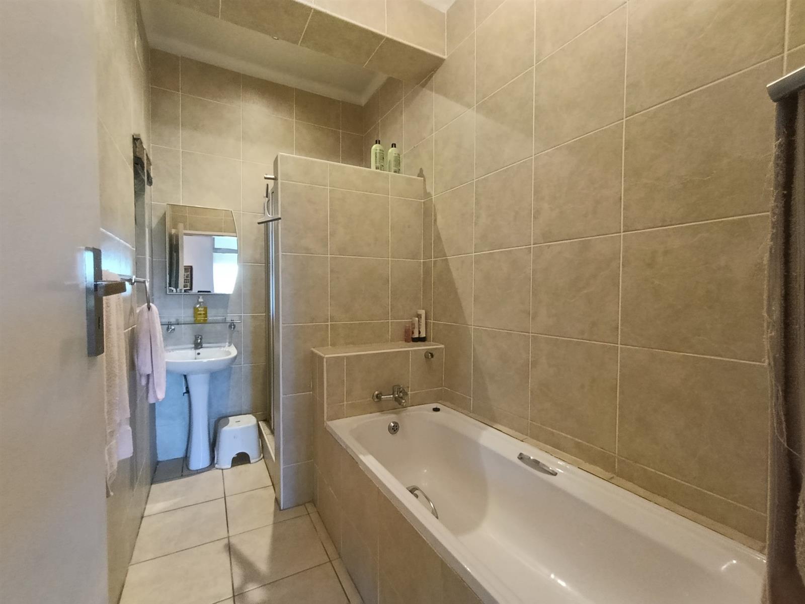 The main bedroom is a true retreat, boasting a walk-in closet and a private en-suite bathroom. Outside, a covered patio provides the perfect spot to relax or host weekend braais. Additional features include domestic quarters and three garages, offering ample space and convenience.
