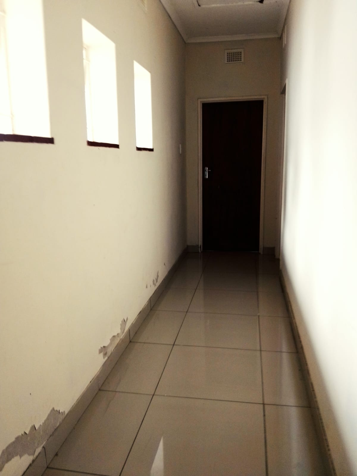 Very large back yard with an out building and fruit trees , This large erf is well burglar guarded and is currently part of the larger security patrolled , single garage and laundry room .