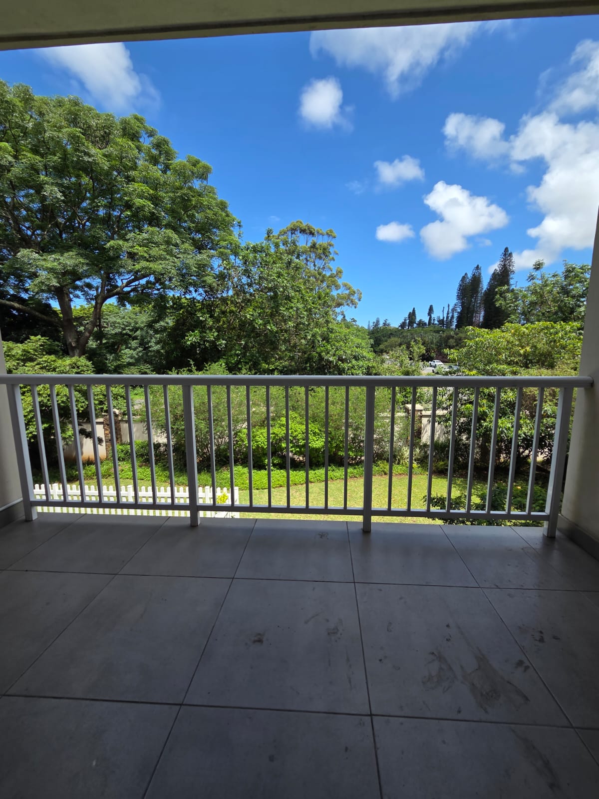 Large sliding doors open to a generous balcony overlooking lush greenery — your ideal morning coffee or sunset spot.