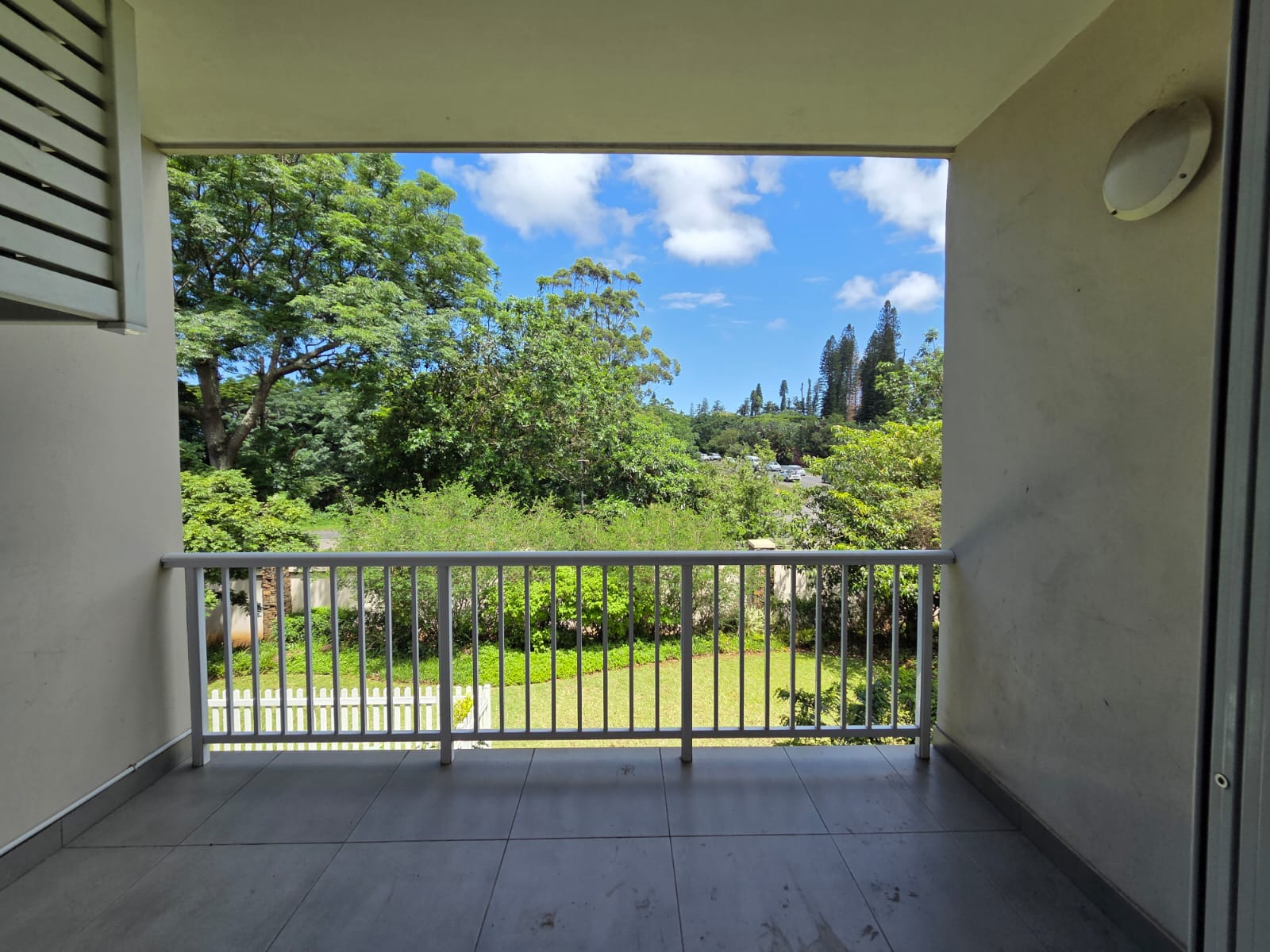Large sliding doors open onto a generous balcony overlooking lush greenery—an inviting spot for morning coffee or evening sundowners.