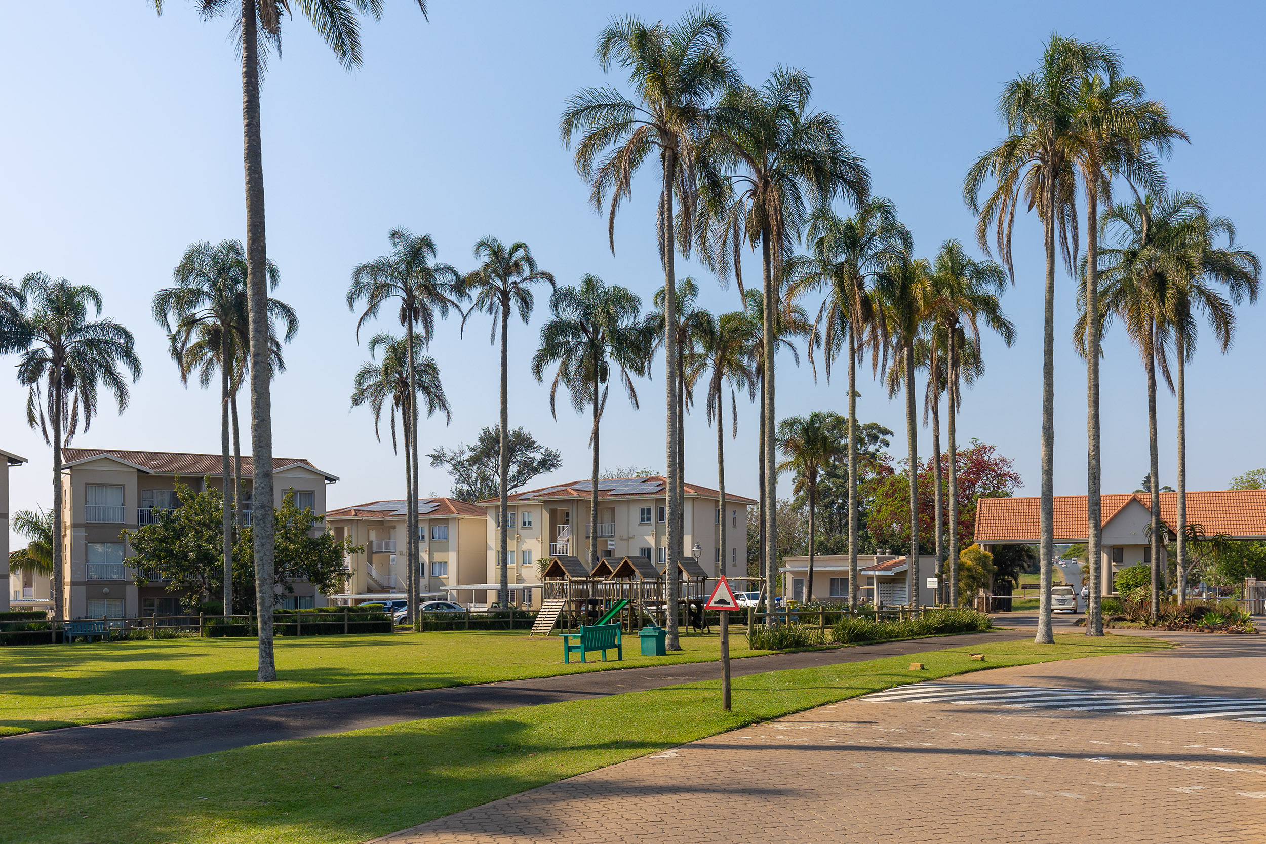 The estate has 24-hour security, a communal swimming pool, kids' play area, braai and picnic spots, and peaceful walking paths through landscaped gardens.