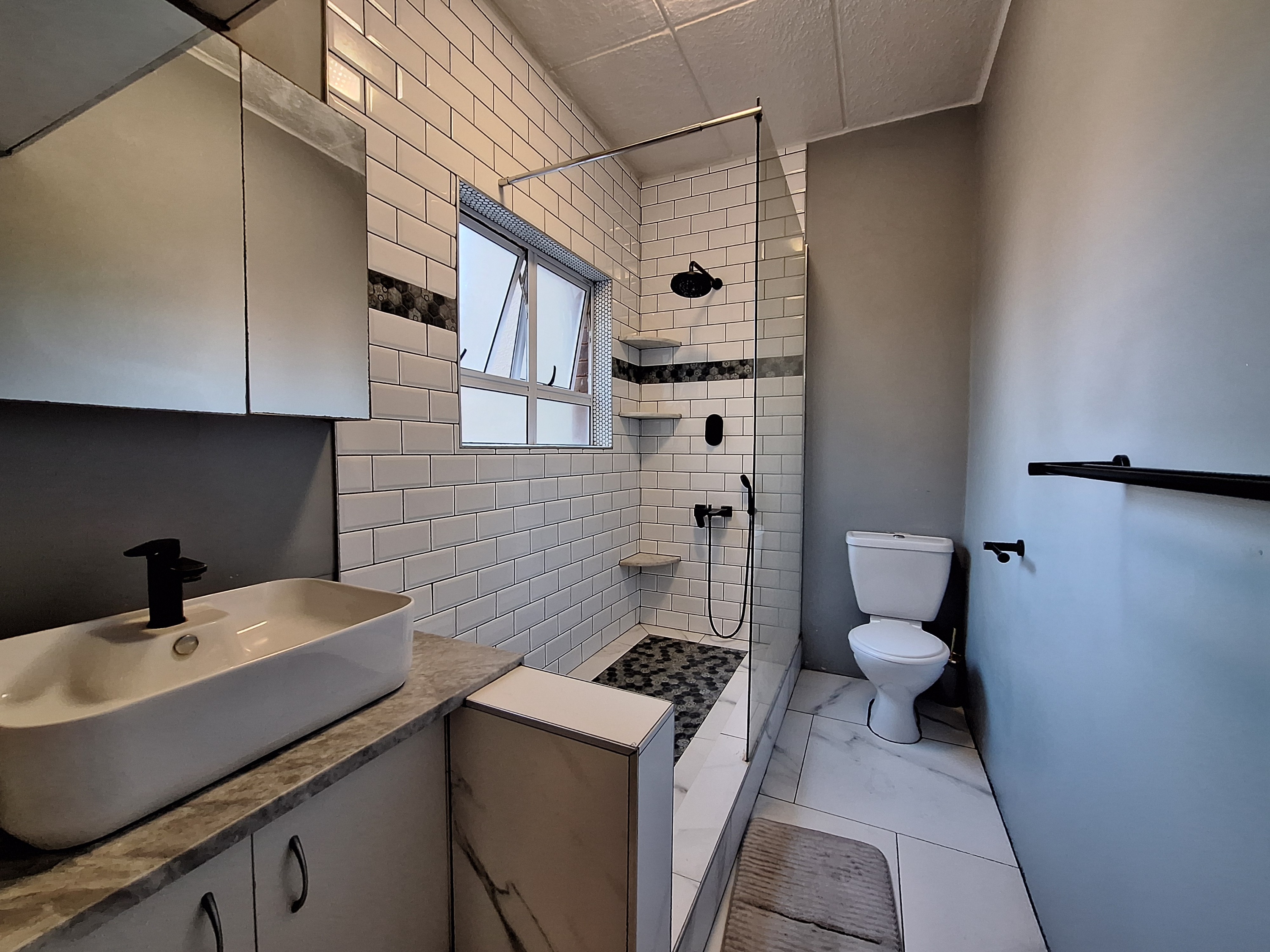 The generously sized bedroom features plenty of built in cupboards and extends into versatile half room. A neatly designed en-suite bathroom includes a shower.