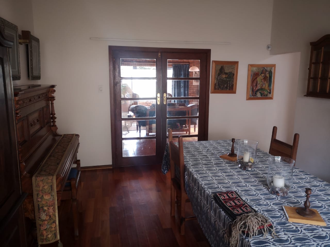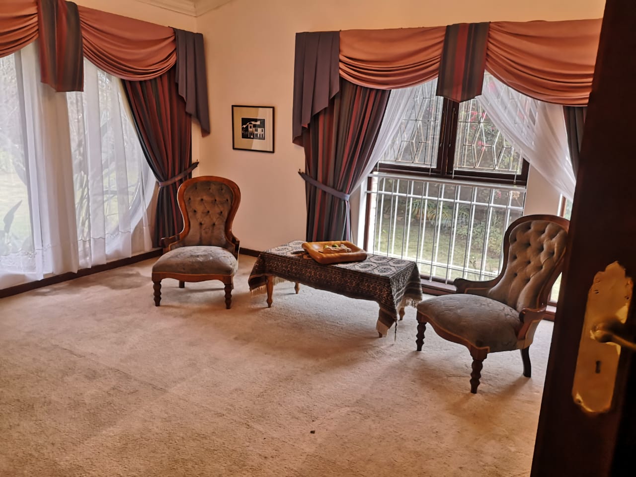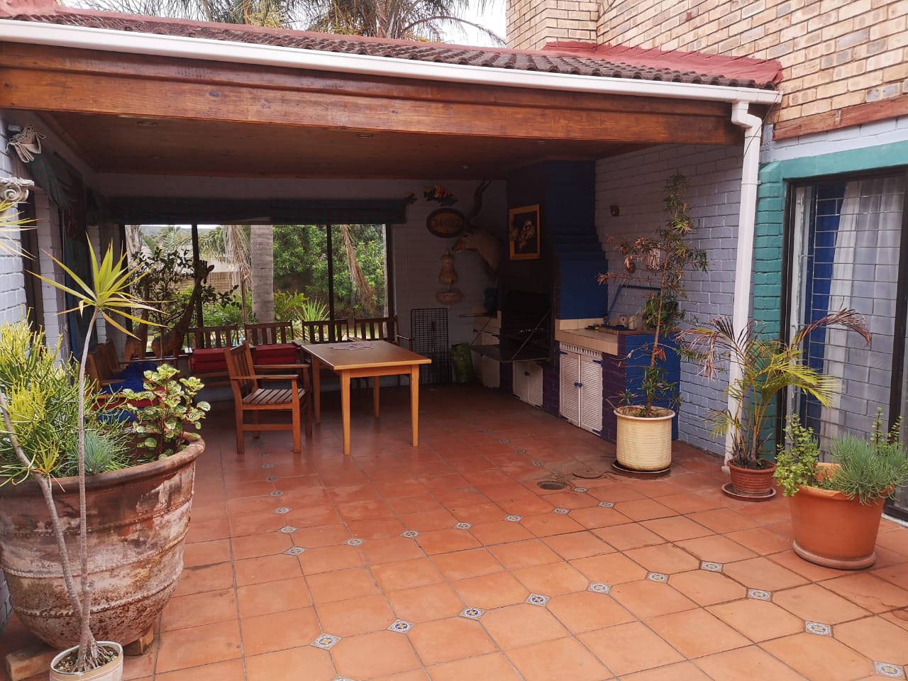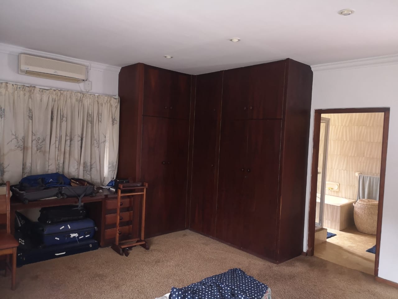 The formal lounge overlooks the lush garden, providing a refined space to welcome guests. For more casual gatherings, the expansive family room with air conditioning opens through sliding doors to a covered courtyard with a built-in braai, perfect for hosting unforgettable celebrations.
