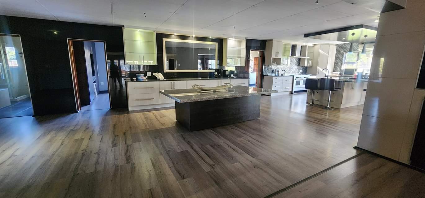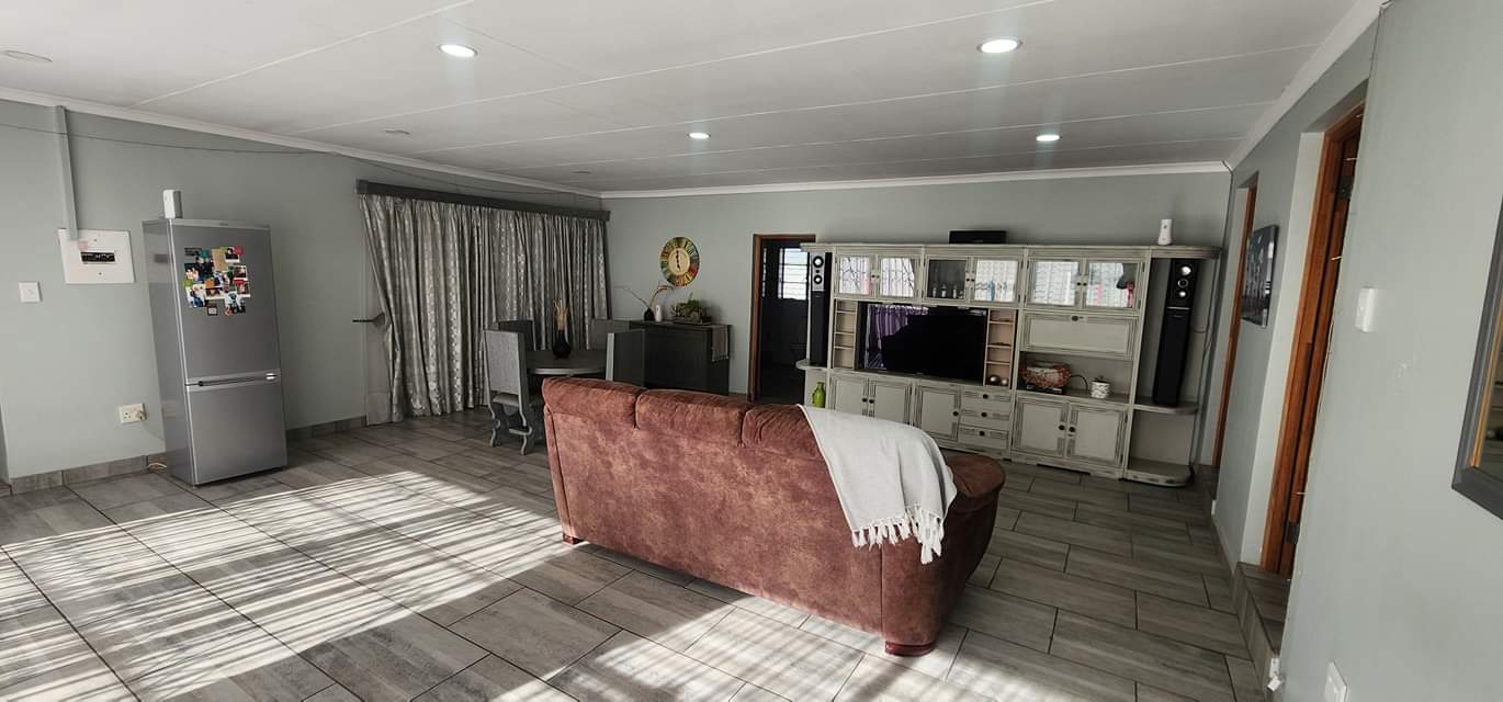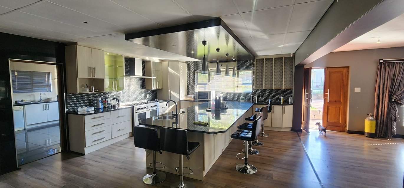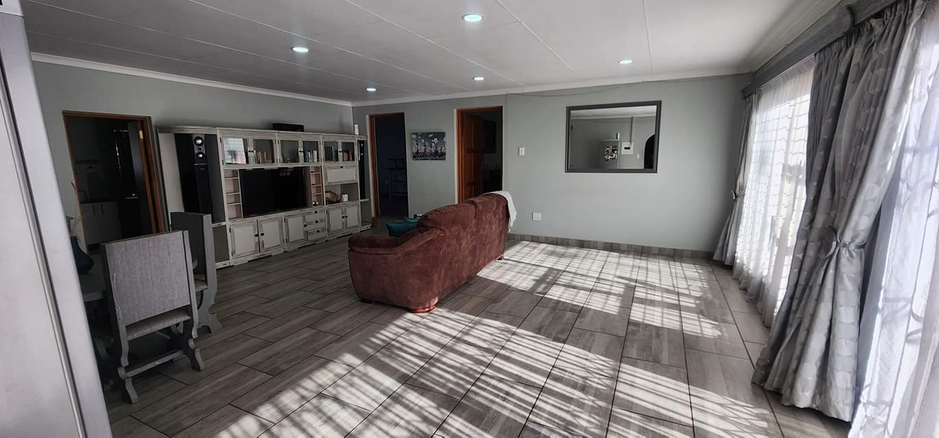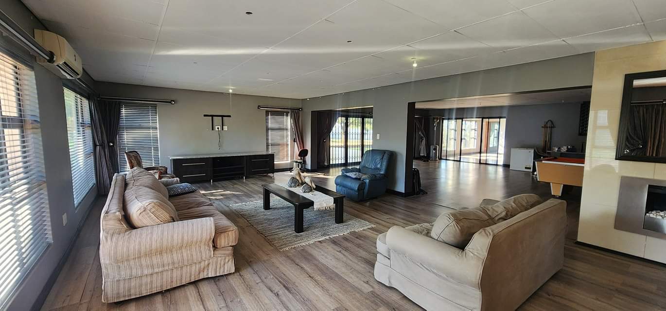 Big open plan lounge, dining room and entertainment area with built-in in braai.