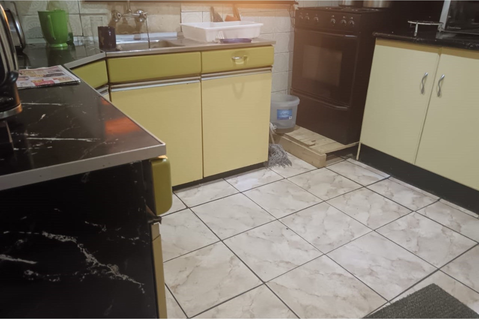 - Kitchen with built-in cupboards