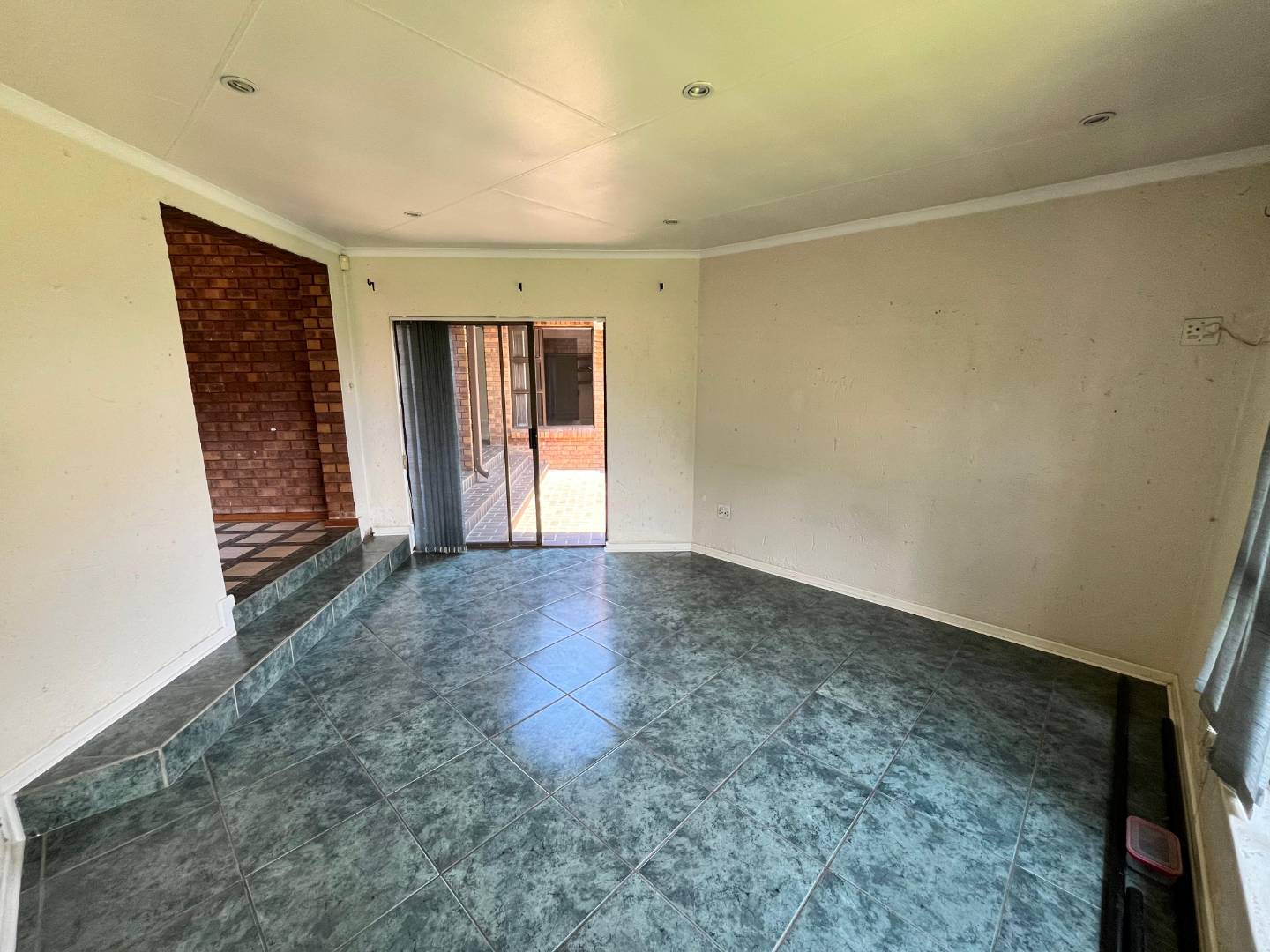 The interior boasts a spacious and functional layout, featuring a welcoming lounge and a dedicated dining room, both adorned with neutral walls and easy-to-maintain tiled flooring. Recessed lighting enhances the ambiance, while sliding doors seamlessly connect the indoor living spaces to the expansive outdoor areas, promoting an effortless indoor-outdoor lifestyle. The well-appointed kitchen is ready to cater to all culinary needs.