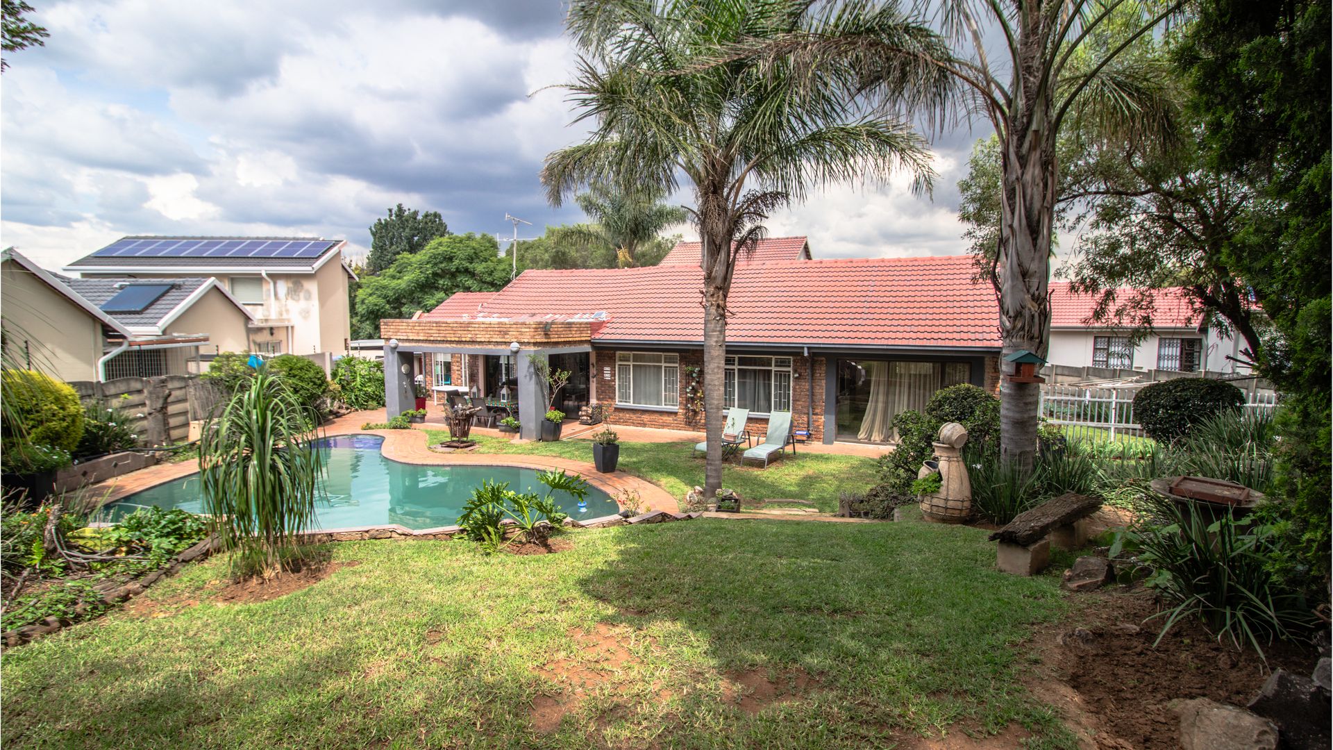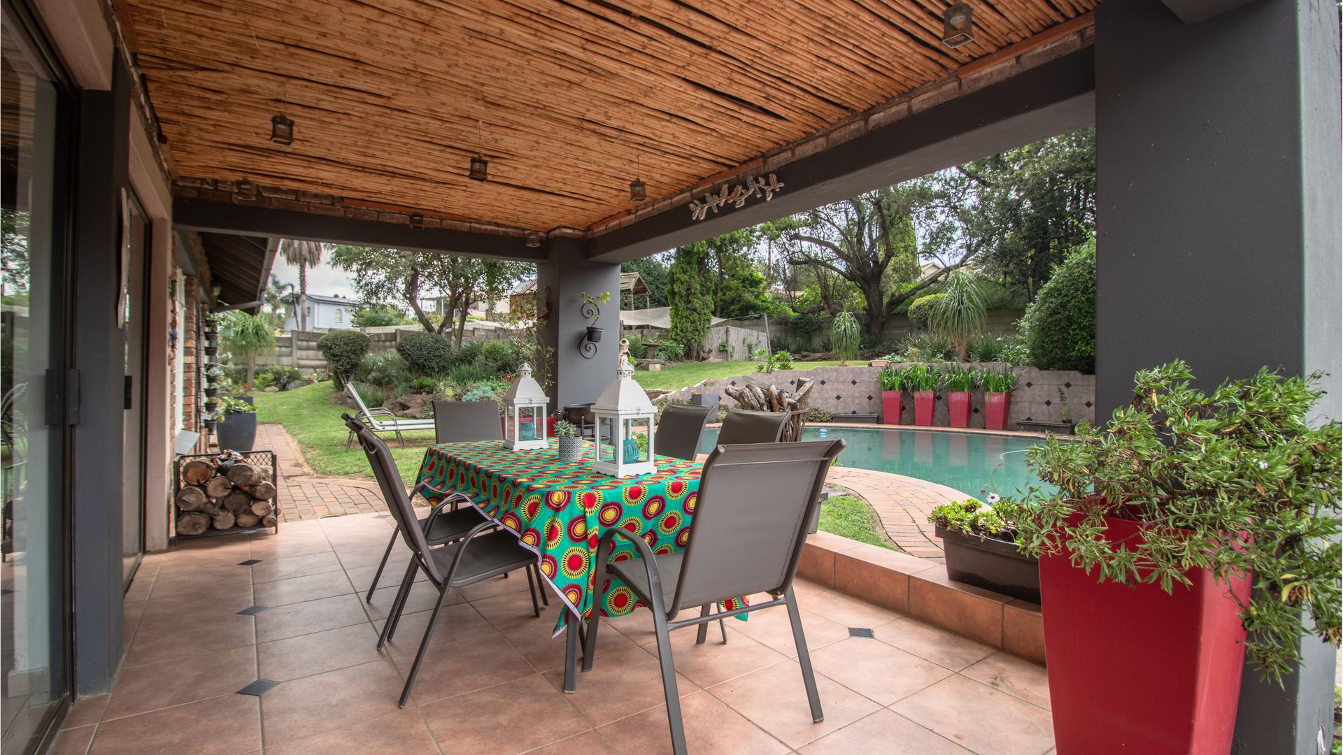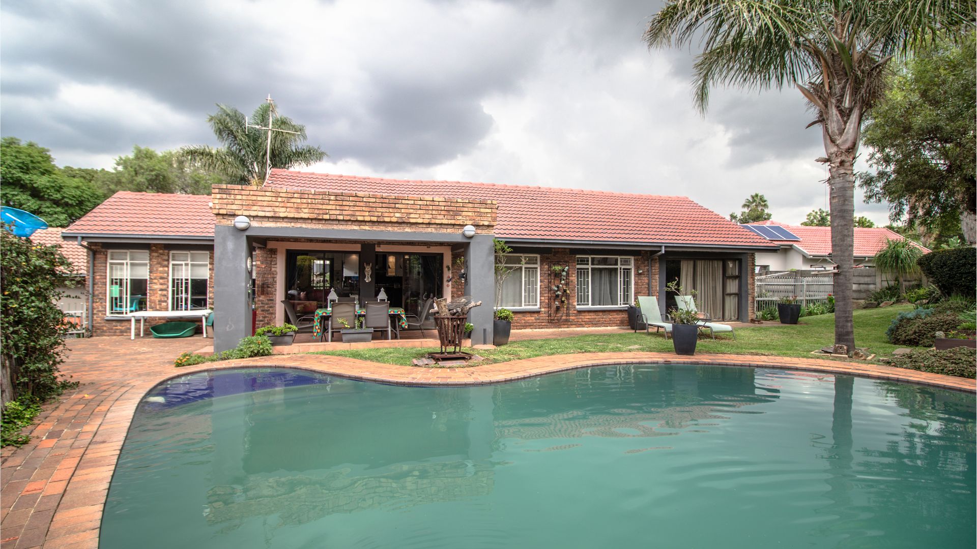 The outdoor areas are a true highlight, designed for ultimate enjoyment. A lush, manicured garden surrounds a sparkling swimming pool, while a covered entertainment area invites elegant alfresco dining or lively weekend braais. This prestigious property is further enhanced by a double garage, a standby generator for uninterrupted living, and the peace of mind offered by a well-established, access-controlled community.
