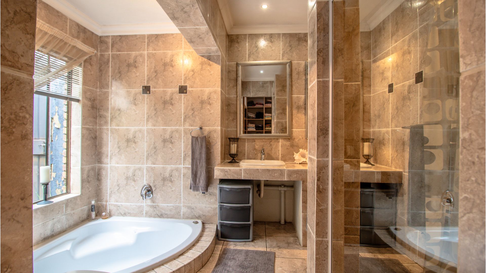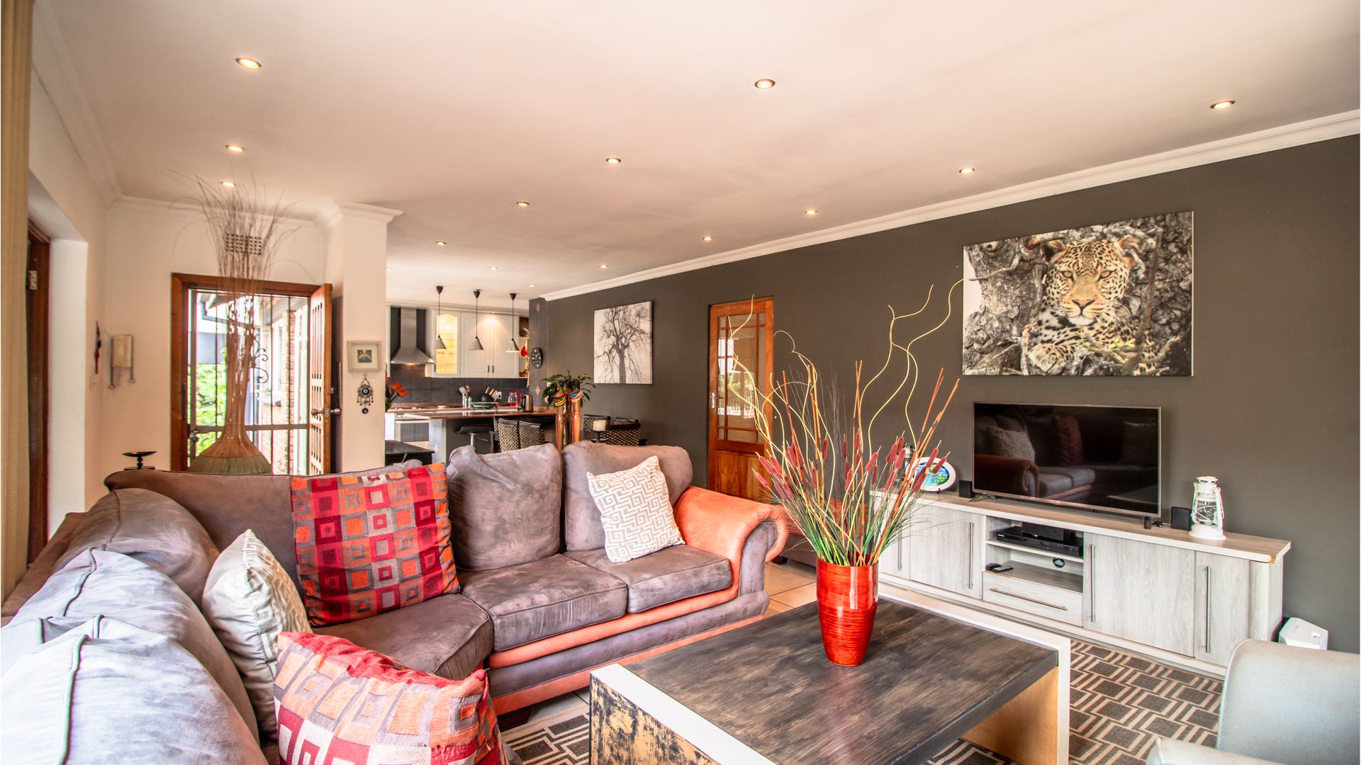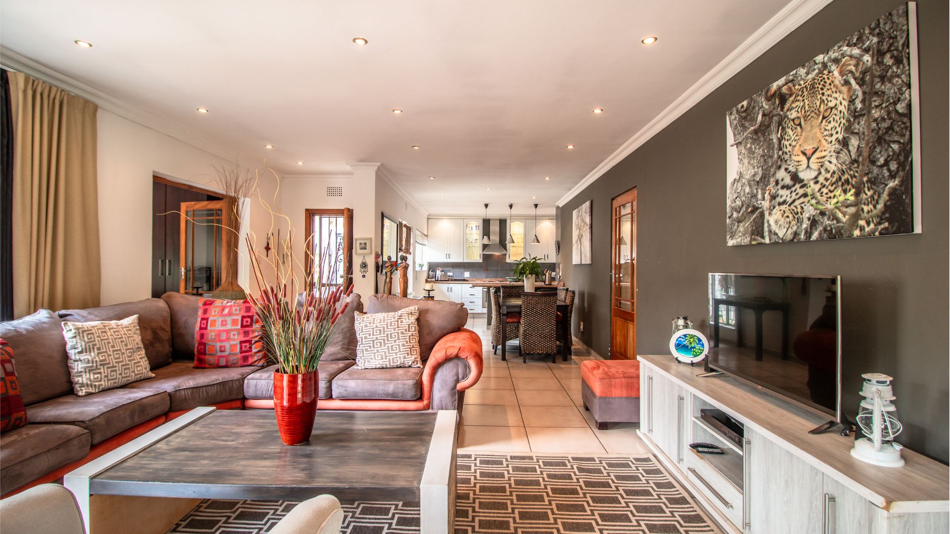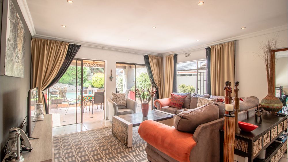 The outdoor areas are a true highlight, designed for ultimate enjoyment. A lush, manicured garden surrounds a sparkling swimming pool, while a covered entertainment area invites elegant alfresco dining or lively weekend braais. This prestigious property is further enhanced by a double garage, a standby generator for uninterrupted living, and the peace of mind offered by a well-established, access-controlled community.