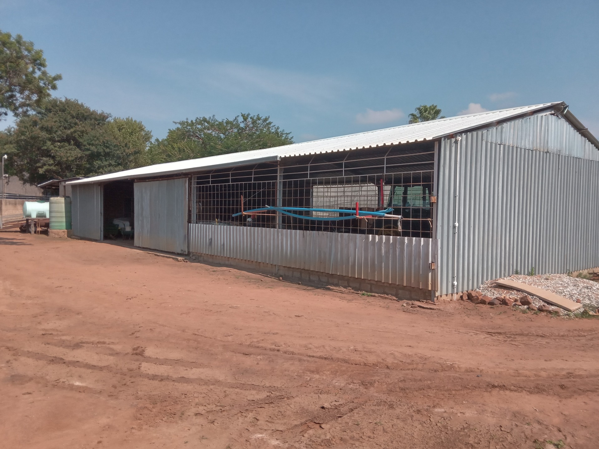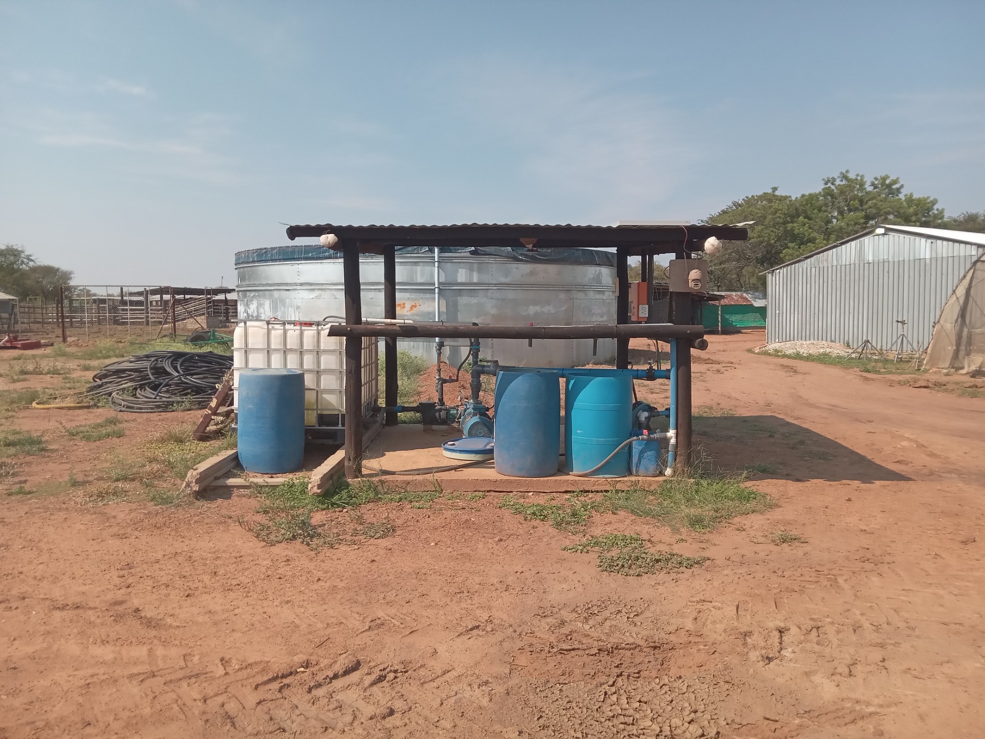 Cattle pen with working facilities. 230 000lt zinc reservoir with pump room. IBR Storing 22m x 9m.