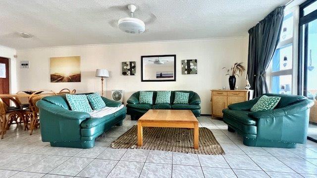 The spacious master bedroom features its own en-suite bathroom and direct access to the balcony with stunning sea views. The apartment also includes a built-in sunroom that flows out to the balcony, perfect for enjoying the coastal breeze. The open plan living and dining area seamlessly leads into the kitchen, creating a bright and airy space for entertaining.