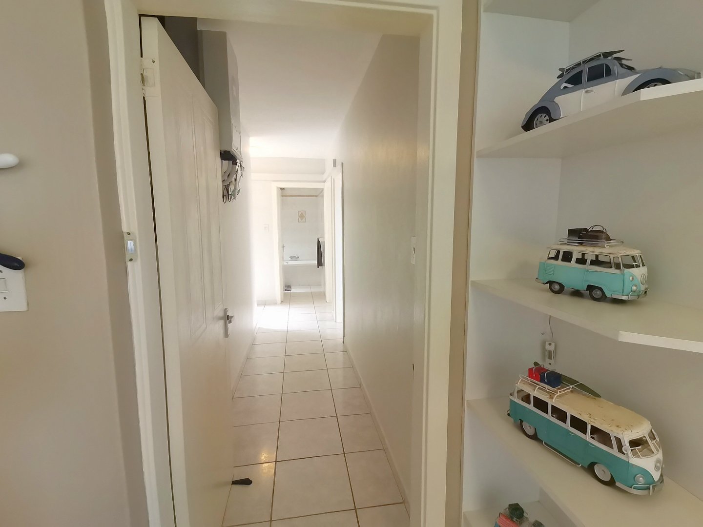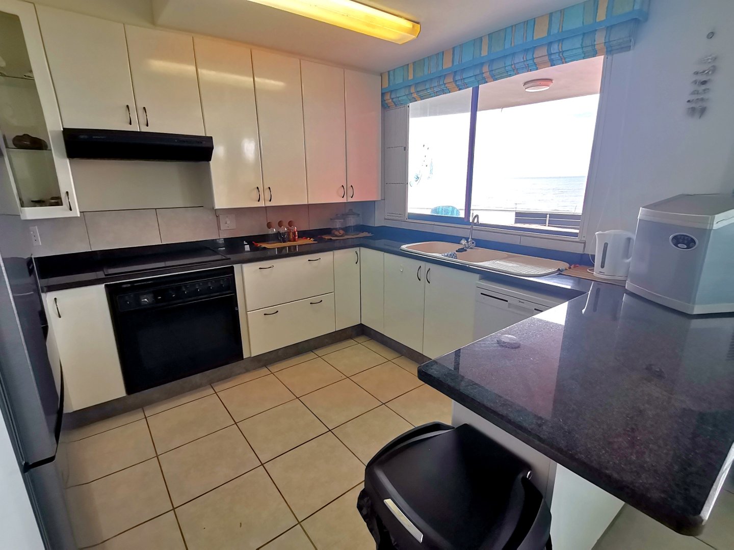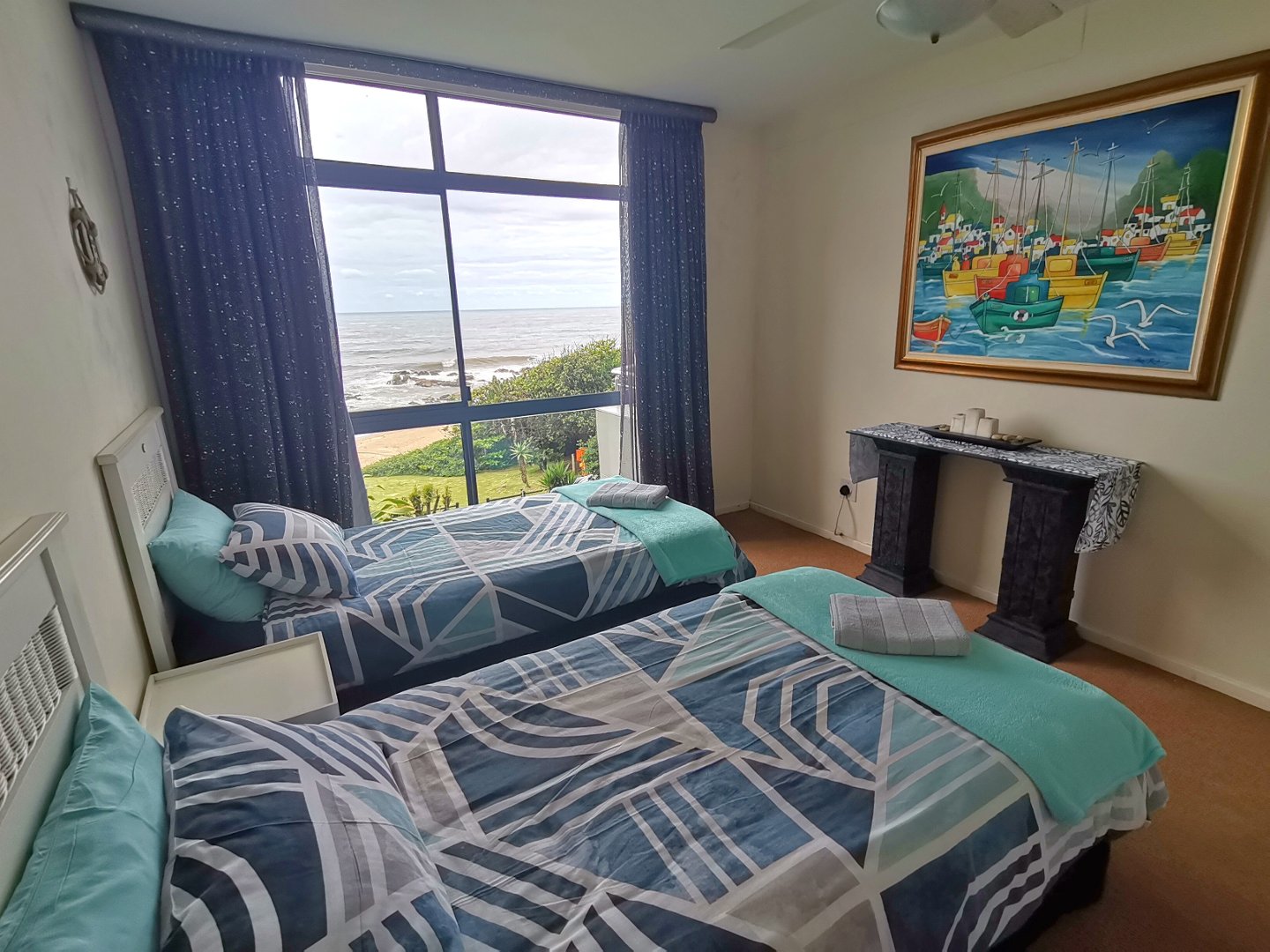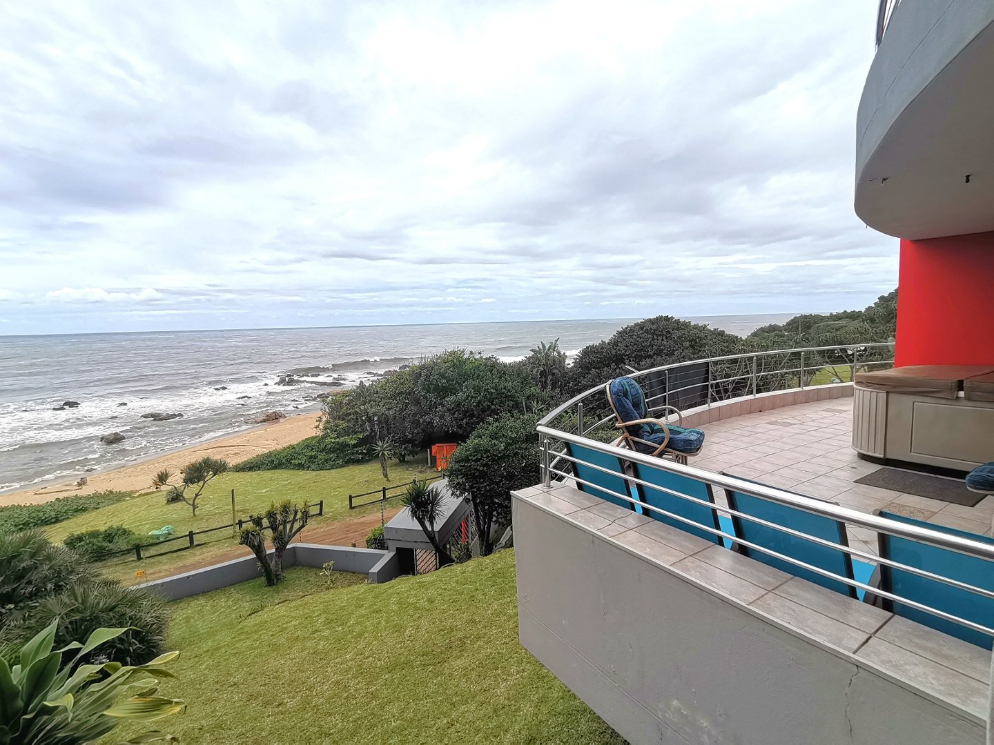 Let the Jones' envy you when you buy this gorgeous unit. Take a walk through the unit with me. When entering the complex the single garage greets you - with an interleading door into the spacious entrance hall and a store room. The steps leading to the first floor is inviting and the sea view and open plan space will take your breath away. Lets start on the right first. Walking through the lounge towards the main bedroom. The main bedroom is spacious with it's own full bathroom and flows out onto the balcony with spectacular sea views. The lounge flows out onto the balcony and the dining room is next to the kitchen, with granite tops and electrical top and oven - the glass sliding windows gives you un-interrupted sea views from anywhere inside the unit. Down the corridor - the invertor is mounted on the wall - so loadshedding will be a breeze. The second bedroom is to the right with access to the balcony (bonus is the jacuzzi), the third bedroom is situated next door with sliding glass windows - the family bathroom has a bath. The small entrance hall that leads out to the court yard with a Jojo tank, has space for a washing machine. All I can say is ... this is a gorgeous unit and because you are not in Margate central where the noise and activities are - you can enjoy breakfast at sunrise on the balcony and you are still close enough to shops, schools and the beach.
