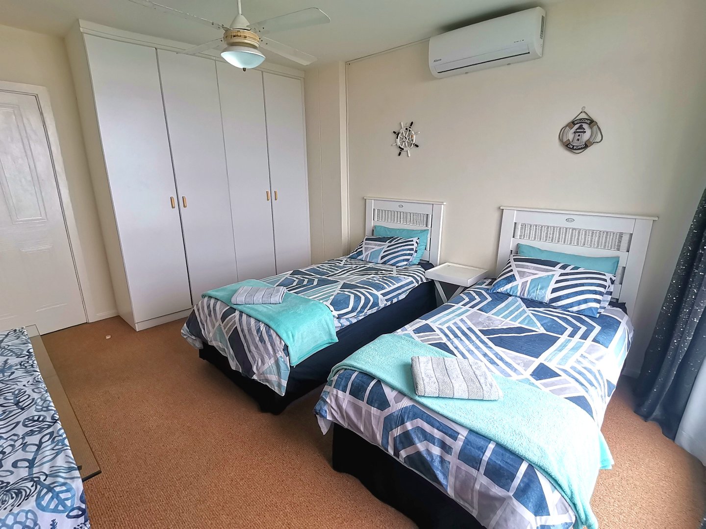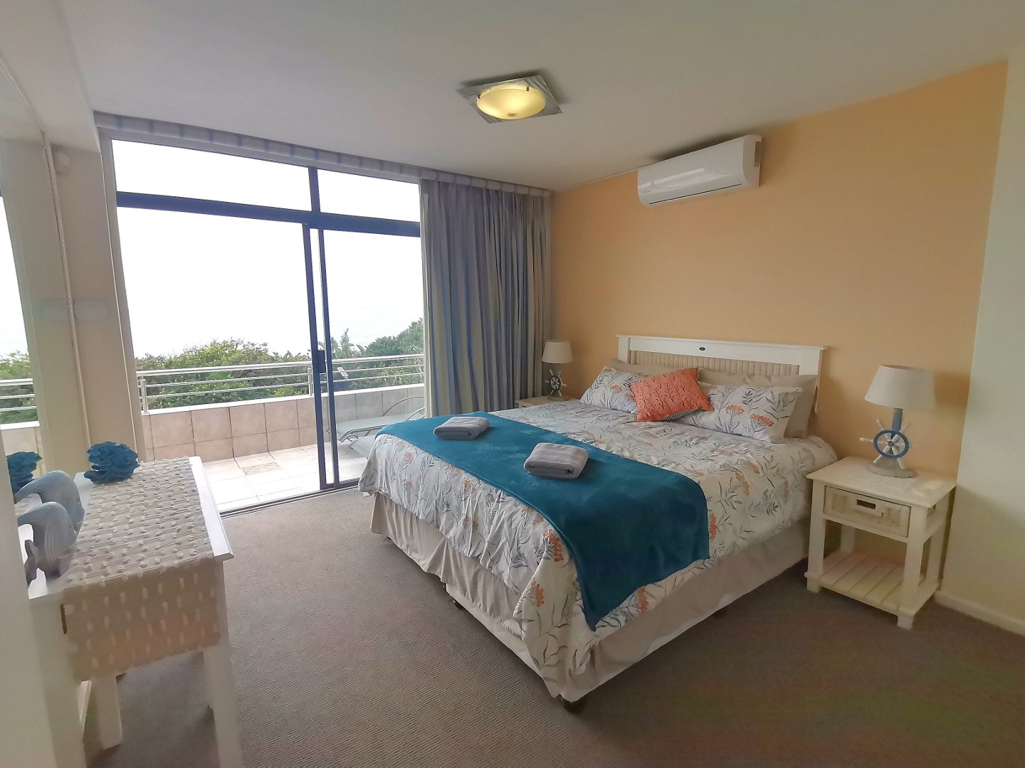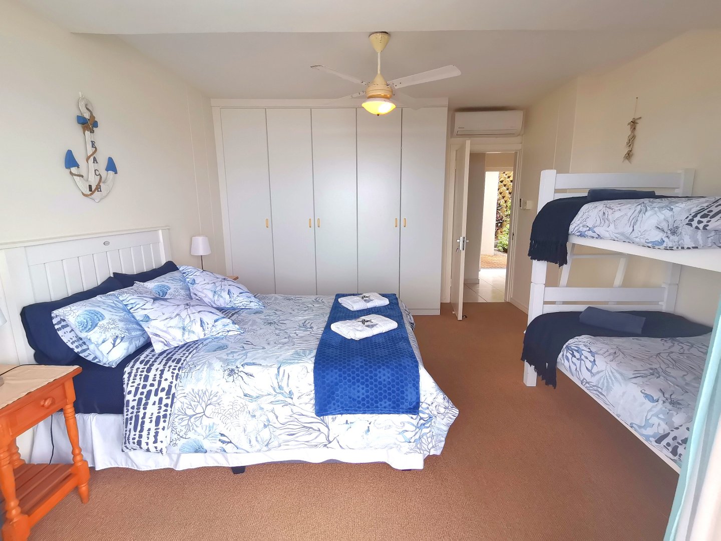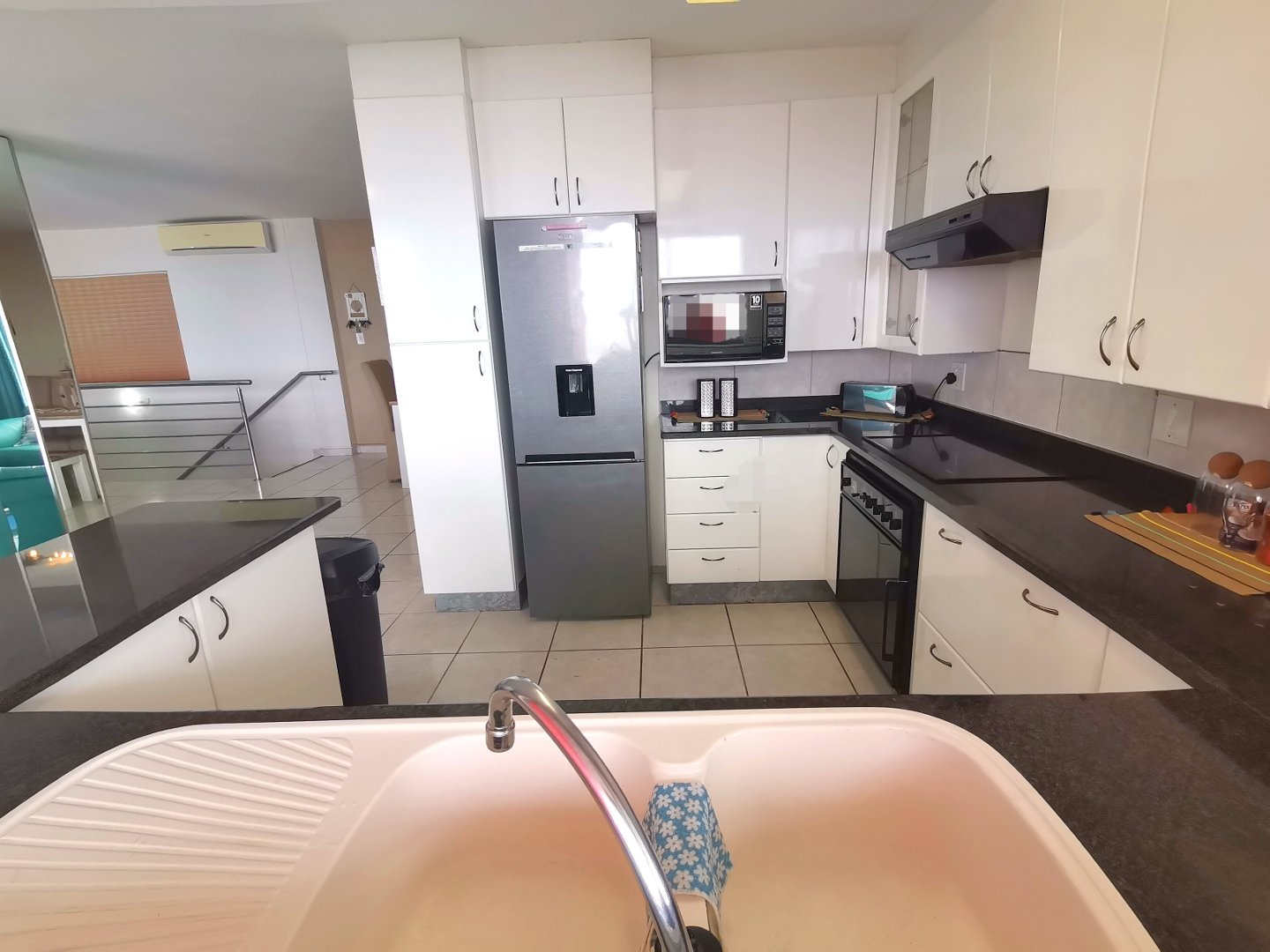 Let the Jones' envy you when you buy this gorgeous unit. Take a walk through the unit with me. When entering the complex the single garage greets you - with an interleading door into the spacious entrance hall and a store room. The steps leading to the first floor is inviting and the sea view and open plan space will take your breath away. Lets start on the right first. Walking through the lounge towards the main bedroom. The main bedroom is spacious with it's own full bathroom and flows out onto the balcony with spectacular sea views. The lounge flows out onto the balcony and the dining room is next to the kitchen, with granite tops and electrical top and oven - the glass sliding windows gives you un-interrupted sea views from anywhere inside the unit. Down the corridor - the invertor is mounted on the wall - so loadshedding will be a breeze. The second bedroom is to the right with access to the balcony (bonus is the jacuzzi), the third bedroom is situated next door with sliding glass windows - the family bathroom has a bath. The small entrance hall that leads out to the court yard with a Jojo tank, has space for a washing machine. All I can say is ... this is a gorgeous unit and because you are not in Margate central where the noise and activities are - you can enjoy breakfast at sunrise on the balcony and you are still close enough to shops, schools and the beach.
