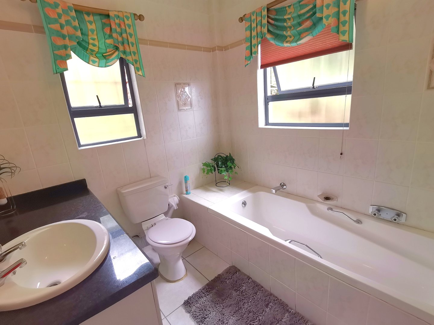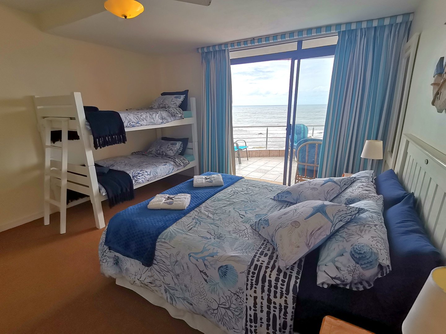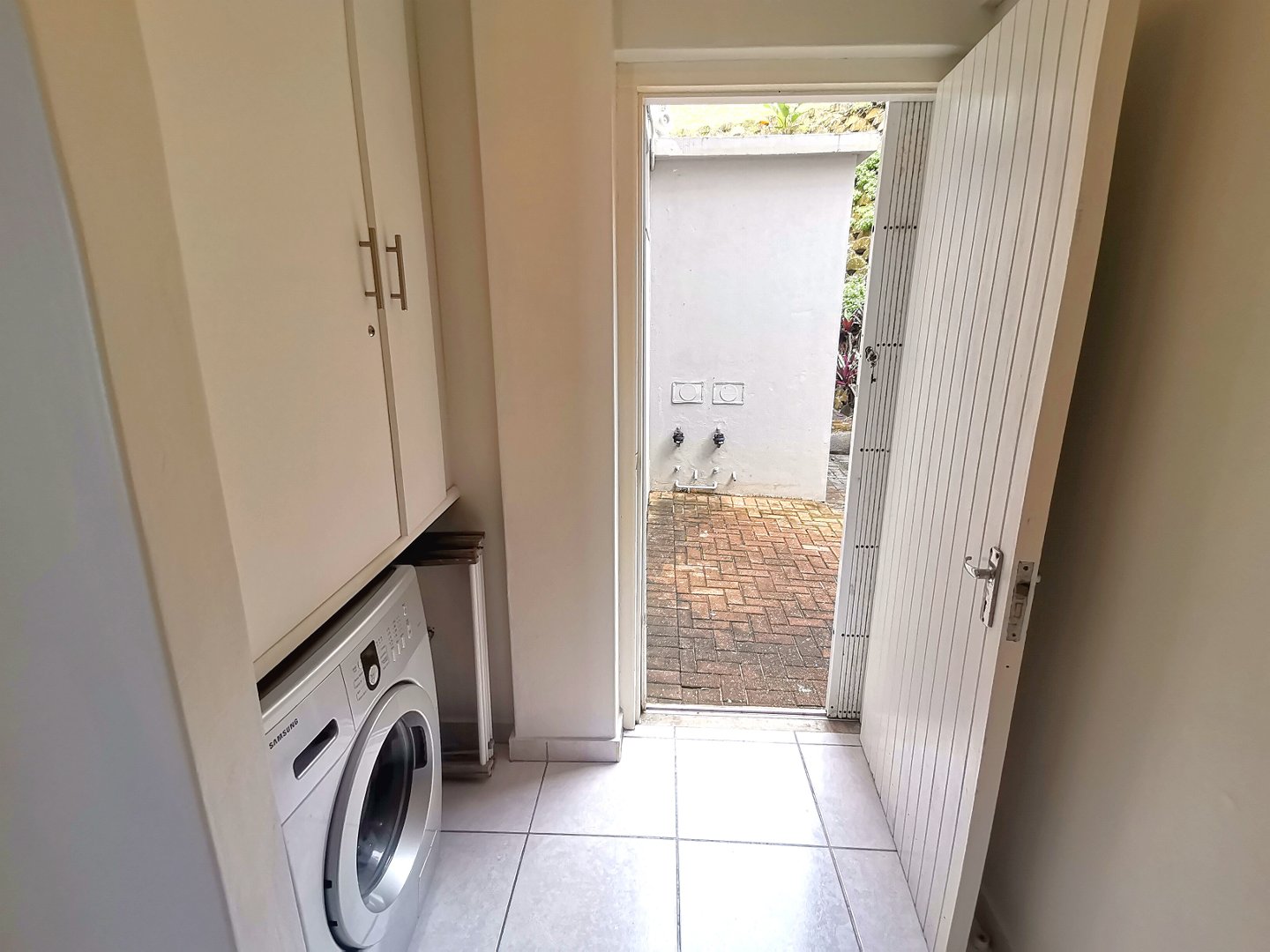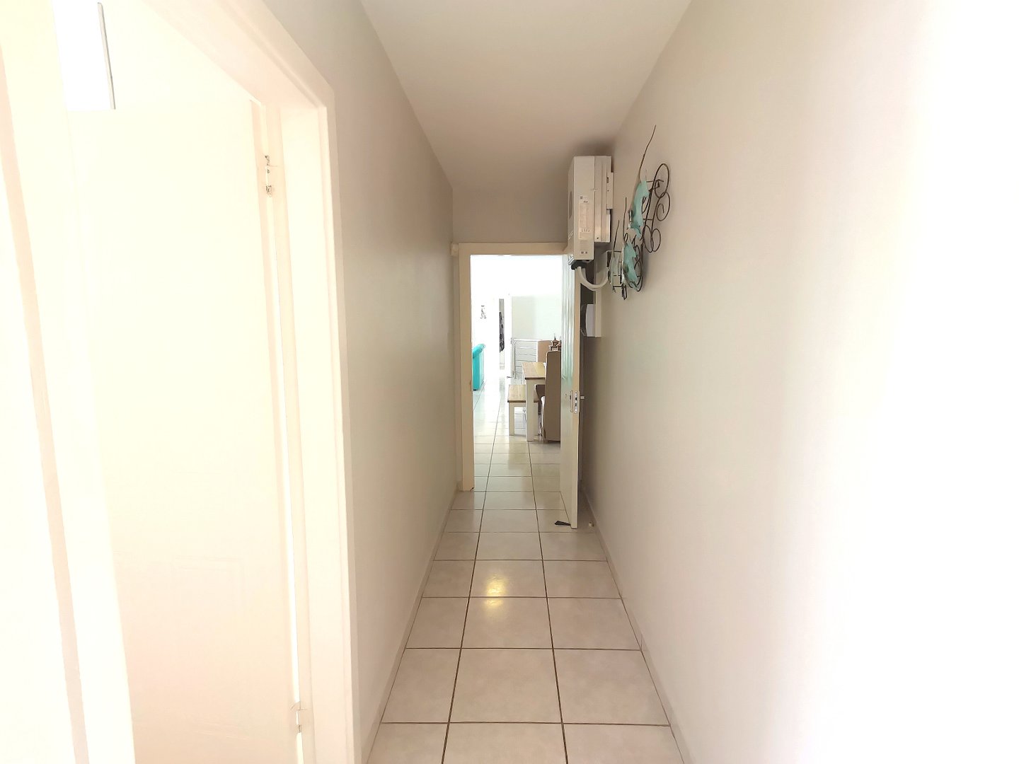 Let the Jones' envy you when you buy this gorgeous unit. Take a walk through the unit with me. When entering the complex the single garage greets you - with an interleading door into the spacious entrance hall and a store room. The steps leading to the first floor is inviting and the sea view and open plan space will take your breath away. Lets start on the right first. Walking through the lounge towards the main bedroom. The main bedroom is spacious with it's own full bathroom and flows out onto the balcony with spectacular sea views. The lounge flows out onto the balcony and the dining room is next to the kitchen, with granite tops and electrical top and oven - the glass sliding windows gives you un-interrupted sea views from anywhere inside the unit. Down the corridor - the invertor is mounted on the wall - so loadshedding will be a breeze. The second bedroom is to the right with access to the balcony (bonus is the jacuzzi), the third bedroom is situated next door with sliding glass windows - the family bathroom has a bath. The small entrance hall that leads out to the court yard with a Jojo tank, has space for a washing machine. All I can say is ... this is a gorgeous unit and because you are not in Margate central where the noise and activities are - you can enjoy breakfast at sunrise on the balcony and you are still close enough to shops, schools and the beach.