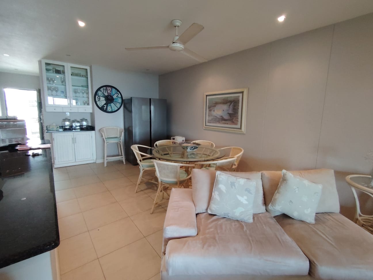 From the moment you enter this apartment, you're greeted with a sense of space and tranquillity. The open-plan living and dining area flows seamlessly onto a generously sized balcony where you can enjoy uninterrupted, panoramic sea views – the kind that truly takes your breath away. Whether you're hosting friends for a braai, enjoying a quiet morning coffee, or simply soaking up the sun, this balcony becomes an extension of your living space and your window to the ever-changing beauty of the ocean.