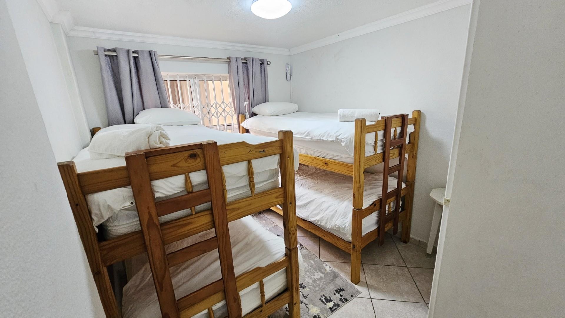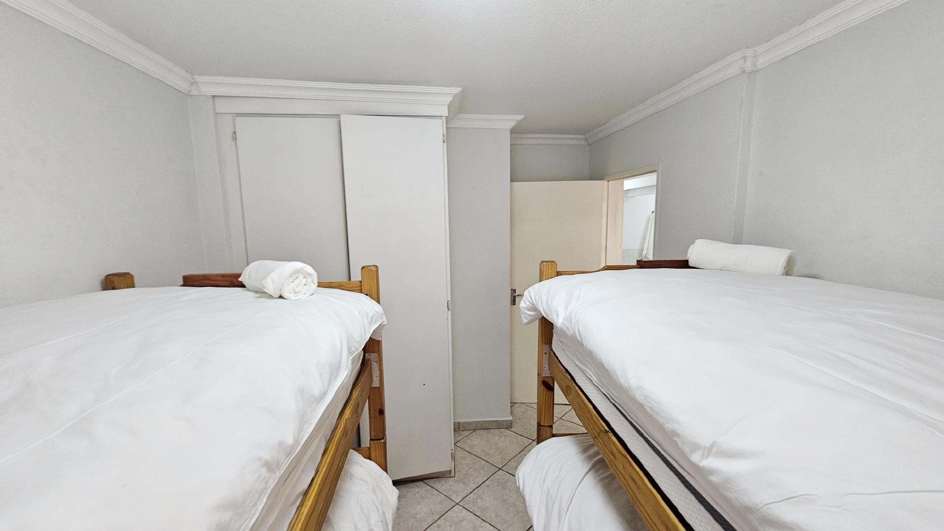 A short stroll down the passage leads to the bedrooms, with the main bedroom to your left, with its own patio access, wardrobe space and ultra modern ensuite bathroom. Further down the passage you are greeted by two more bedrooms, with ample wardrobe space. The second bedroom is currently fitted with a double bed while the third bedroom consists of two double bunks which allows this unit to accommodate 8 guests. These two bedrooms share a second bathroom.