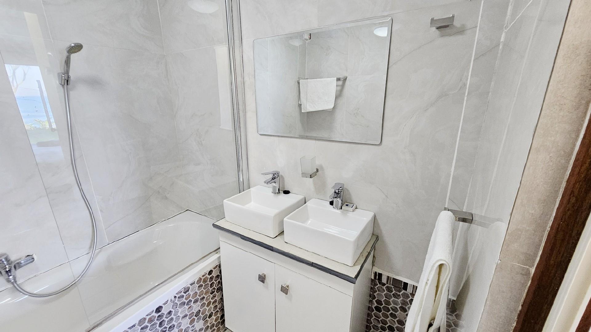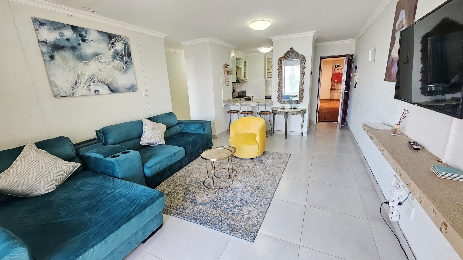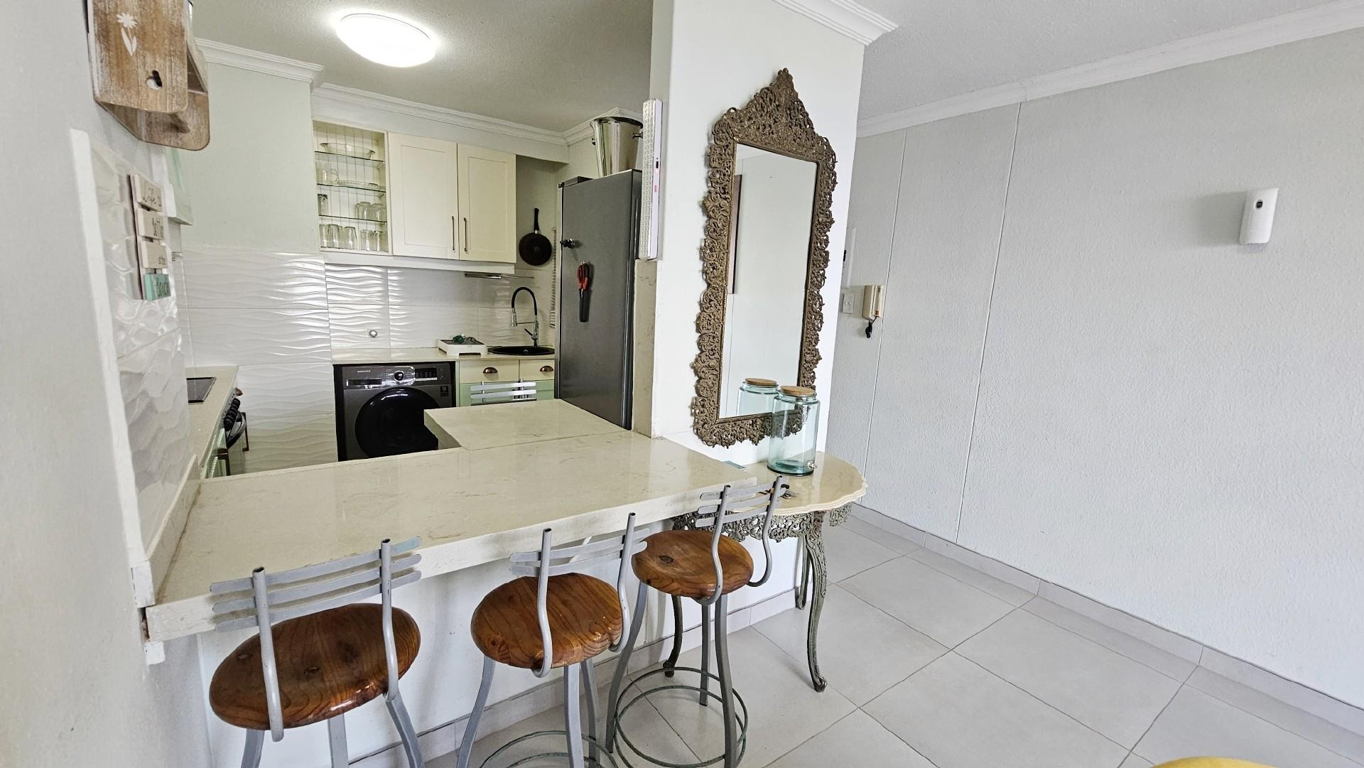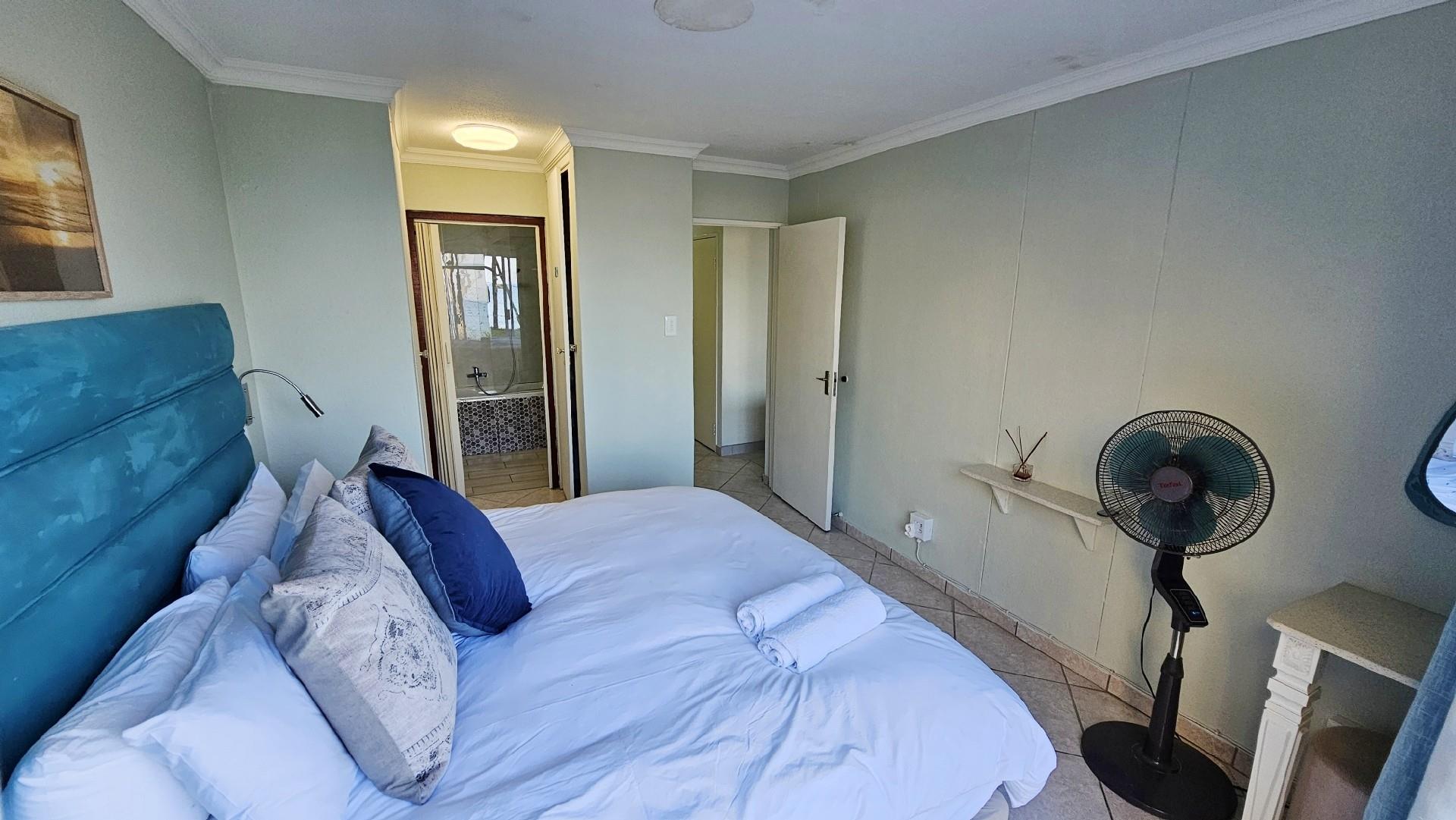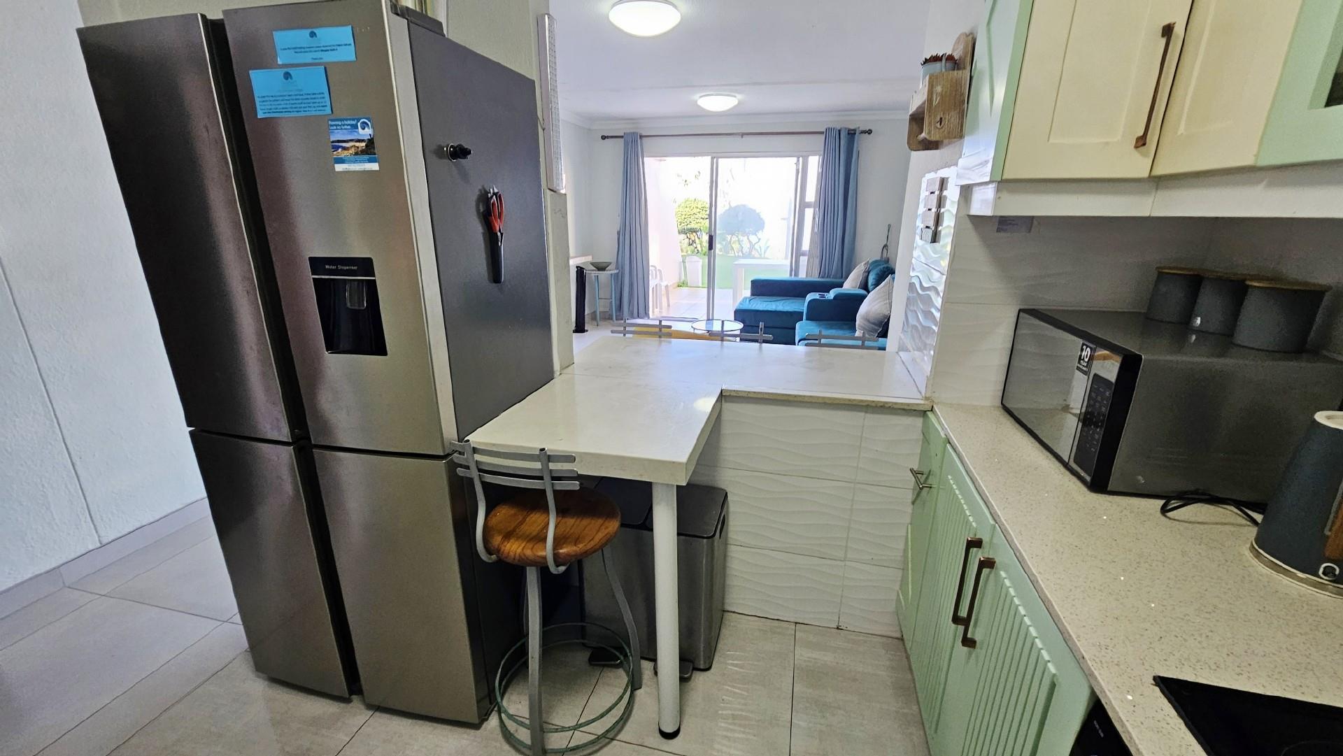 This beautiful unit is in a very popular complex on Marine Drive and has so much to offer. Although this is a ground floor unit, it is two flights of stairs to get down to ground floor. On entering the unit, you are greeted by a beautiful kitchenette with white crystal quartz tops, a prep basin, ample packing space, an undercounter oven, an electric hob with extractor fan and a breakfast nook. This open plan unit flows beautifully into a cosy lounge area, with sliding doors going out onto the patio. The ocean is literally on your doorstep, at less than 250m away from your front door!