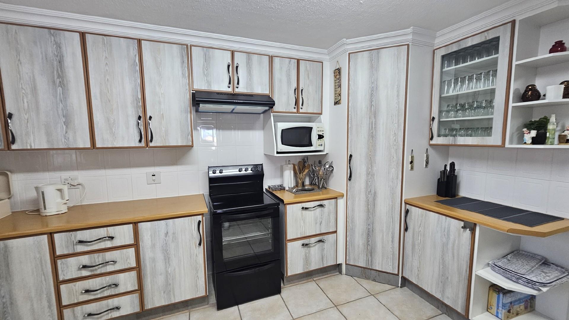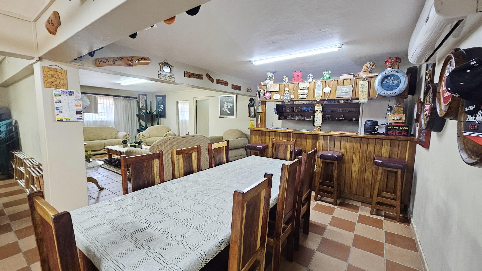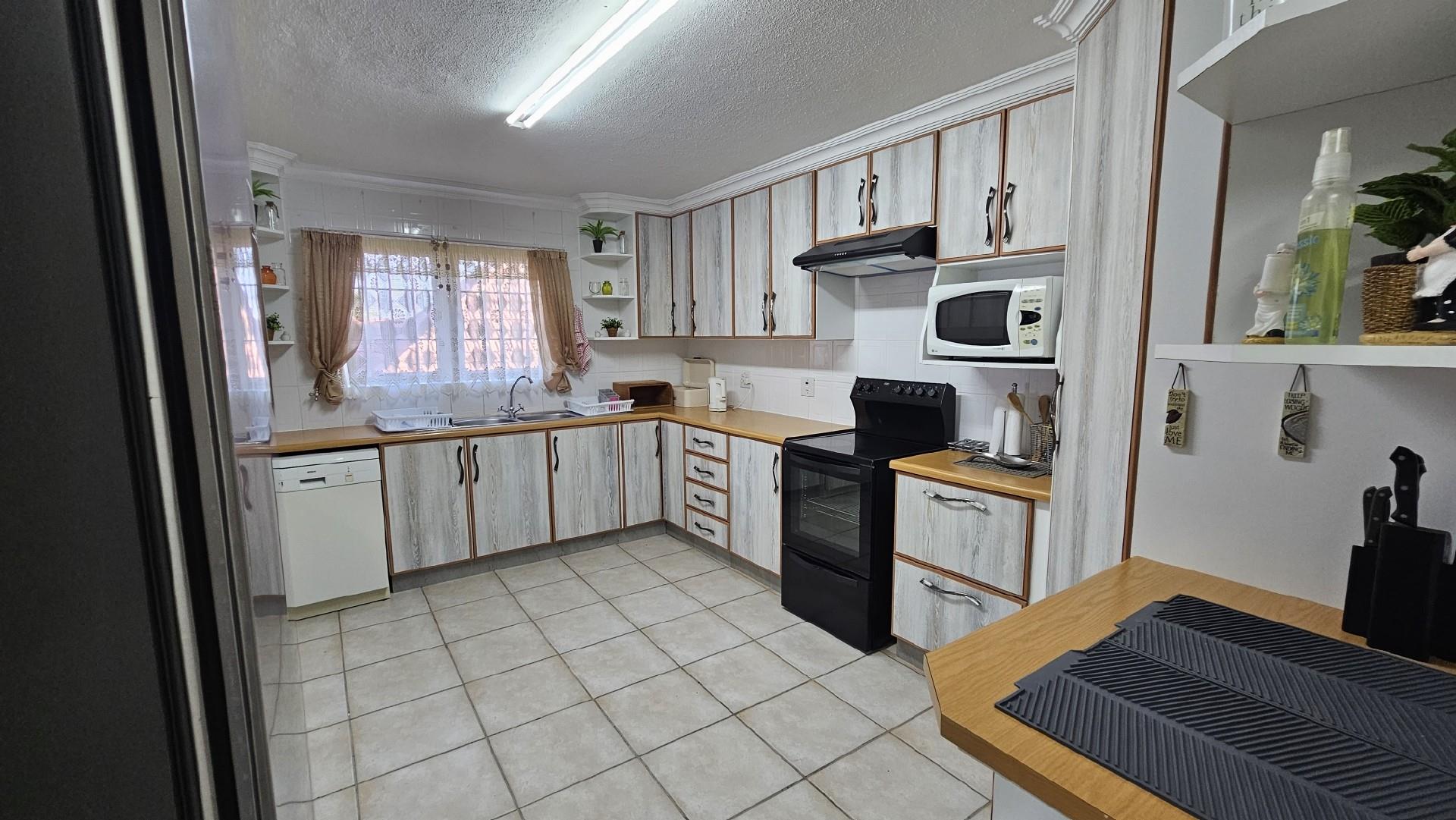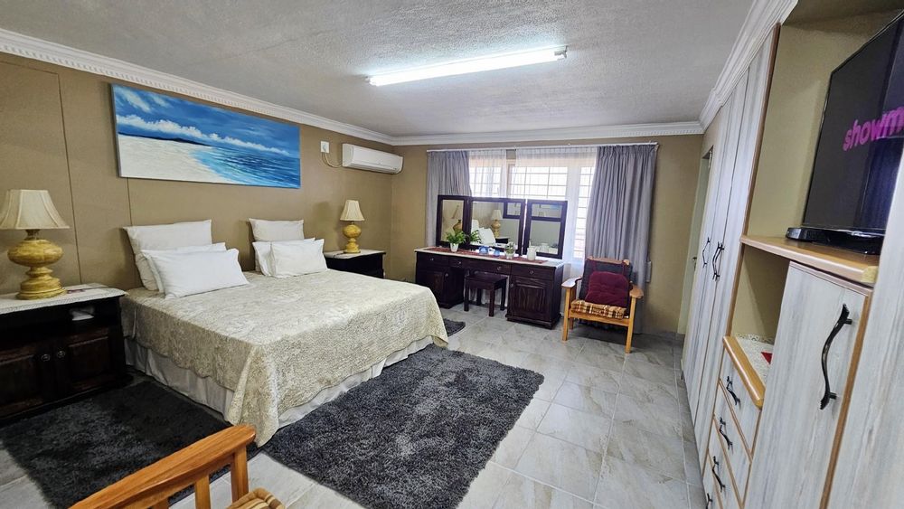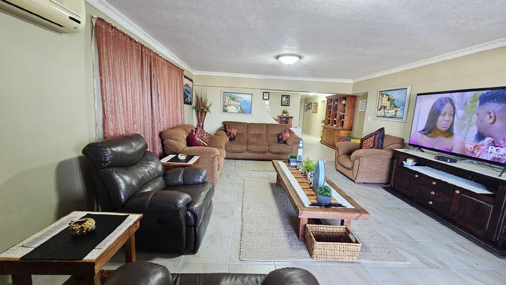 Step inside and be captivated by the spacious open‐plan kitchen, adorned with pristine grey melamine countertops and equipped with top‐tier appliances. The kitchen flows seamlessly into two beautifully appointed dining areas, each designed to suit your entertainment needs with ease. From here, the home opens into a generously size lounge, which is air-conditioned and elegantly furnished, where plush seating invites you to unwind in style.