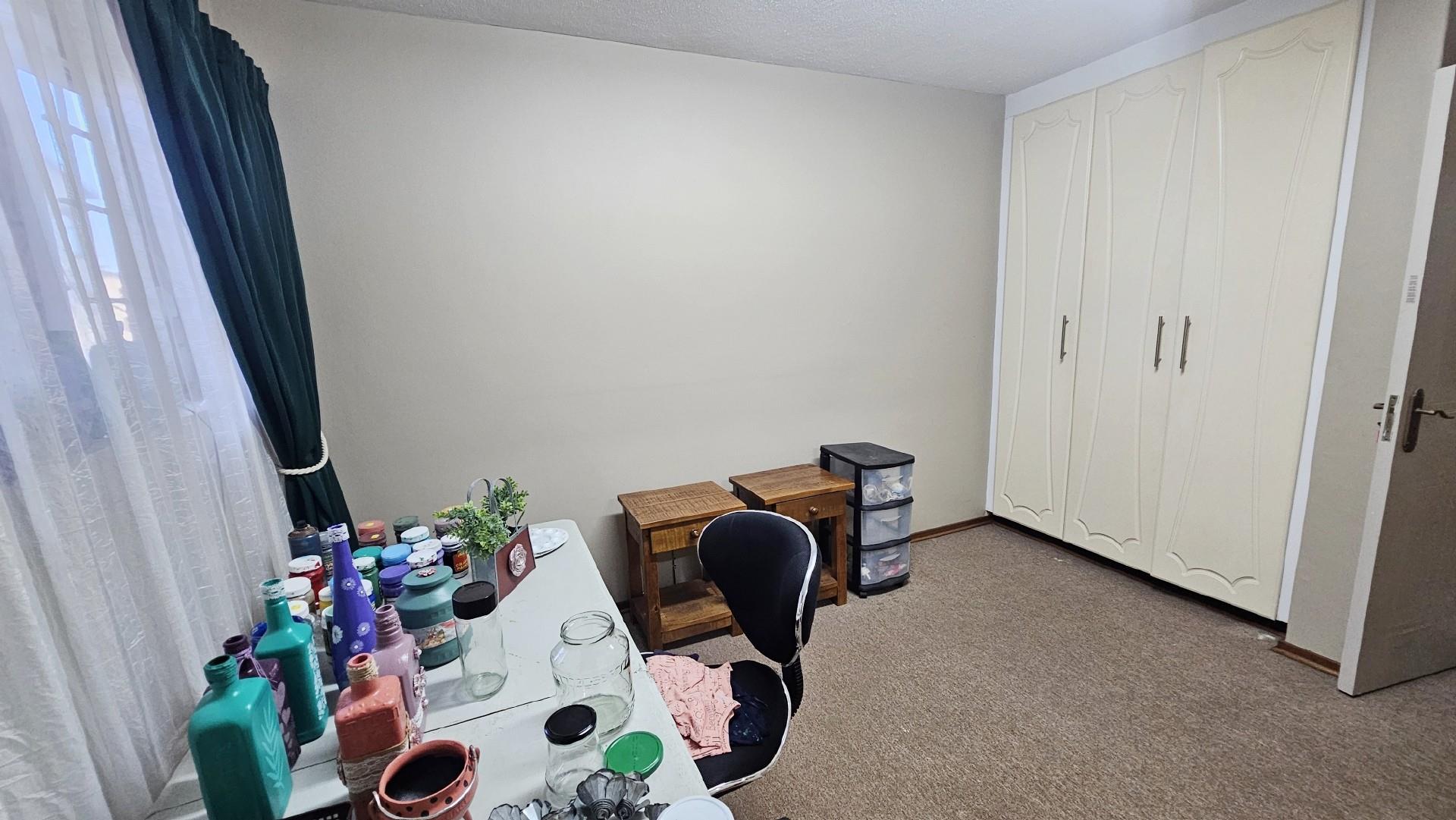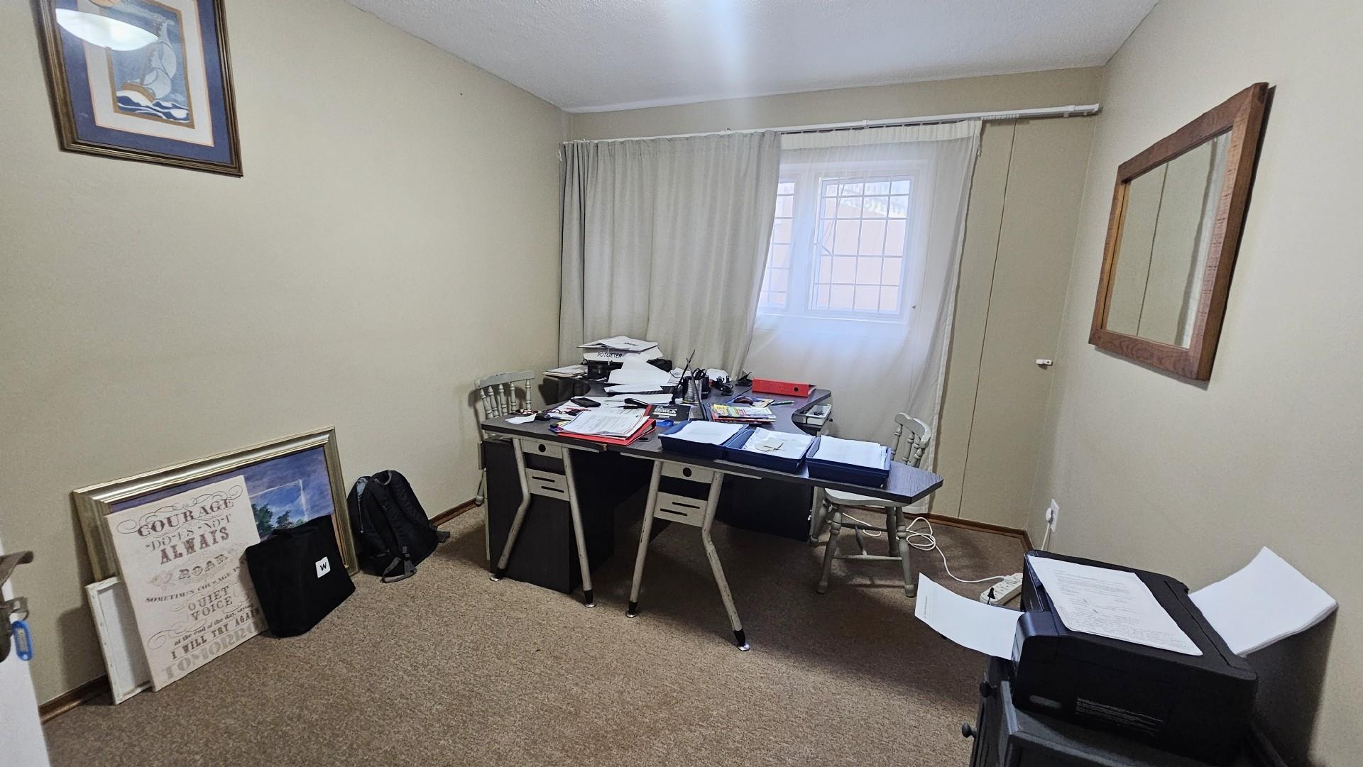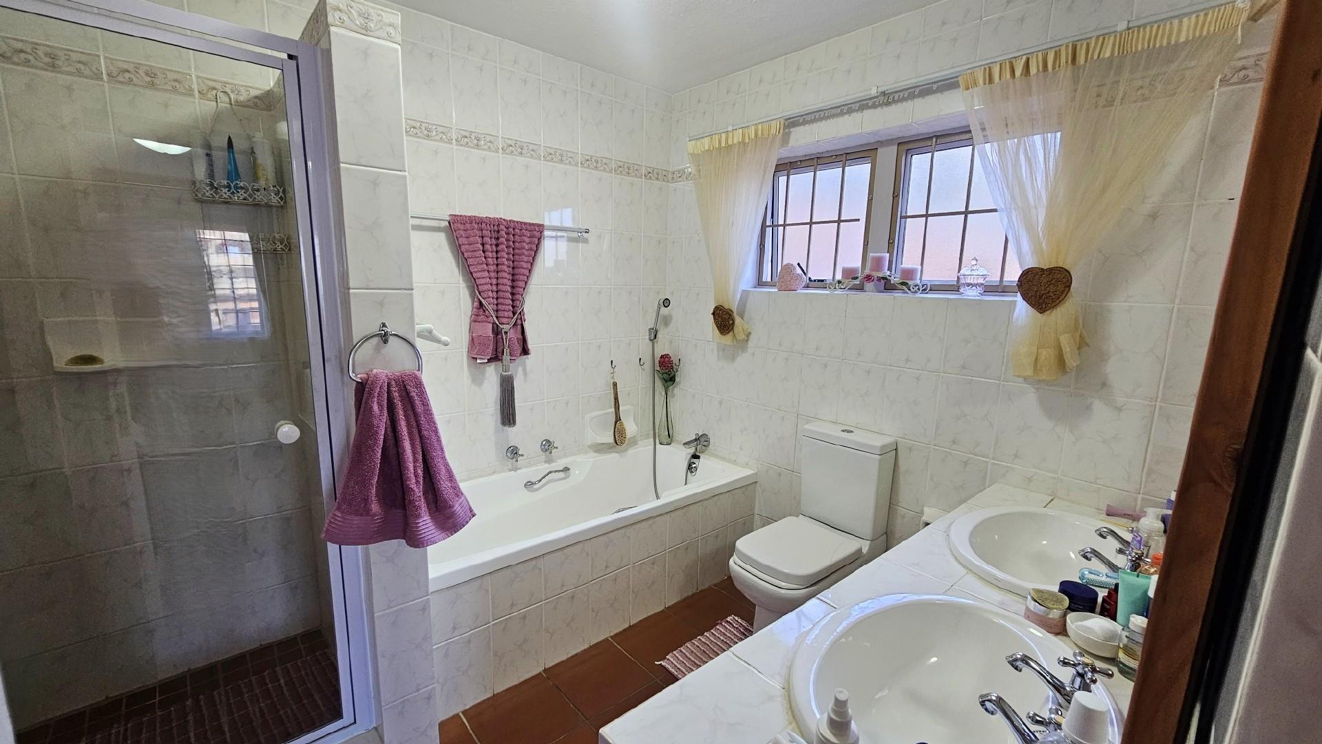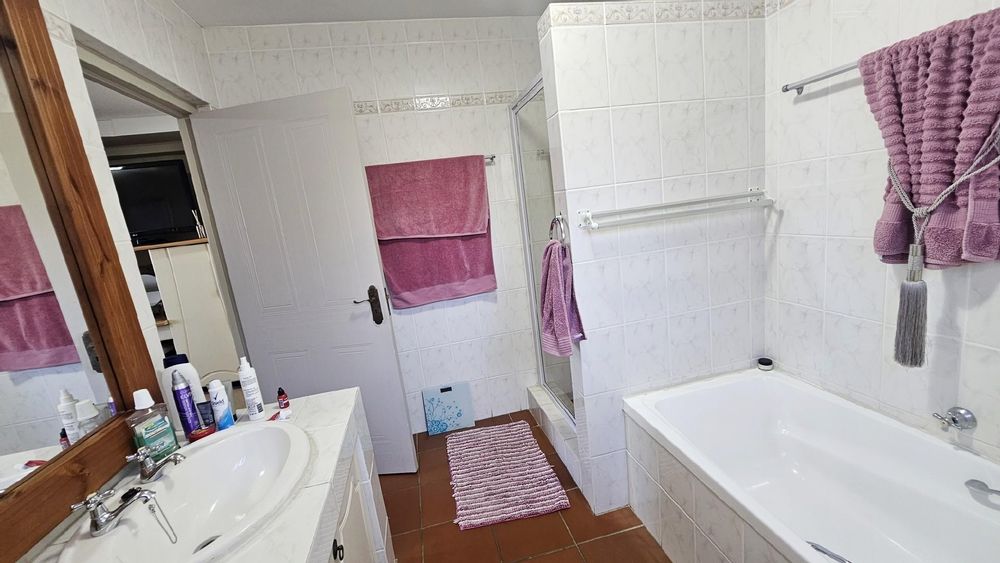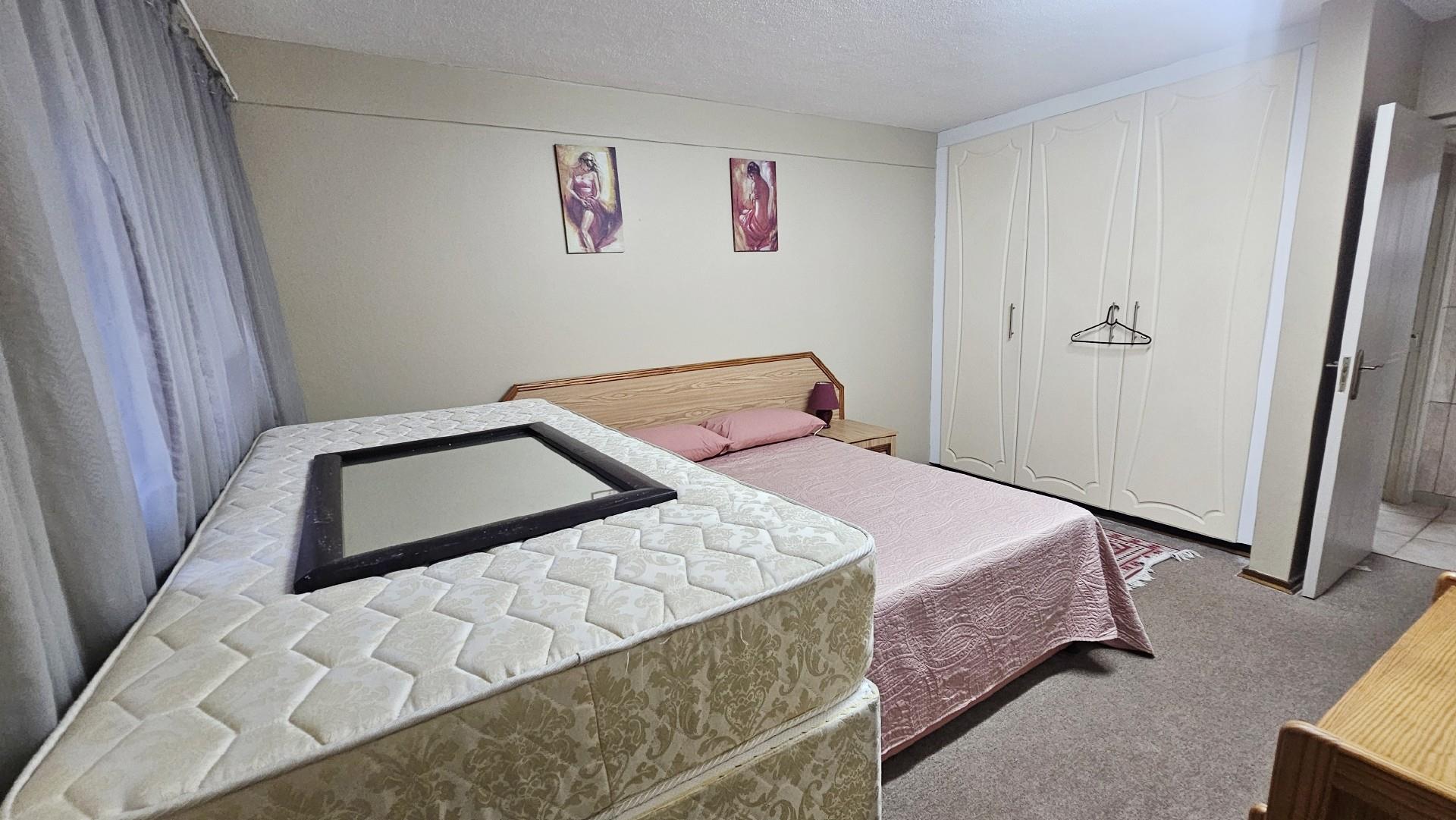 The kitchen is generously proportioned, fitted with ample cabinetry, melamine tops, a freestanding stove, prep basin, and a convenient breakfast nook. Flowing seamlessly from the kitchen, a charming dining area sets the stage for intimate dinners with family and friends. The main bedroom is a serene retreat, boasting abundant wardrobe space, private access to the patio, air‐conditioning, and a luxurious ensuite bathroom with a double basin. The remaining three bedrooms share a second well‐appointed bathroom. Each bedroom is carpeted, with ample cupboard space, natural light, and a fresh, airy feel. At the back of the unit, a spacious laundry area is fitted with multiple washing machines and tumble dryers, ensuring effortless convenience. From here, you step out onto a second undercover patio that leads to your very own private swimming pool, the only unit in the complex to enjoy this exclusive feature.