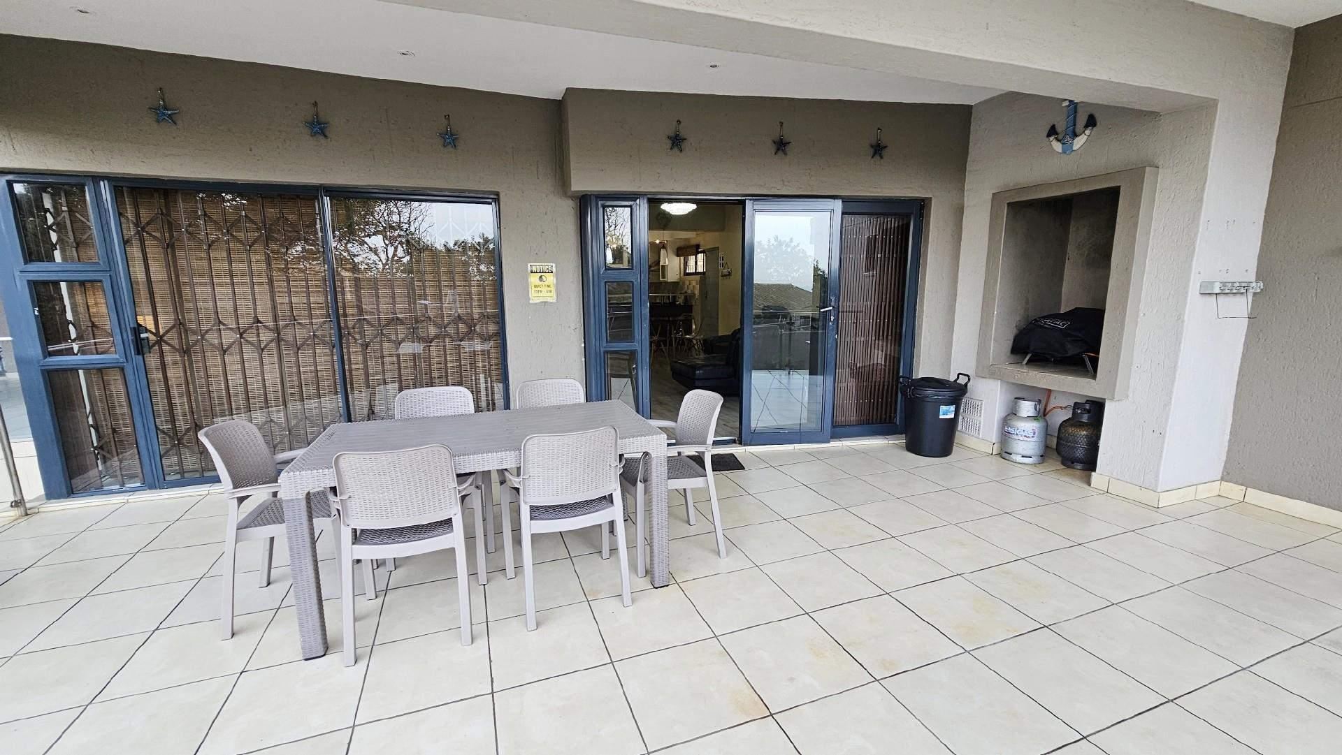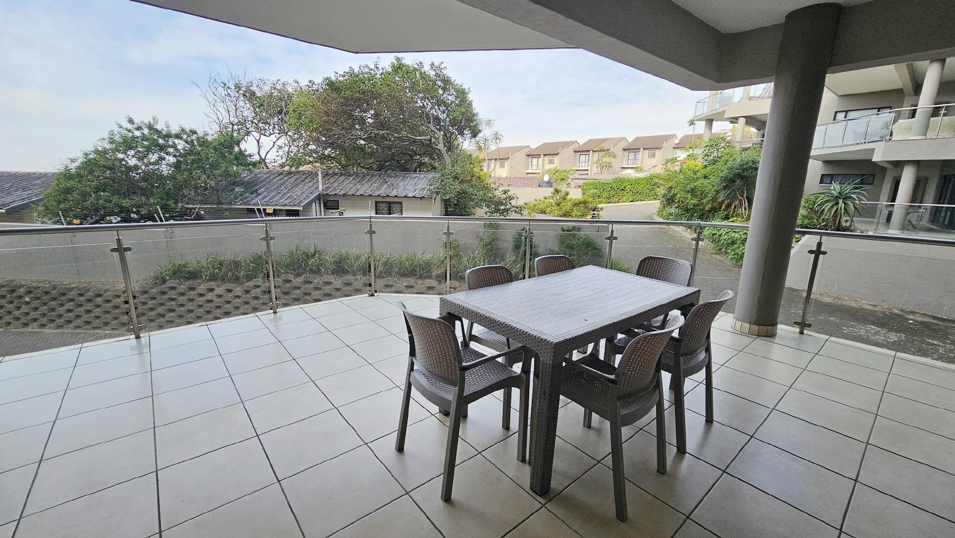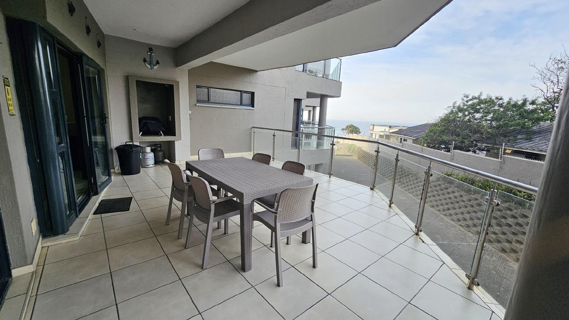It is less than 100m from the nearest beach. It is a ground floor unit that is wheelchair friendly. On entering the unit you are welcomed by an expansive space. To your right is a beautiful modern kitchen with pristine granite counter tops, a breakfast nook, extractor fan and electric hob and all the necessary appliances, as well as ample storage space. This open plan layout leads to a lounge area that has spectacular sea views and opens out onto a large patio area with built in braai. The unit is equipped with 3 bedrooms, the main bedroom has direct patio access and sea views as well as an ensuite bathroom for added convenience. The remaining two bedrooms are also fitted with built in cupboards and ceiling fans and they share the second bathroom.