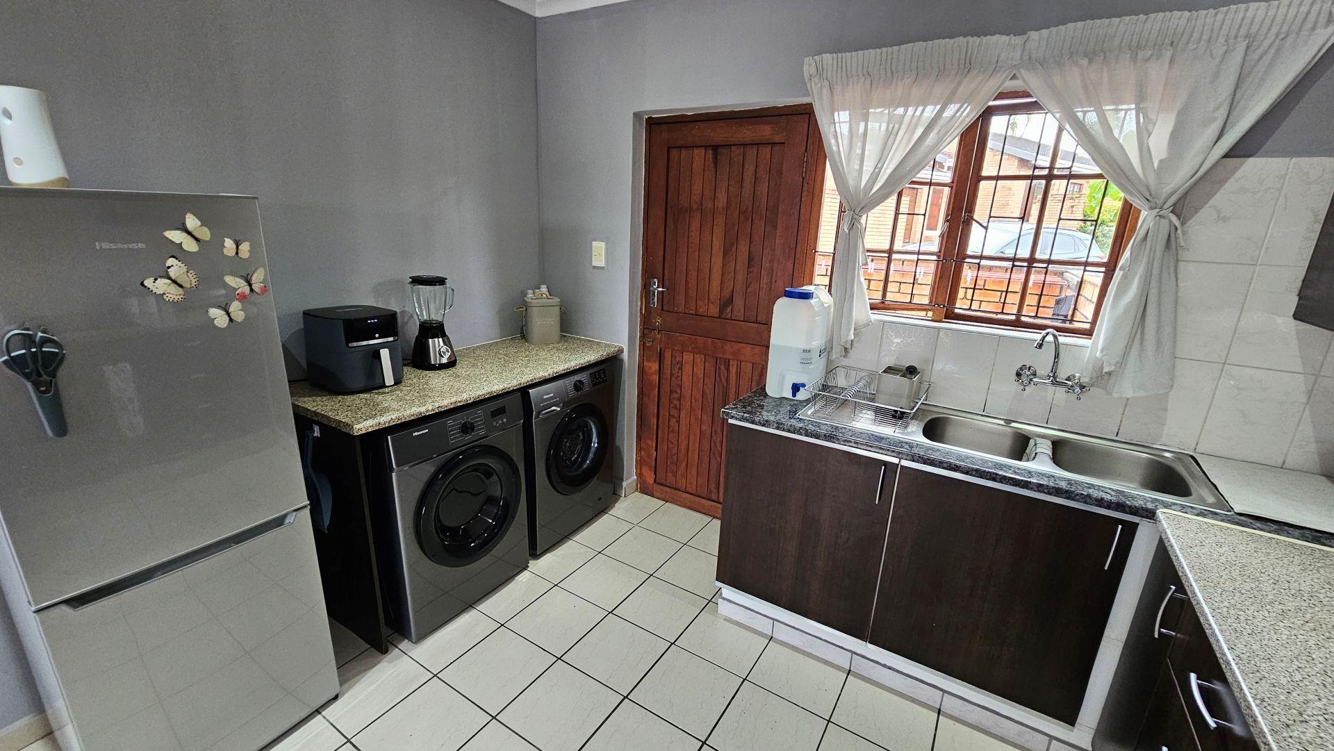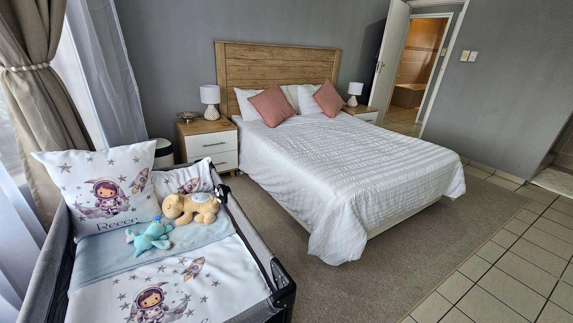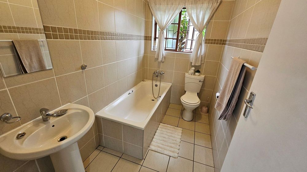 This beautiful complex has the added benefit of 24 hour security, additional visitors parking, a community hall suitable for hosting events, a bar and pool table area, an outside communal braai area, a gym and a library, while the outside area provides ample entertainment in terms of jungle gyms and play areas, a communal swimming pool area, communal bathrooms, and a sizeable braai area under a beautiful lapa, surrounded by nature, with the waterfall flowing in the distant background. This complex is a community in itself and has so much to offer.