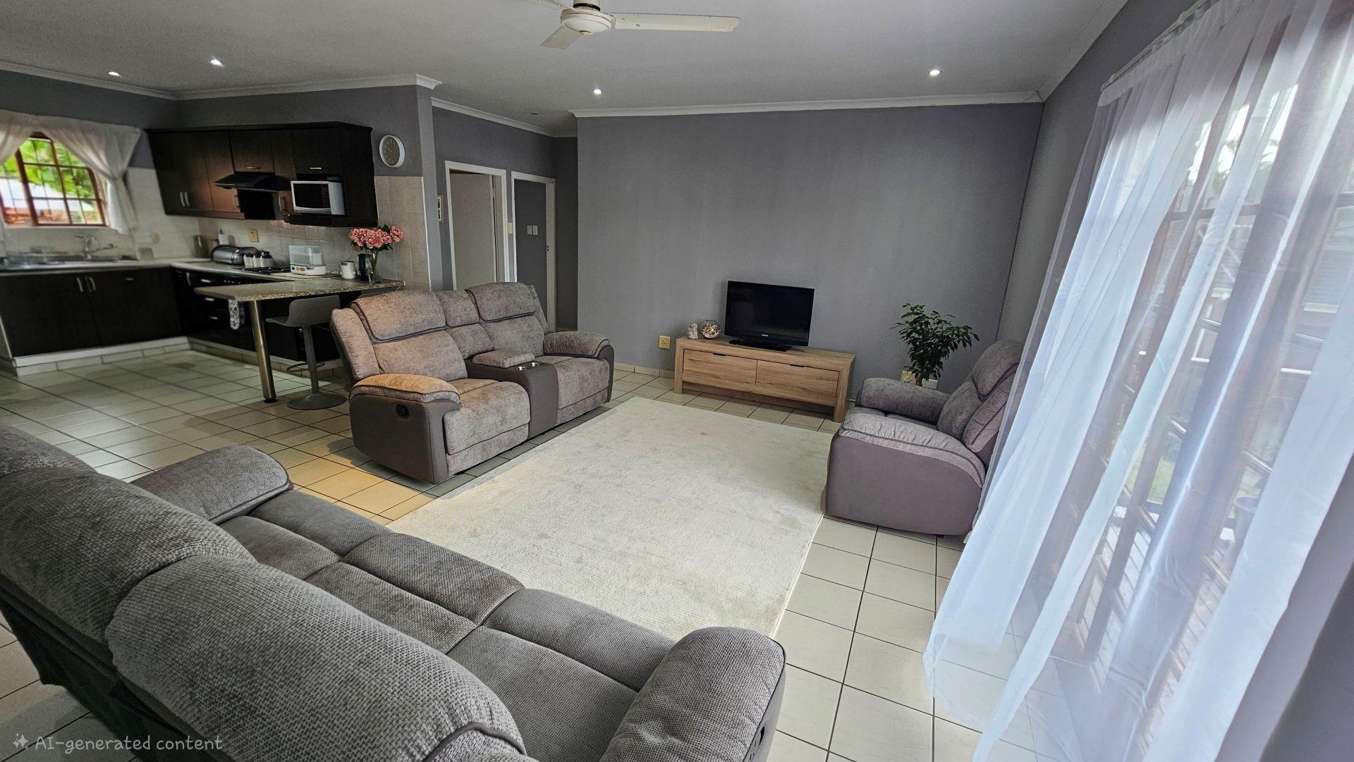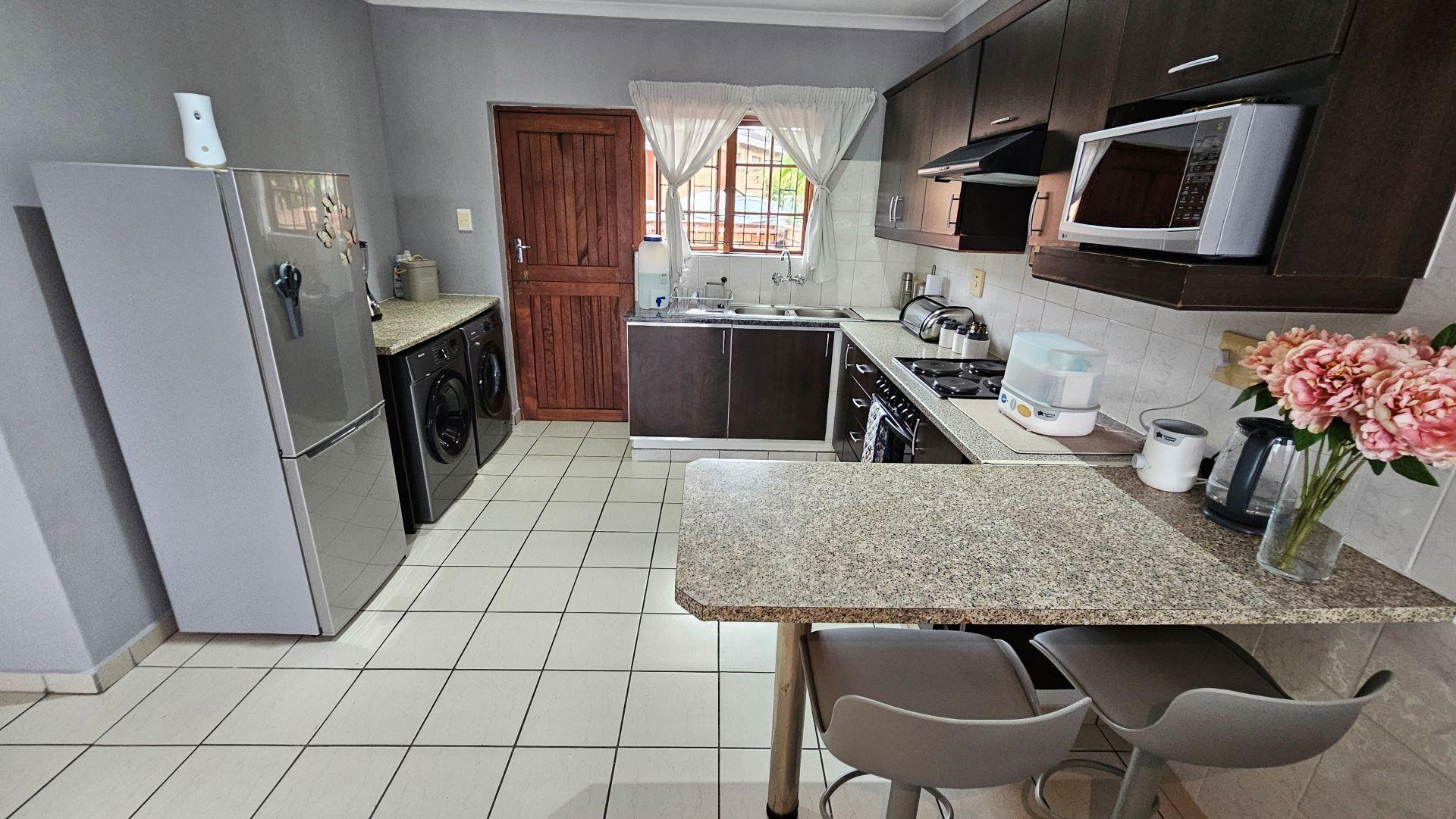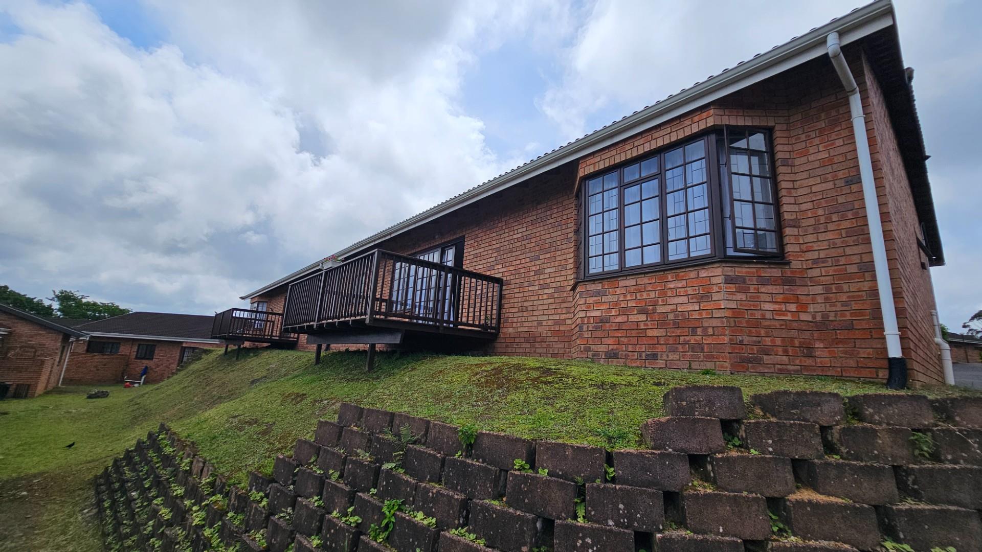 Lovely 2 bedroom, 2 bathroom facebrick unit within a very popular eco estate in Margate. This lovely home is a corner unit. On entering the unit, you are greeted by a very spacious, open plan layout, with modern finishes. The lounge area opens out onto a lovely wooden deck with picturesque views overlooking the kloof and forestry of the eco estate. The kitchen is beautifully set out with a breakfast nook, undercounter oven, electric hob and extractor fan. There is also ample provision made in terms of space for washing machines and tumble dryers etc with a private outside wash line area leading off of the kitchen area.